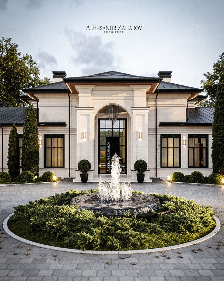 Phá vỡ sự nặng nề thường thấy của kiến trúc cổ điển để hướng đến vẻ đẹp thanh thoát và bền vững: Hệ mái Mansard hoặc mái dốc Pháp chiếm tỷ trọng lớn trong tổng thể, kết hợp hệ thức cột Doric hay Ionic với đường phào chỉ mảnh mai nhằm tôn vinh sự tinh tế của tỷ lệ, như một dấu ấn định danh sự sang trọng và bề thế cho ngôi nhà dù chỉ sở hữu một cao độ khiêm tốn.