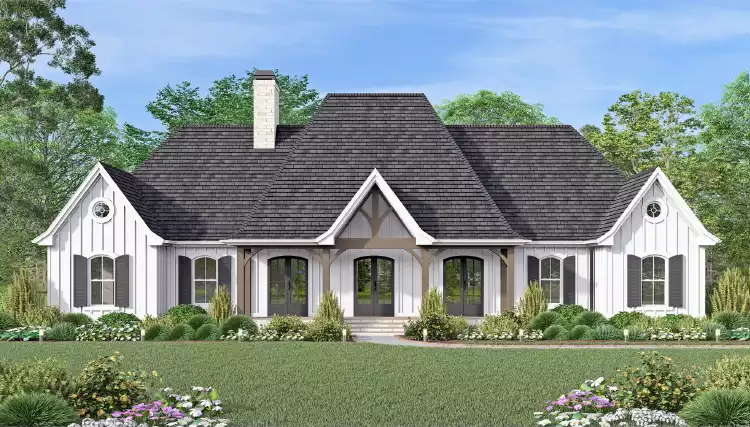 Biệt thự một tầng kiểu Pháp với ba phòng ngủ là sự kết hợp hoàn hảo giữa vẻ đẹp sang trọng cổ điển và không gian sống tiện nghi với diện tích khoảng từ 150 - 200m2. Kiến trúc nổi bật với hệ cột trụ vững chãi, cửa sổ vòm cao và tông màu trắng sứ đặc trưng, mang lại vẻ bề thế nhưng vẫn thanh thoát.