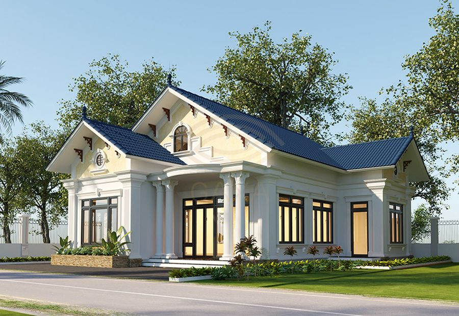 Mẫu nhà biệt thự 1 tầng kiểu Pháp 4 phòng ngủ