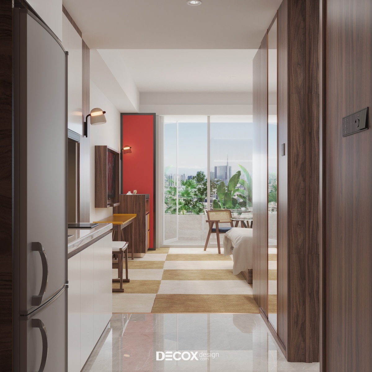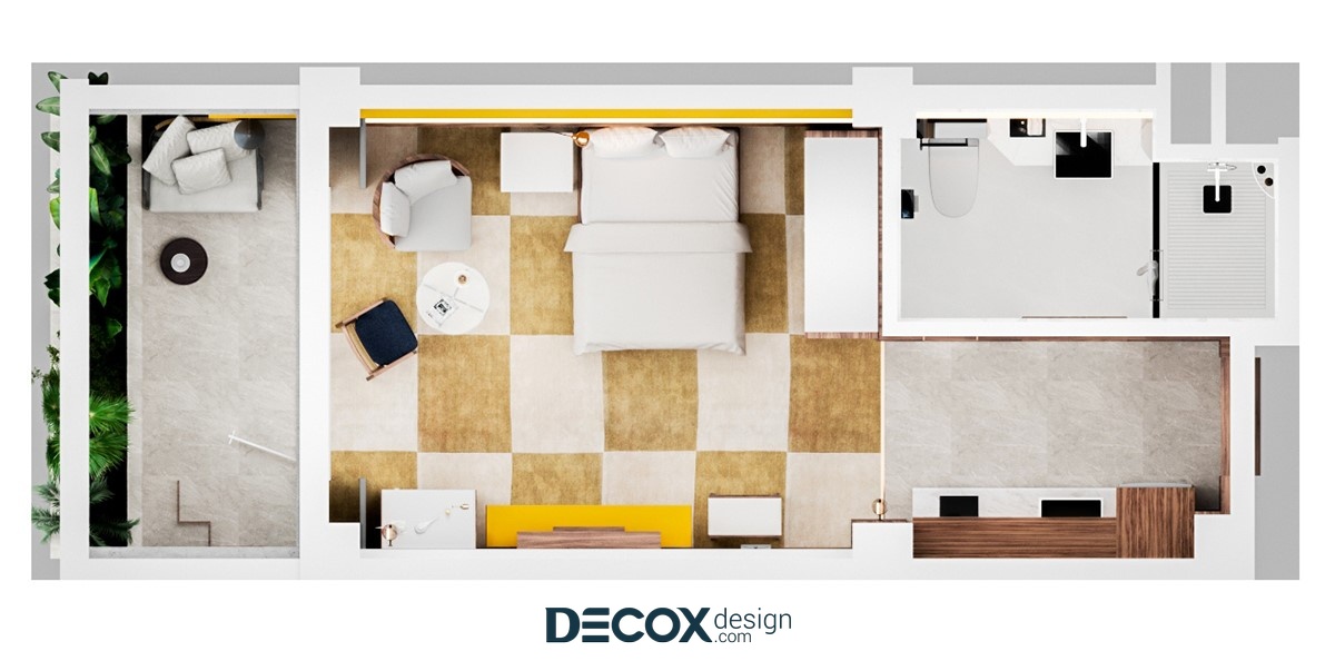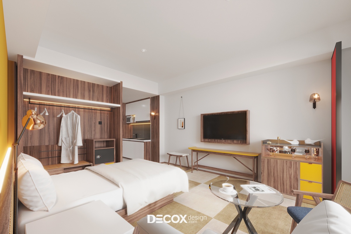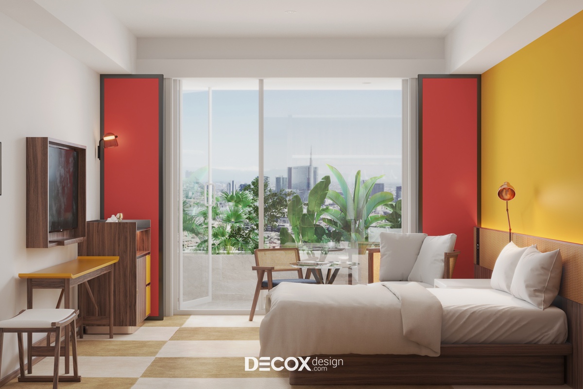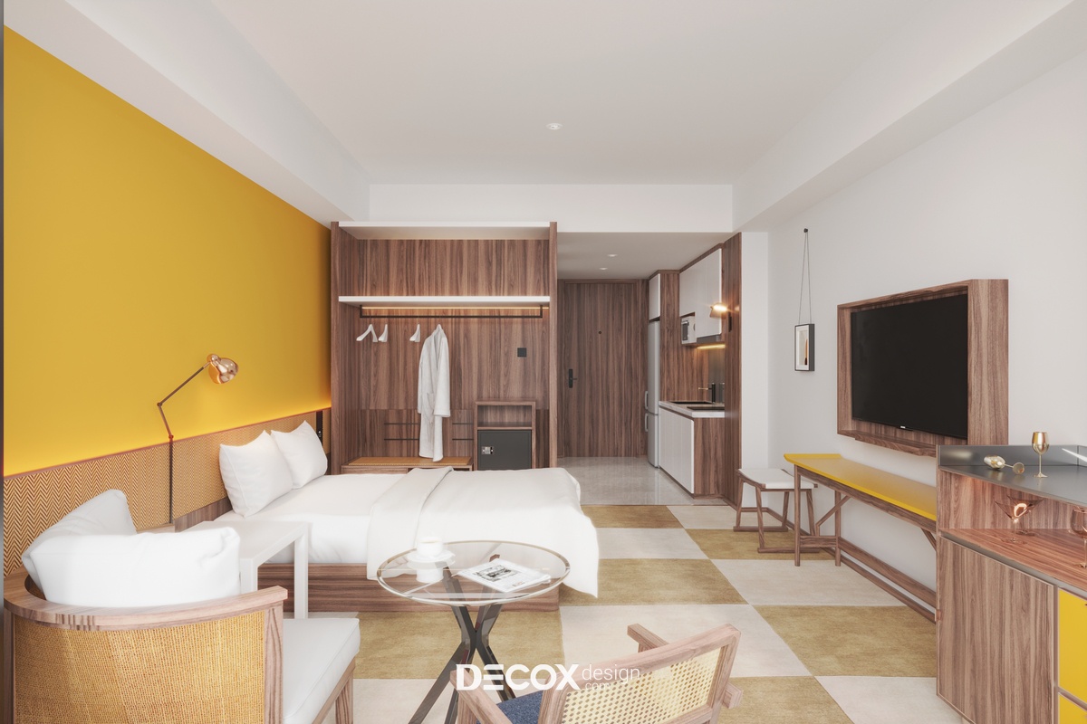 Căn hộ dịch vụ - Serviced Apartment đang là loại hình nhà ở phổ biến của những người trẻ, người đi công tác hay khách du lịch lưu trú ngắn hạn/dài hạn. Sở hữu nhiều ưu điểm vượt trội như trang thiết bị tiện nghi hiện đại, chi phí thuê thấp cùng tiện ích, dịch vụ không khác gì khách sạn, Serviced Apartment đang thu hút sự chú ý của đông đảo chủ đầu tư cũng như khách hàng. Đến với dự án căn hộ dịch vụ Savita diện tích 40m2 lần này, Decox Design đã chọn lựa thiết kế nội thất theo phong cách hiện đại, trẻ trung với tone màu trắng chủ đạo, nhấn điểm cùng những tone màu ấm như đỏ - vàng. Ngoài ra, cây xanh cũng là một nhân tố không thể thiếu trong mẫu thiết kế nội thất căn hộ dịch vụ này nhằm mang đến cho người sử dụng một không gian thư giãn như đang lạc vào "miền nhiệt đới".