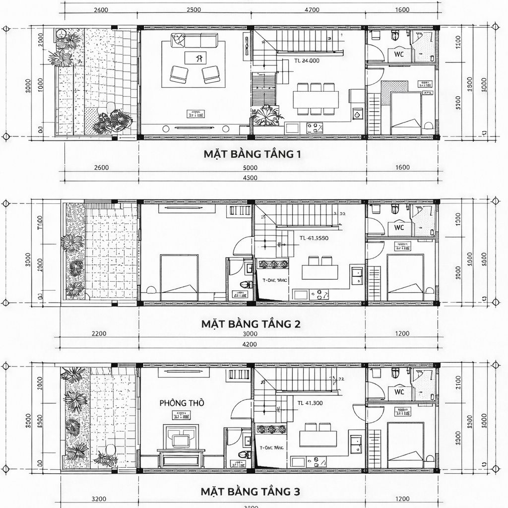 Bản vẽ thiết kế nhà ống 3 tầng là cơ sở giúp định hình rõ quy mô, hình khối và cách tổ chức không gian của công trình trên nền đất đô thị hẹp ngang. Thông qua bản vẽ, gia chủ có thể hình dung trước cách phân tầng công năng, giải pháp lấy sáng - thông gió và mối liên kết giữa các tầng, đồng thời làm căn cứ để thi công chính xác, kiểm soát chi phí và hạn chế phát sinh.