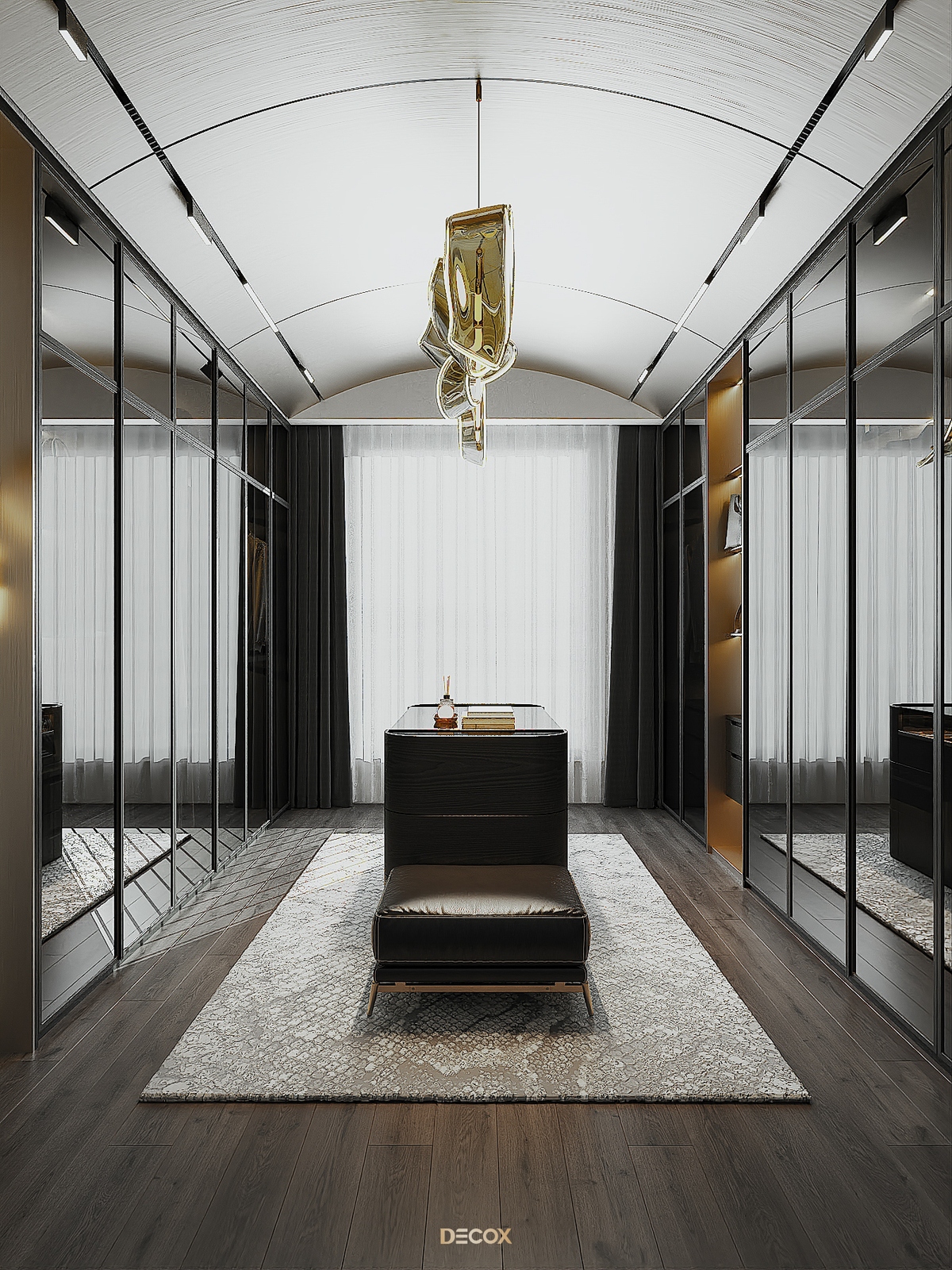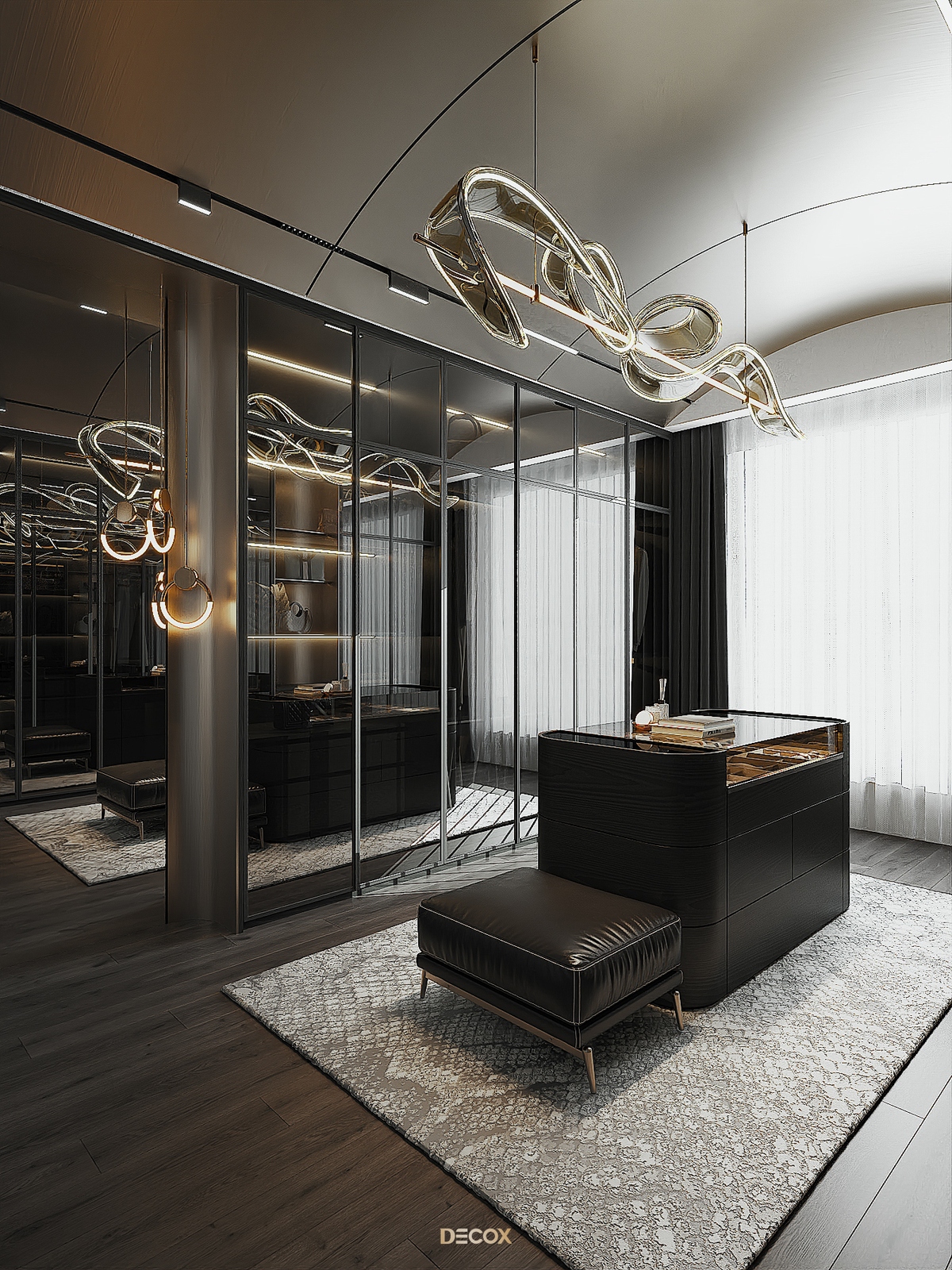 Để mang đến một không gian sống cá tính, ấm cúng với tỷ lệ vừa đủ như gia chủ mong muốn Decox đã chọn lựa sử dụng thủ pháp nghệ thuật tương phản đánh mạnh vào thị giác trong thiết kế nội thất. Tổng thể là sự chuyển giao mượt mà giữa cặp màu huyền thoại trắng - đen, giữa vật liệu đá, inox mạ, kính cứng rắn, có phần “bóng bẩy” với chất gỗ mộc mạc, chất vải mềm mại…Và nội thất nhập khẩu từ Ý - thanh lịch nhưng không phô trương, chính là mảnh ghép cuối cùng để tạo nên dấu ấn duy mỹ cho tổ ấm.