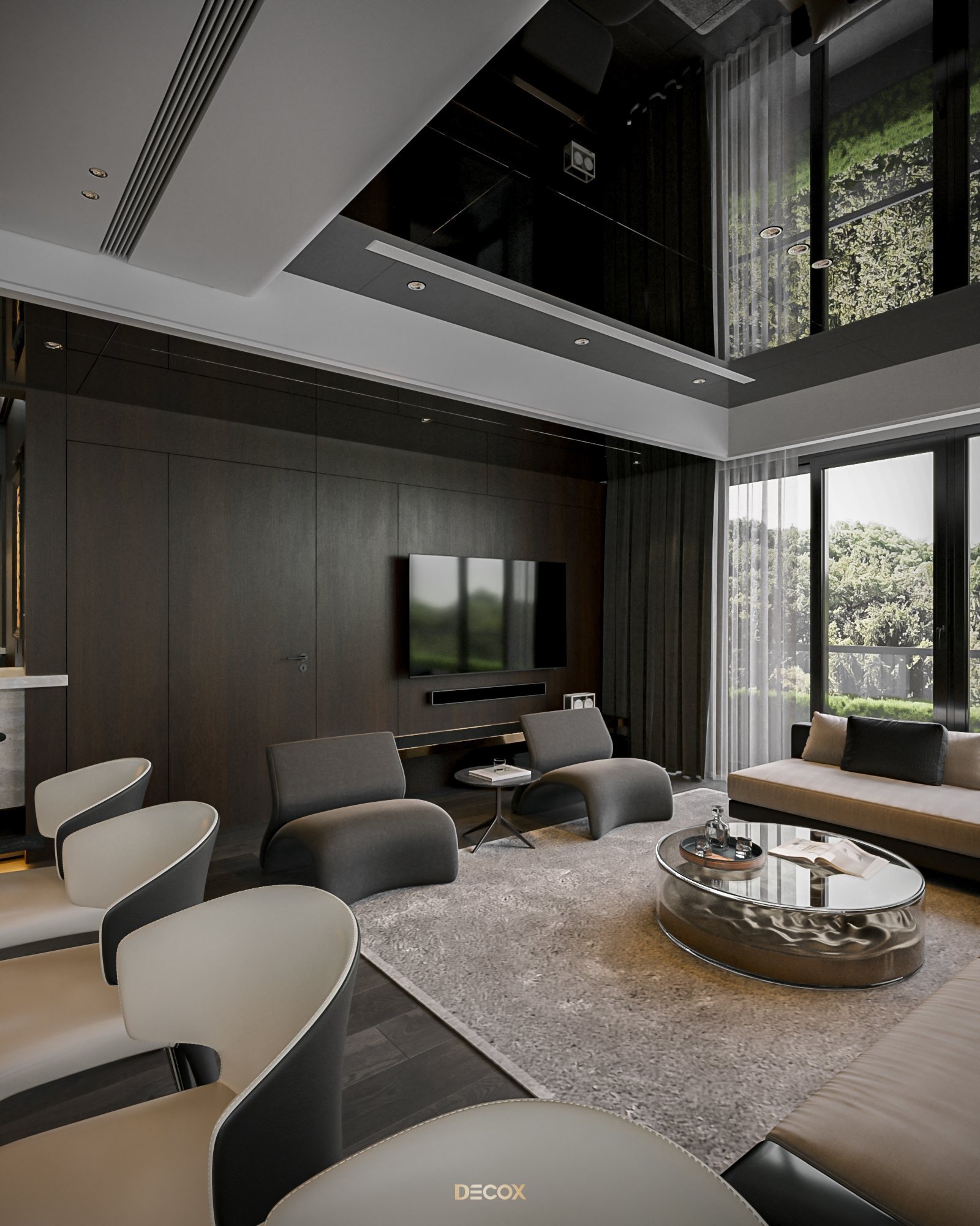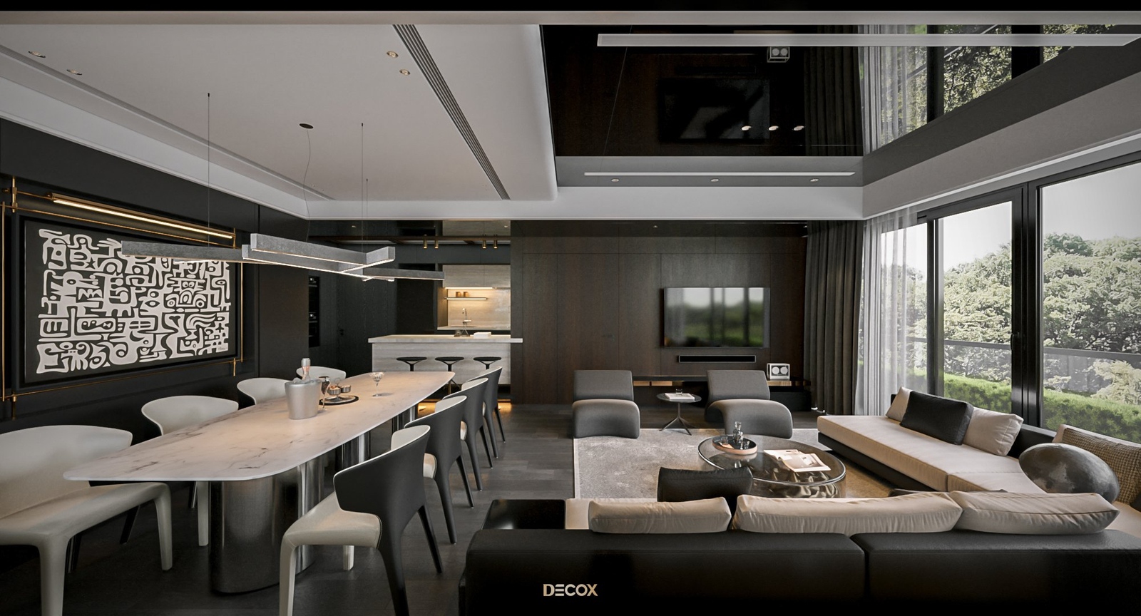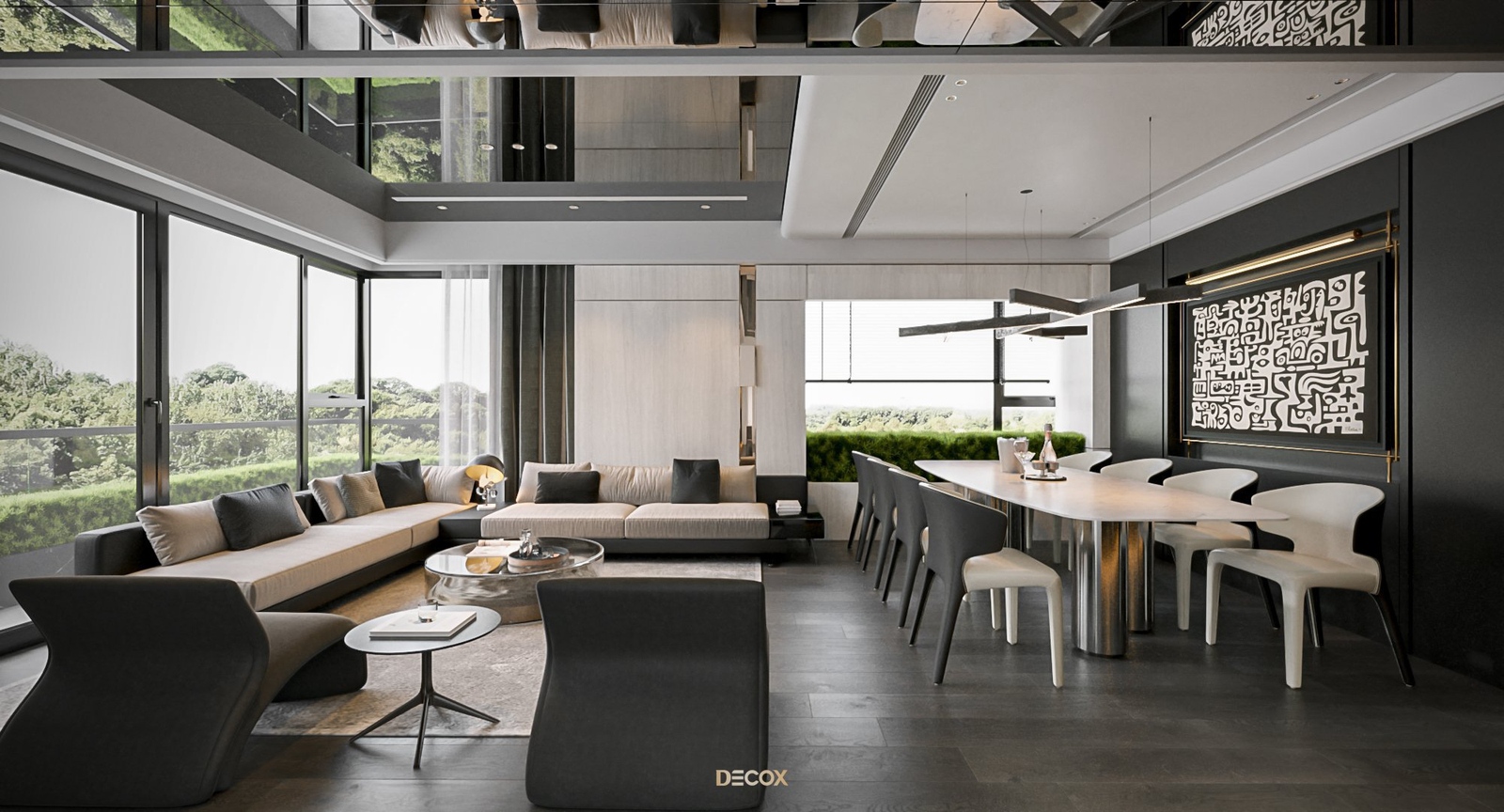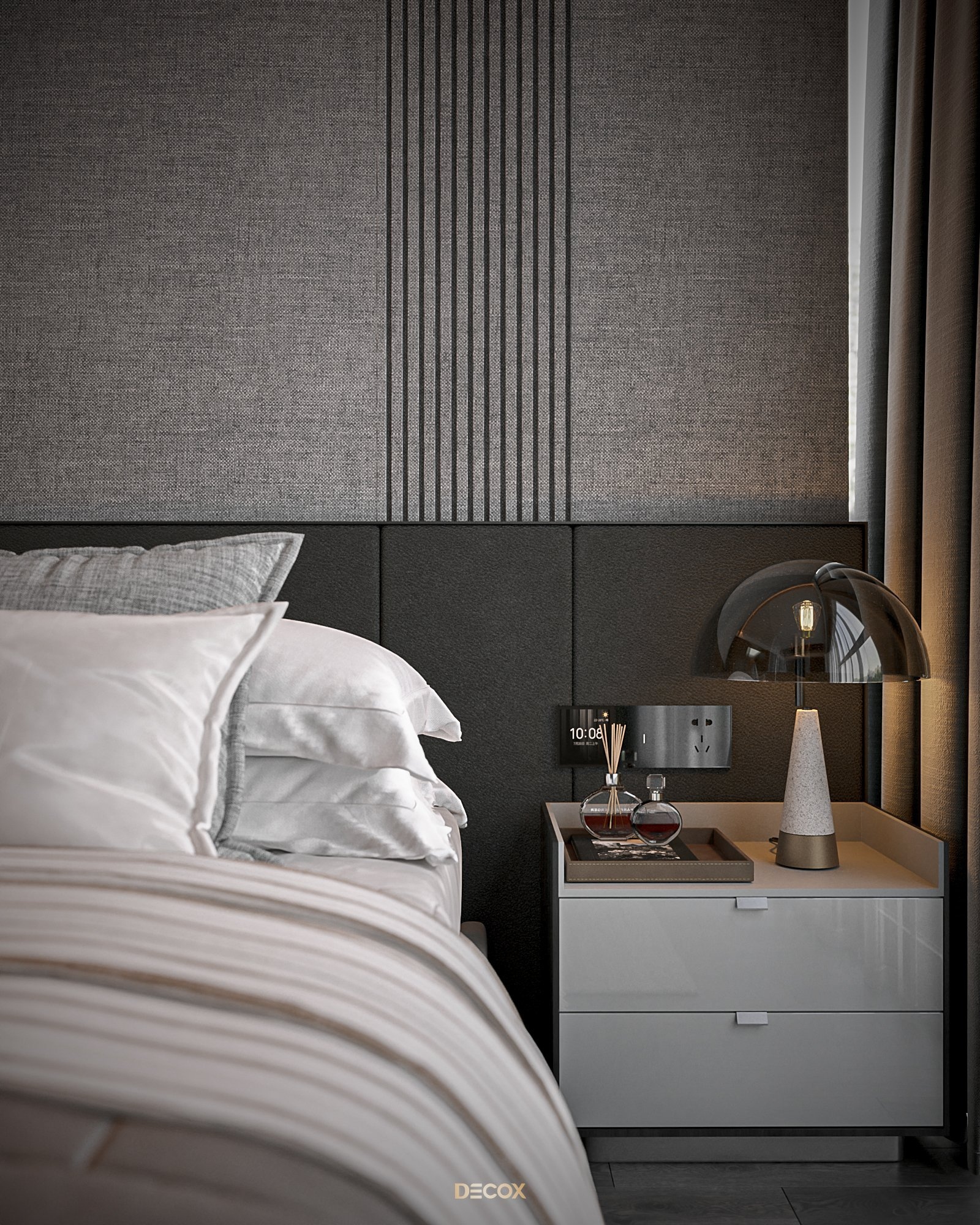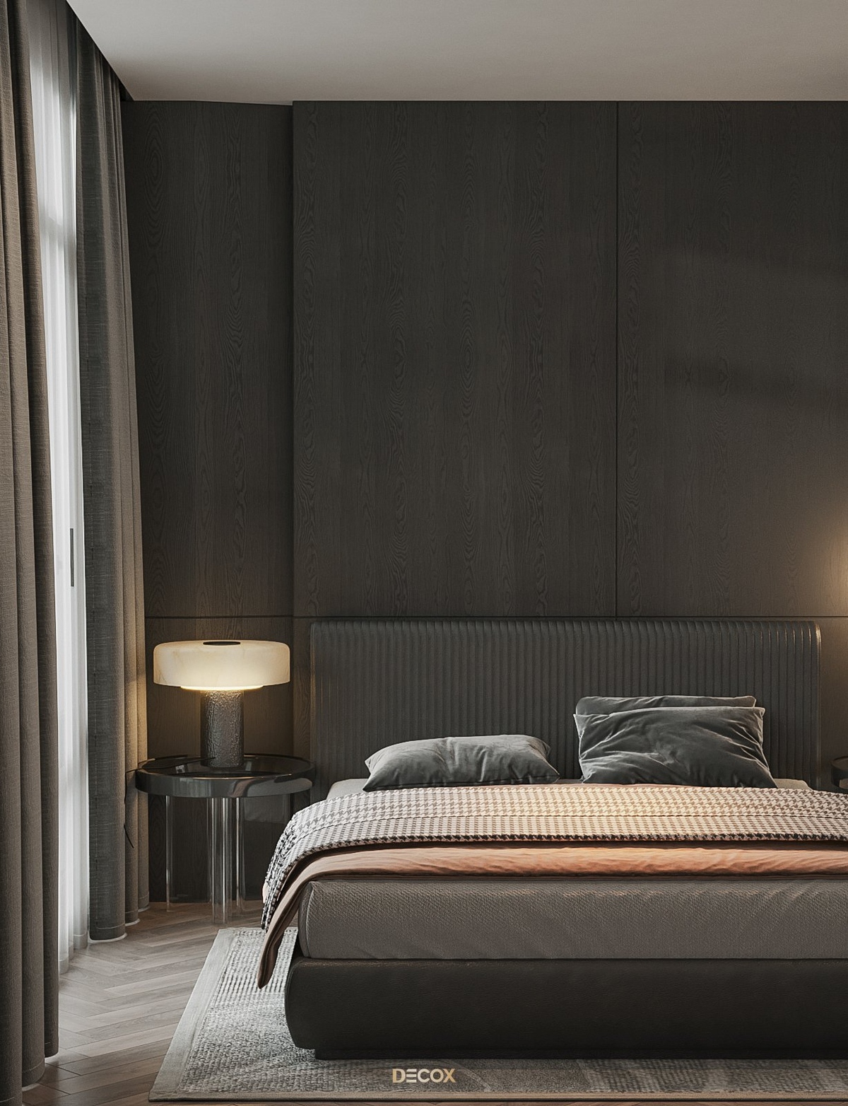 Cảm hứng thiết kế nội thất của căn hộ cao cấp này đến từ sở thích và phong cách sống của chủ nhân. Là một người hoạt động trong lĩnh vực công nghệ, anh yêu thích sự yên tĩnh trong chính không gian sống của mình. Hiểu được mong muốn của khách hàng, KTS Decox đã tư vấn và chọn lựa phong cách hiện đại với các đường nét, hình khối gãy gọn, khúc chiết đặc trưng cùng bảng màu trung tính chủ đạo, đặc biệt là tone xám và đen để mang đến vẻ đẹp thanh lịch, cá tính cho căn hộ.