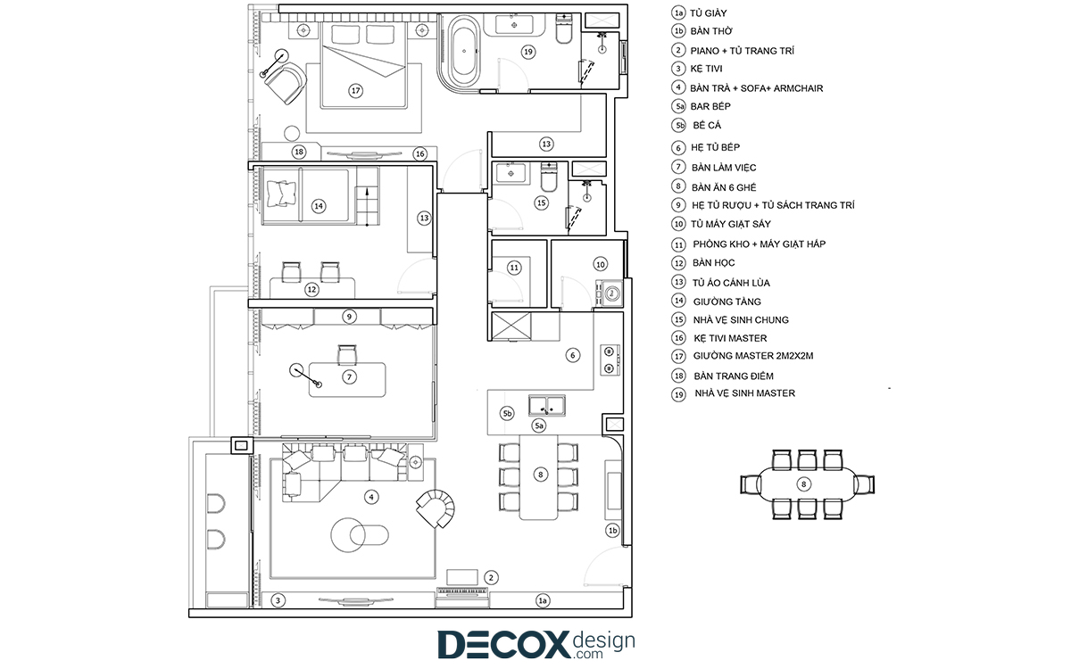 Tuy nhiên, bài toán đặt ra ở đây là làm thế nào để dung hòa các chất liệu hàn tính để căn hộ không bị lạnh lẽo và thô cứng. Để đảm bảo tính sang trọng - tiện nghi và giải quyết bài toán trên, KTS đã khéo léo vận dụng 4 yếu tố: Đủ - Đúng - Đẹp và Độc Đáo vào thiết kế nội thất. Sau đây Decox mời bạn cùng tham quan những không gian bên trong căn hộ để xem KTS đã vận dụng nguyên tắc trên như thế nào nhé!