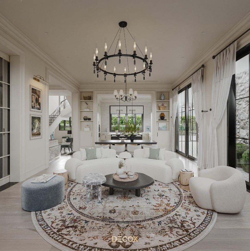 [TOP] 30+ mẫu thiết kế phòng khách tân cổ điển sang trọng, đẹp nhất 2026