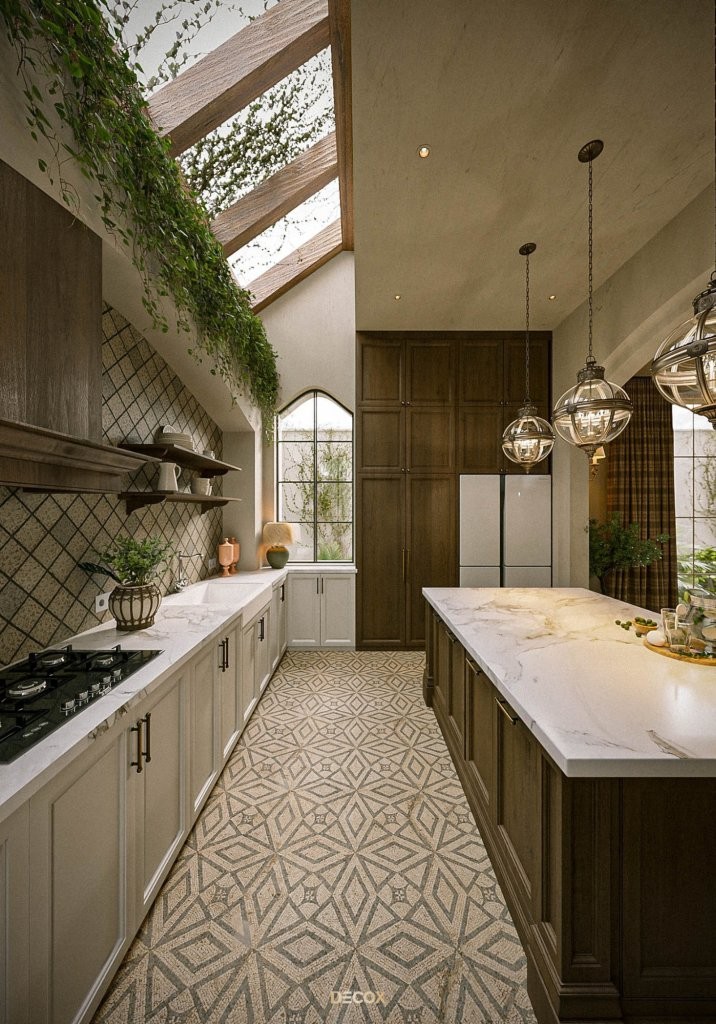 Để tránh tình trạng khu vực tầng trệt bị "lạnh" khi các thành viên chủ yếu sinh hoạt ở tầng trên, bếp thường được thiết kế liên thông với bàn ăn và hướng ra sân sau hoặc sân ướt để lấy sáng và thoát mùi tự nhiên. Việc ứng dụng các phụ kiện thông minh, vật liệu cao cấp, dễ vệ sinh như đá nhân tạo và Laminate chống trầy cùng nghệ thuật sắp đặt "tam giác công năng", tích hợp thêm các Pantry phụ hoặc quầy bar nhỏ tại các tầng trên, biến căn bếp thành một mắt xích quan trọng kết nối toàn bộ hệ sinh thái sống theo chiều dọc của ngôi nhà.