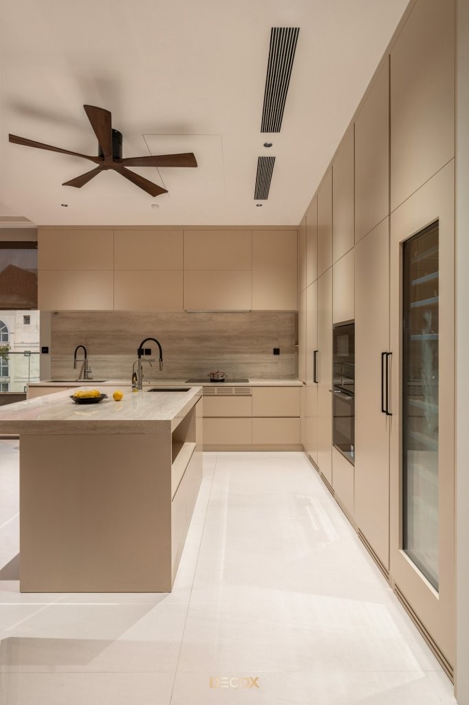 Trong cấu trúc nhà phố 4 tầng, phòng bếp trở thành một "trung tâm vận hành" đòi hỏi một tư duy quy hoạch phân khu chiến lược rõ rệt: từ khu vực sơ chế, nấu nướng đến hệ thống lưu trữ chuyên biệt, giúp tối ưu hóa công năng thực bản, đảm bảo dòng chảy giao thông trong nhà luôn trơn tru.