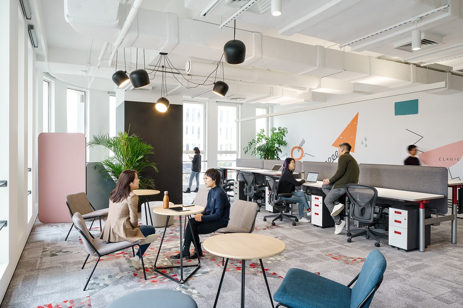 Mẫu thiết kế văn phòng sáng tạo với sự kết hợp đầy màu sắc