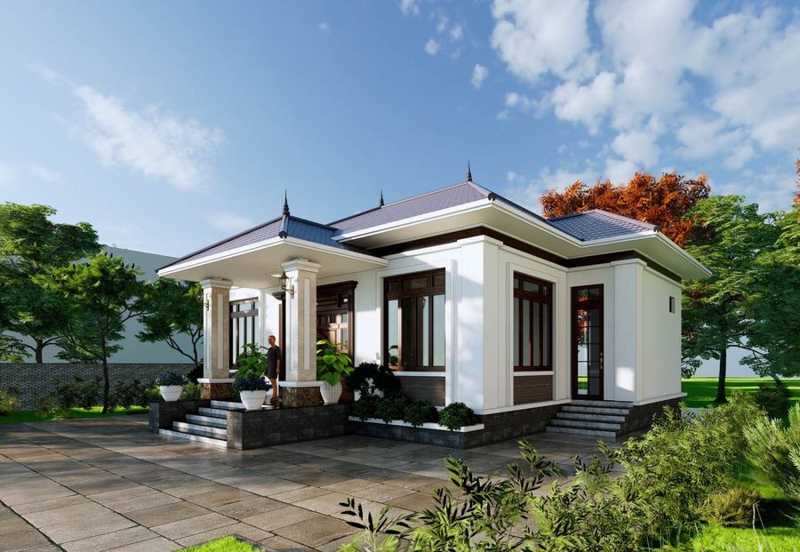 Mẫu nhà mái Nhật 1 tầng phong cách tân cổ điển