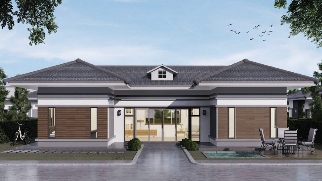 Mẫu nhà mái Thái 3 phòng ngủ hiện đại