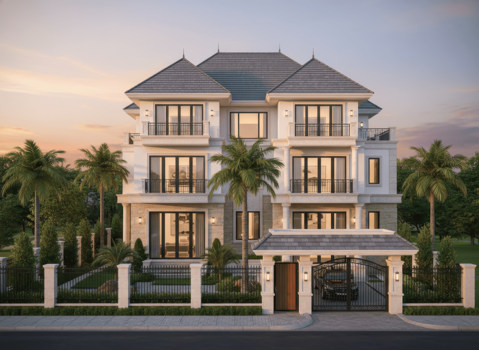 Các mẫu nhà mái Thái 3 tầng tân cổ điển