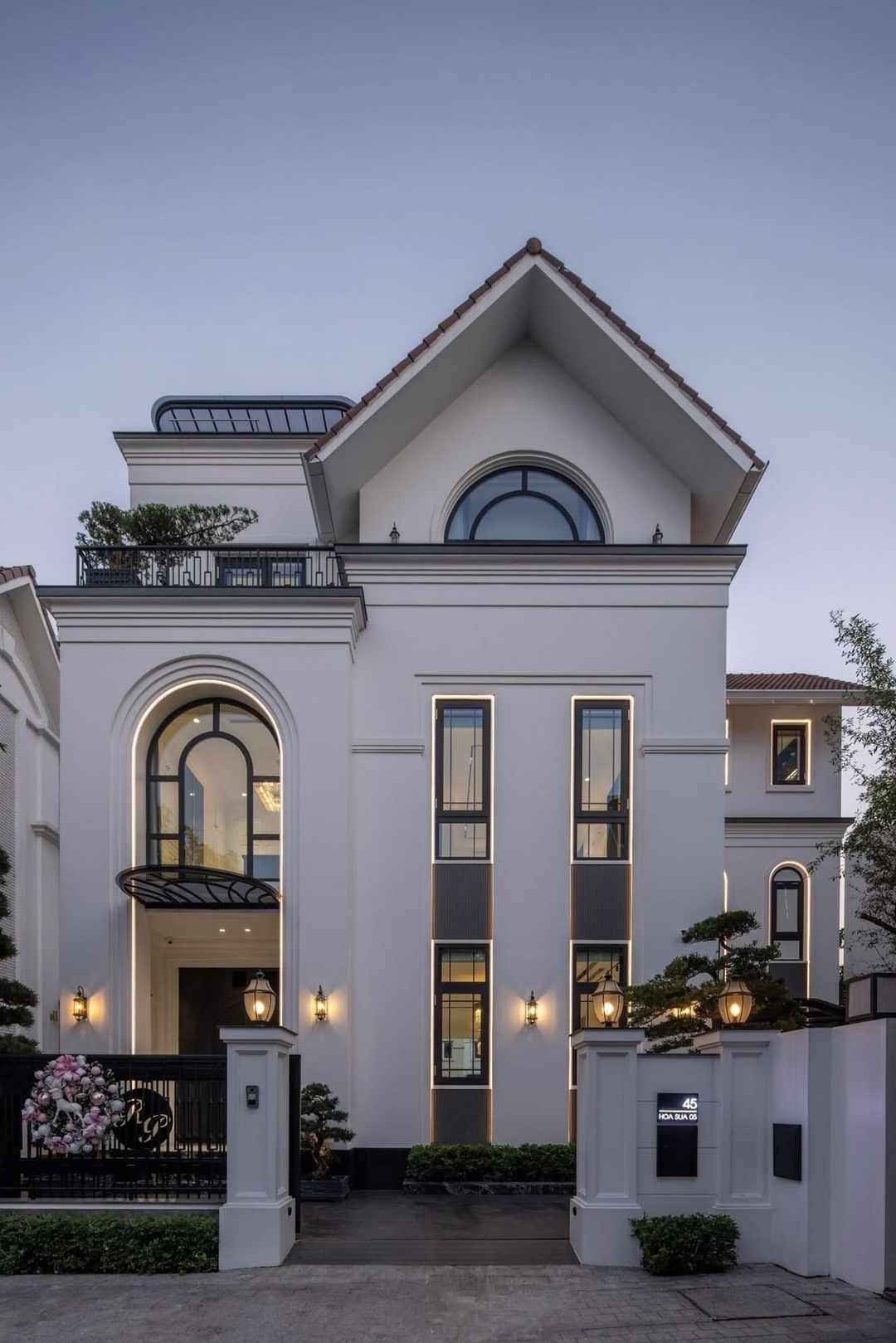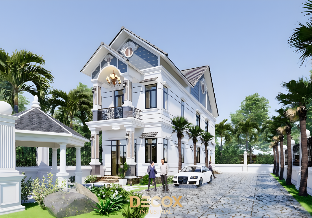 Nhà mái Thái 3 tầng theo phong cách tân cổ điển ghi dấu ấn bằng vẻ đẹp hài hòa giữa đường nét cổ điển tinh tế và bố cục kiến trúc hiện đại, tạo nên một tổng thể vừa sang trọng vừa thời thượng. Các mảng tường được trang trí phào chỉ nhẹ, cột trụ thanh thoát và hệ ban công uốn lượn mang đến cảm giác uy nghi mà không nặng nề. Kết hợp với mái Thái dốc vút cao, công trình trở nên bề thế, thông thoáng và đầy chất quý phái. Đây là lựa chọn lý tưởng cho gia chủ muốn nâng tầm hình ảnh ngôi nhà với vẻ đẹp vượt thời gian.