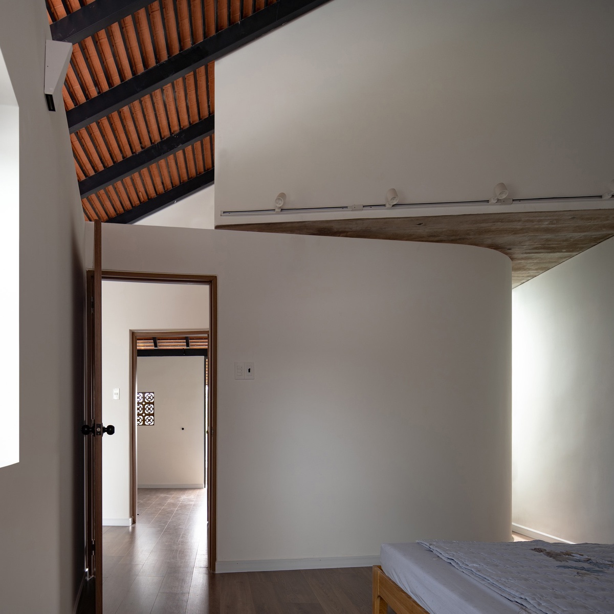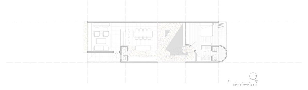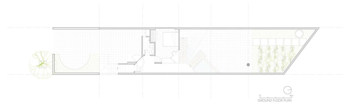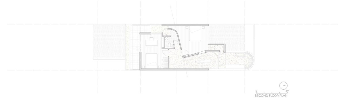 Bởi đây là tổ ấm của một gia đình 3 thế hệ, gồm ông - bố mẹ - con cái. Chủ đầu tư yêu cầu phòng ngủ chính được đặt ở vị trí trung tâm từ đó có thể quan sát bao quát hết được tất cả những hoạt động của những thành viên khác trong gia đình từ con nhỏ cho đến người ông ở tầng dưới, có thể thấy tất cả đều xuất phát từ dụng tâm lo lắng cho từng thành viên trong gia đình đã góp phần khiến cho kiến trúc của Nhà triền dốc trở nên độc đáo nhưng đầy tâm ý.