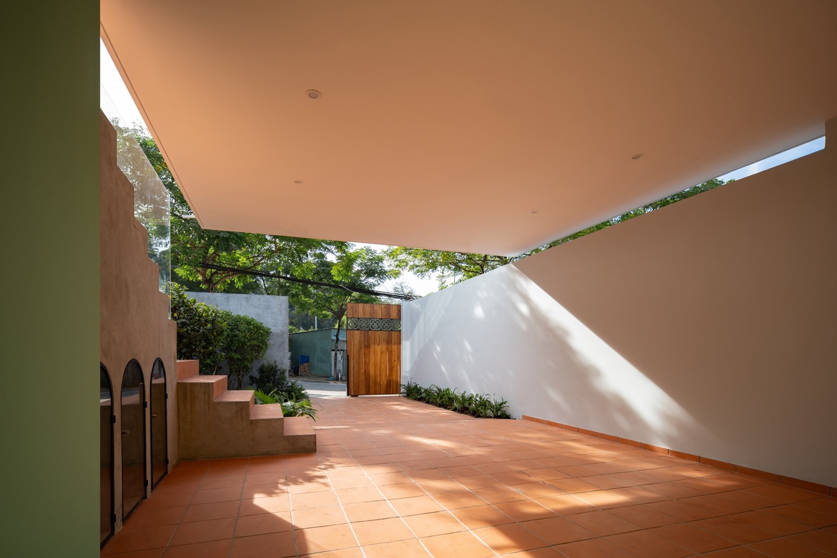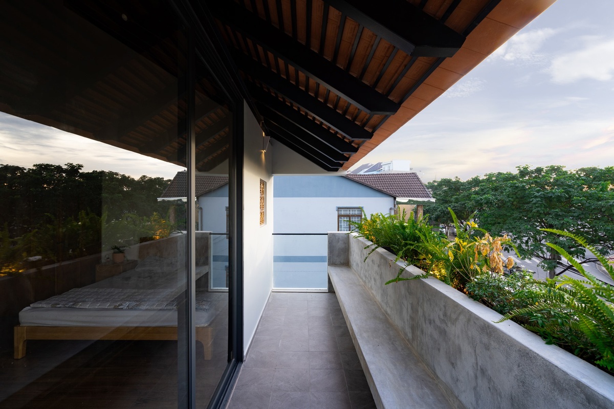 Bố trí đơn giản kết hợp với trần mái ngói tạo cảm giác xưa cũ, hoài cổ. Hệ thống sửa sổ sát đất bằng kính thủy tinh trong suốt giúp căn nhà luôn nhận được đầy đủ ánh sáng tự nhiên.