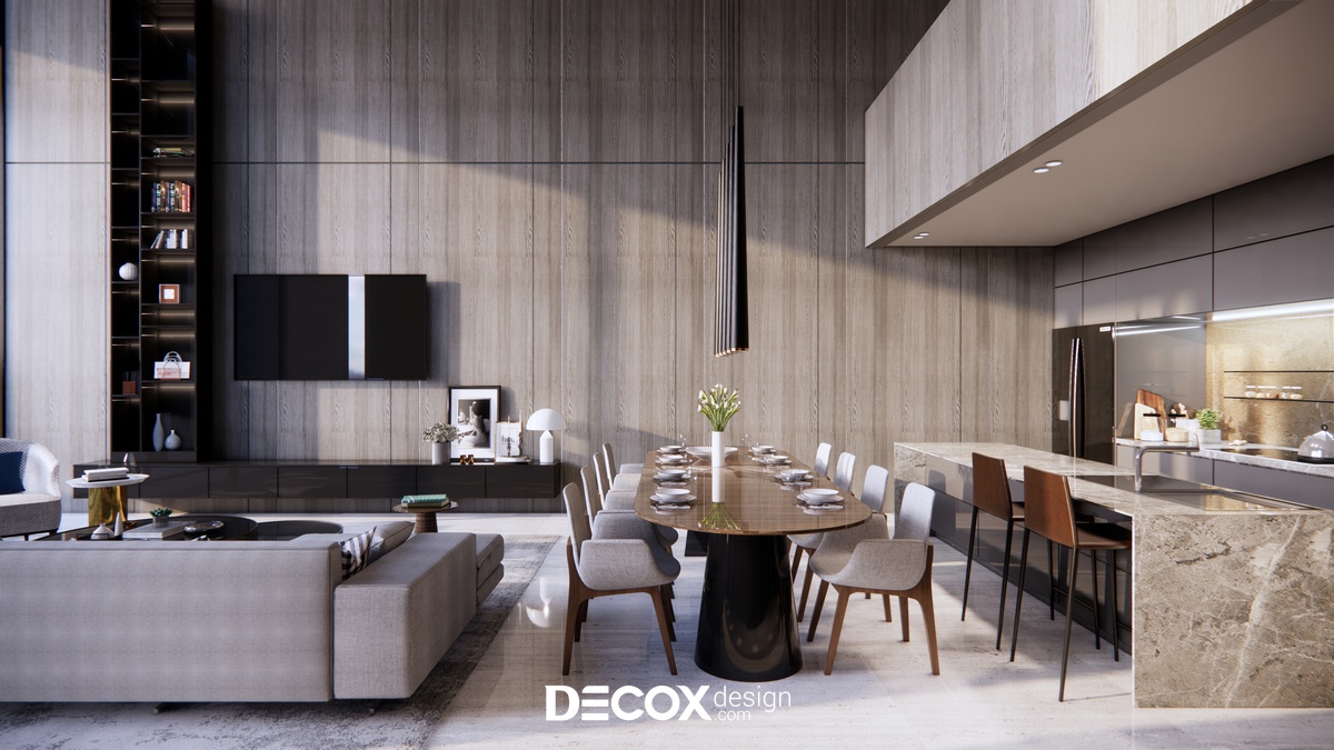 Thời gian gần đây có lẽ khái niệm căn hộ Penthouse đã chẳng còn trở nên quá xa lạ đối với chúng ta nữa mà ngược lại khi nhắc đến ai cũng sẽ có thể mường tượng ra được ngay những căn hộ trên tầng cao nhất của các cao ốc hoặc tòa nhà được thiết kế nội thất đầy sang trọng, xa hoa. Và để khẳng định giá trị và đẳng cấp của căn hộ penthouse tại Hoàng Linh Apartment, Decox Design đã lựa chọn phong cách hiện đại như được “đo ni đóng giày’’ cho loại hình căn này.