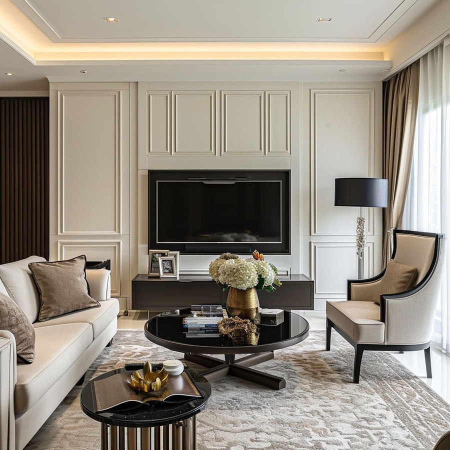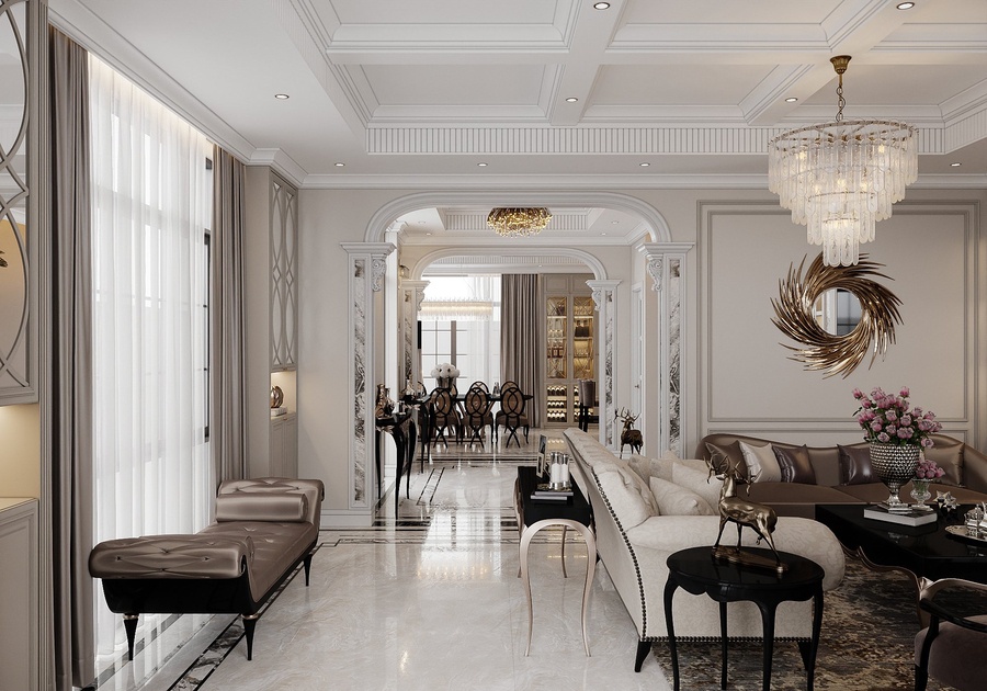 Thiết kế nội thất phòng khách phong cách Modern Classic