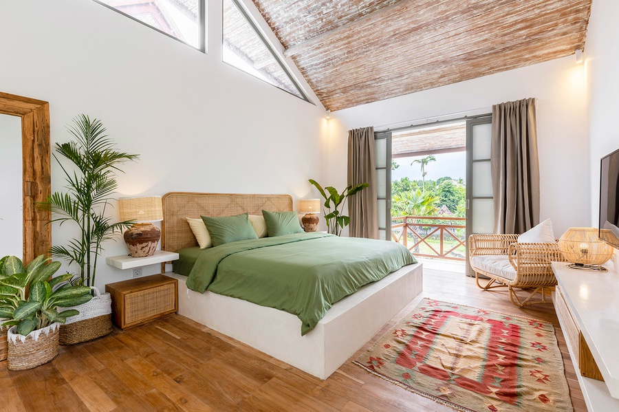 - Sử dụng sàn gỗ hoặc thảm trải sàn họa tiết thiên nhiên để tăng tính nhiệt đới cho không gian sống