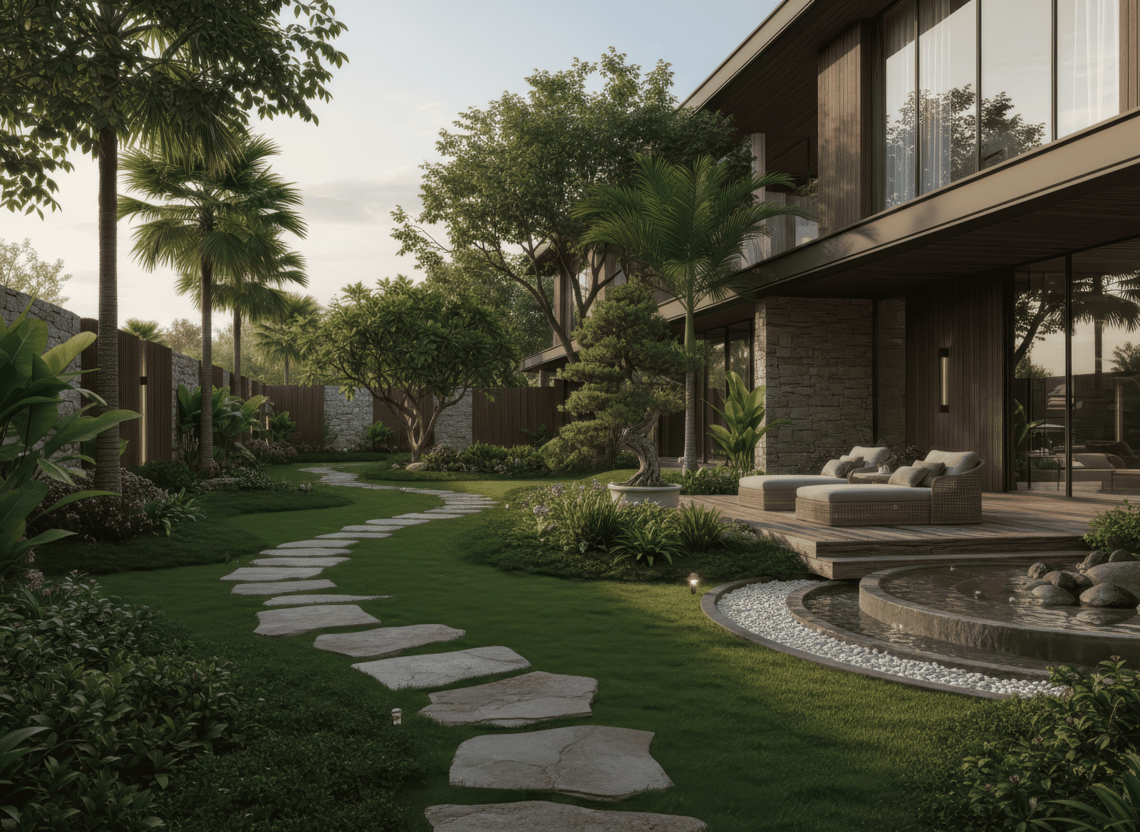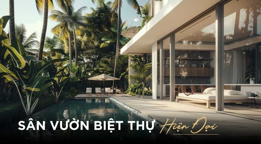 Thiết kế sân vườn biệt thự phong cách hiện đại, nhiệt đới