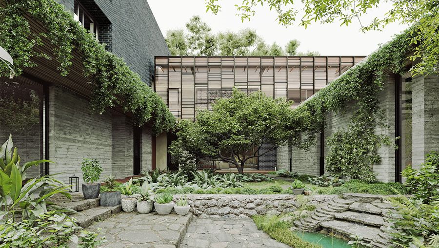 ✦ Thiết kế hài hòa giữa hình khối kiến trúc và cảnh quan sân vườn