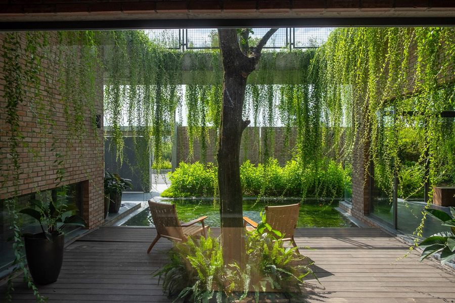 - Tạo hệ sinh thái xanh mát ngay trong nhà: Mảng xanh thiên nhiên đóng vai trò vô cùng quan trọng đối với đời sống con người. Không chỉ có tác dụng giúp con người thư giãn, giải tỏa cảm xúc, cân bằng năng lượng mỗi khi ngắm nhìn, thiên nhiên còn có tác dụng trong việc thanh lọc, điều hòa không khí, mang đến một không gian sống mát mẻ, có lợi cho sức khỏe con người. - Điểm nhấn nổi bật cho khối công trình: Không chỉ mang đến một không gian sống mát mẻ, cảnh quan sân vườn còn đóng vai trò trong việc thăng hạng giá trị thẩm mỹ, làm tôn lên đẳng cấp của công trình.