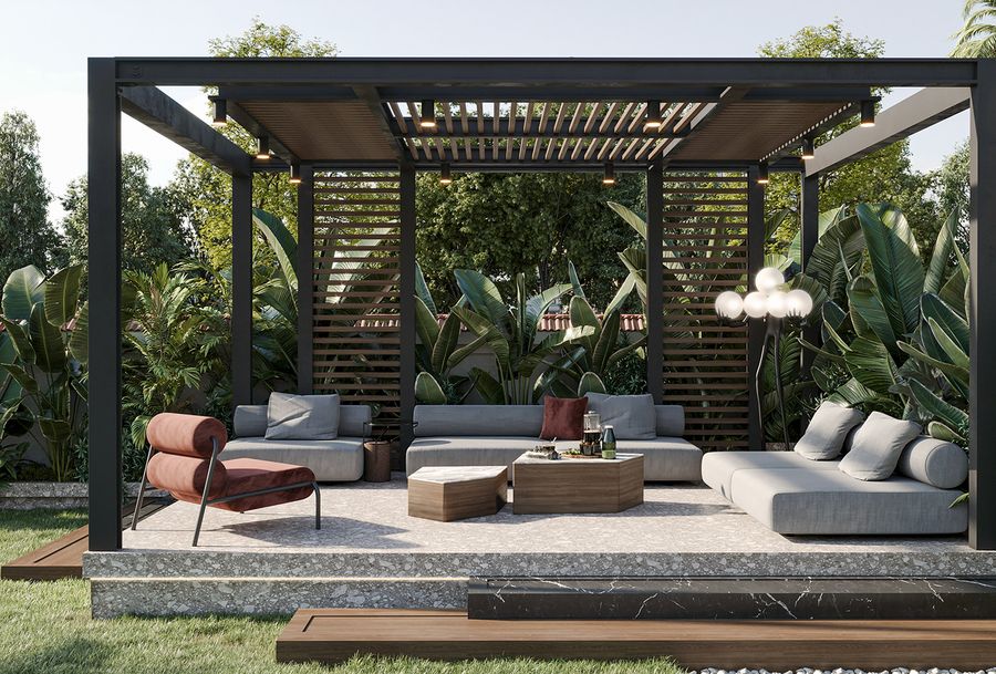 - Mẫu sân vườn biệt thự với giàn pergola ấn tượng