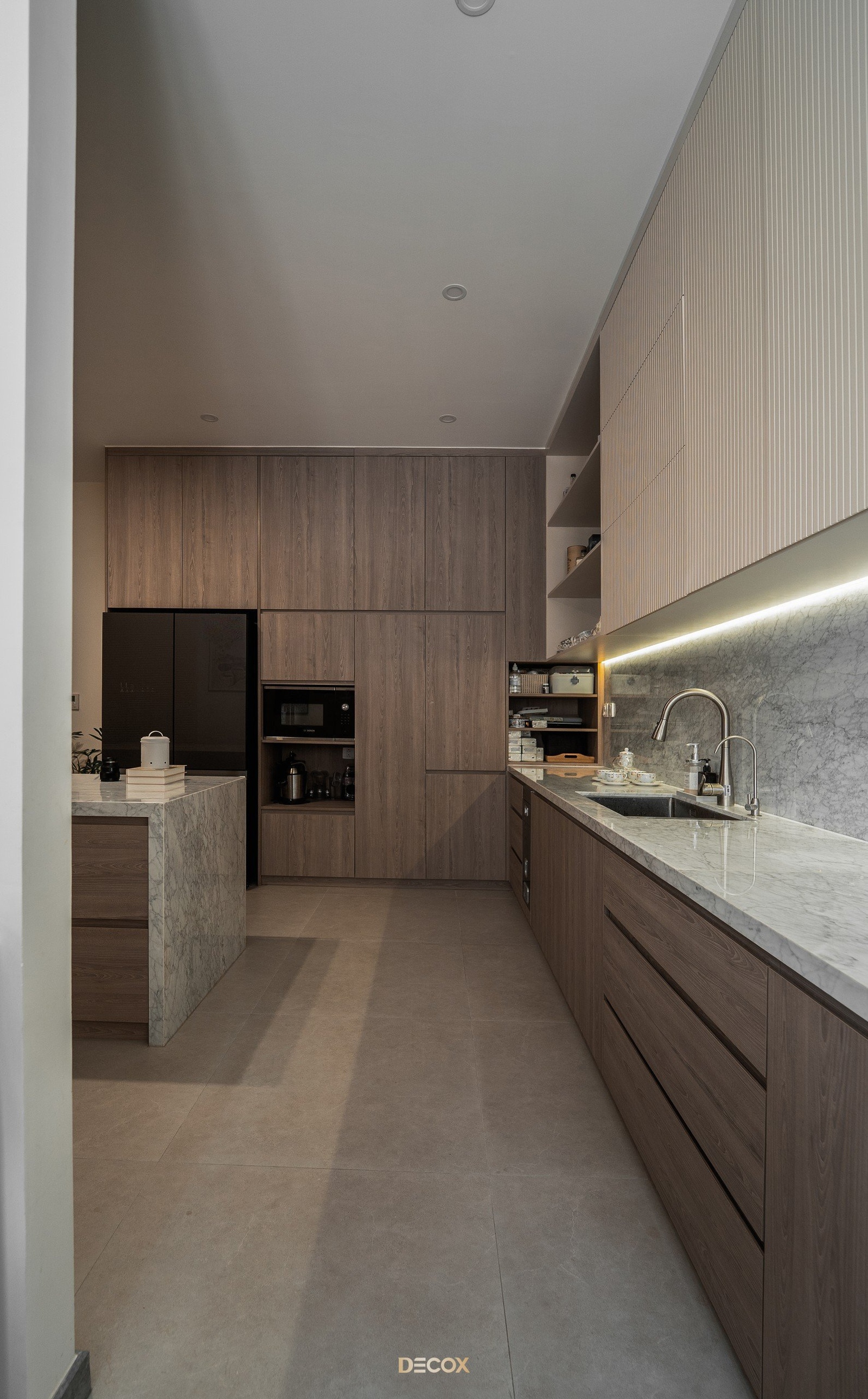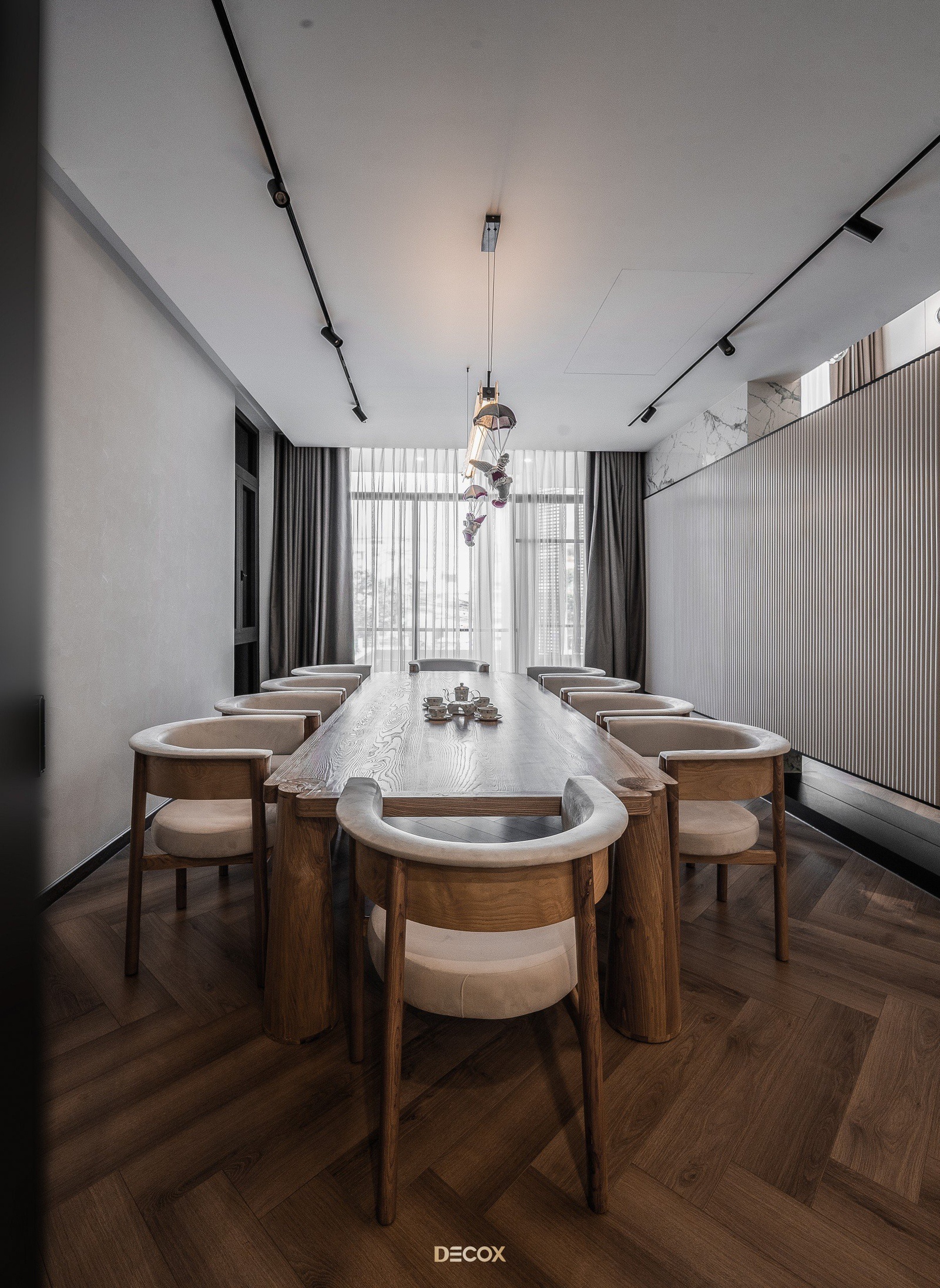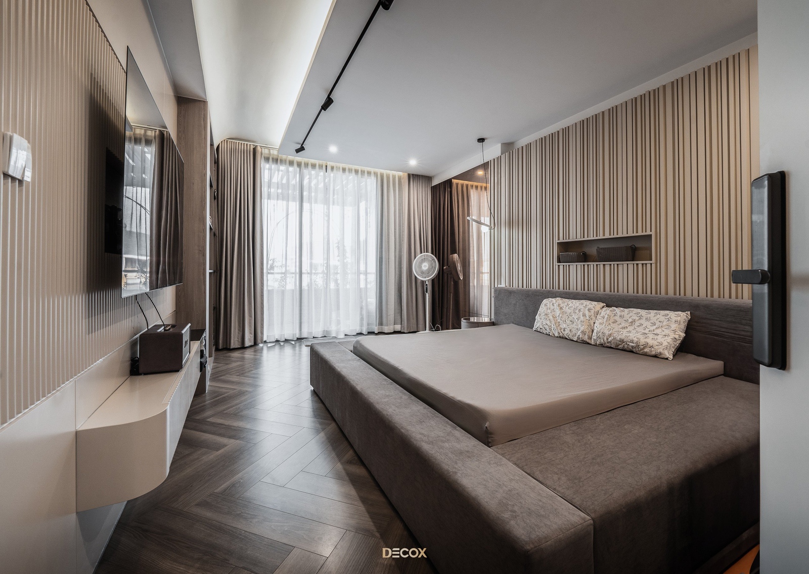 Sử dụng ngôn ngữ thiết kế hiện đại chủ đạo là bảng màu trung tính và gam màu của gỗ kết hợp những đường nét thẳng, cong được vận dụng linh hoạt, Decox đã mang đến một tổng thể thanh lịch, sang trọng và tinh tế trong dự án Binh Tan Townhouse.