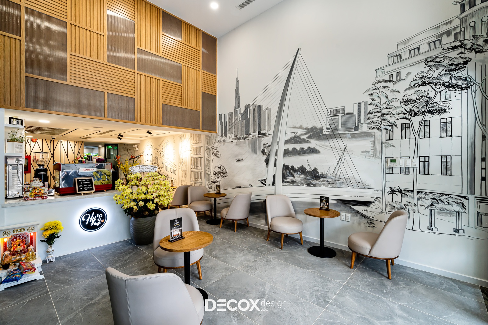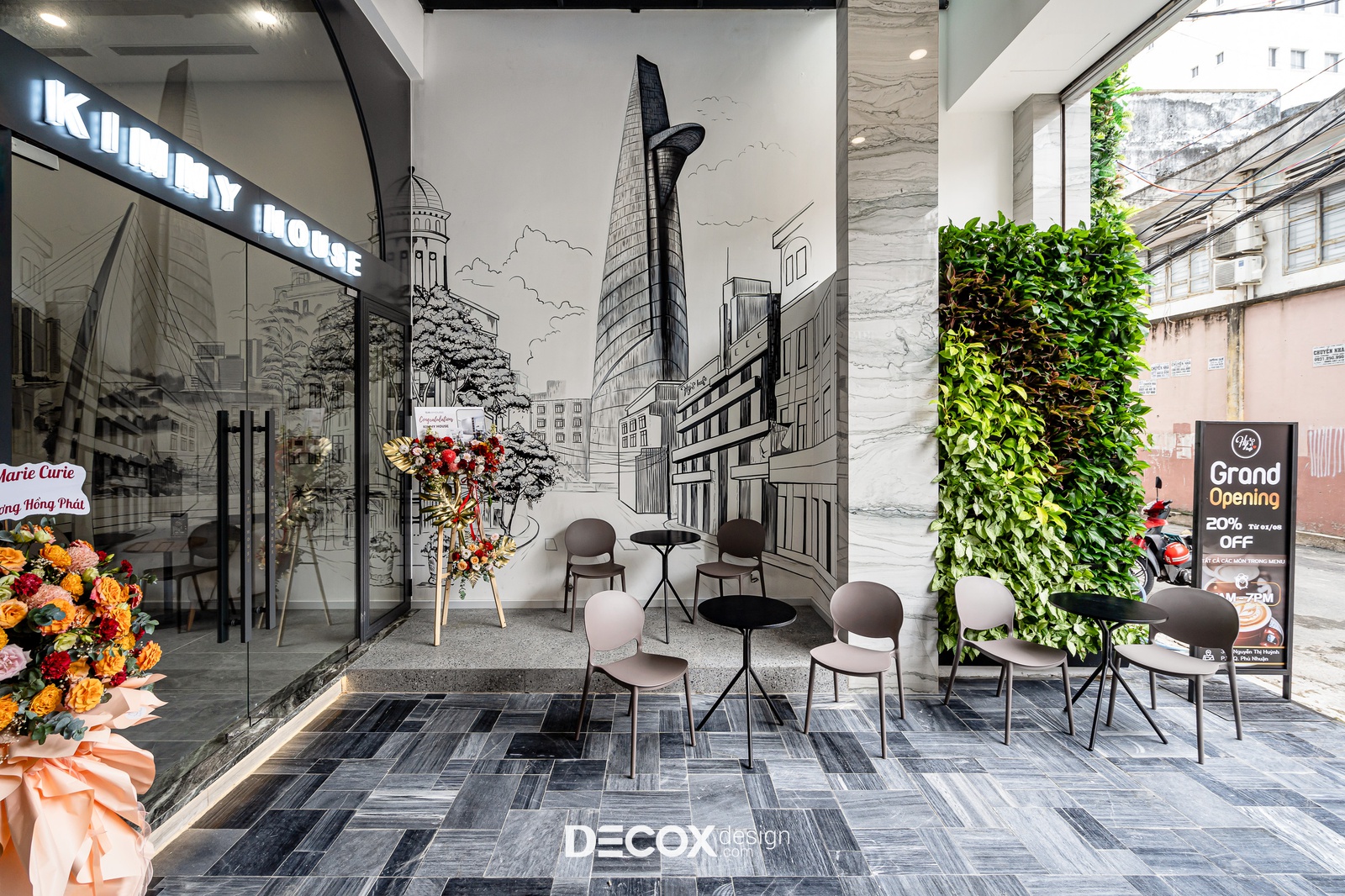 Khi tâm sự với Decox Design, Chị đã chia sẻ mong muốn biến căn nhà 6 tầng thành một mô hình kinh doanh với tầng trệt sẽ là không gian quán cafe - ăn uống và những tầng còn lại làm thành căn hộ dịch vụ đầy tiện ích. Được biết đây là dự định mà Chị đã ấp ủ từ rất lâu và chọn lựa gửi gắm “đứa con tinh thần” của mình sau khi đã tham khảo qua những dự án mà Decox từng thực hiện. Với Kimmy House, Decox chọn lựa phong cách hiện đại, phong cách “signature” của đội ngũ Decox từ những ngày đầu thành lập. Dưới đây là bộ ảnh chia sẻ chi tiết về công trình hoàn thiện, mời bạn cùng chiêm ngưỡng!