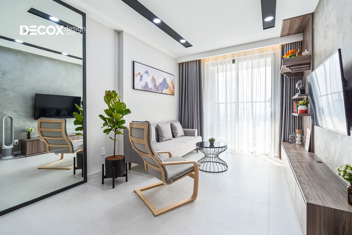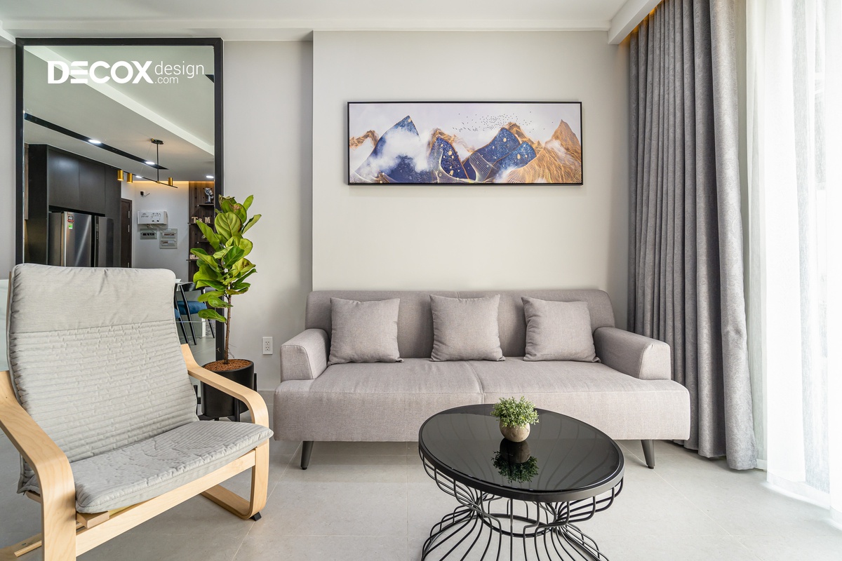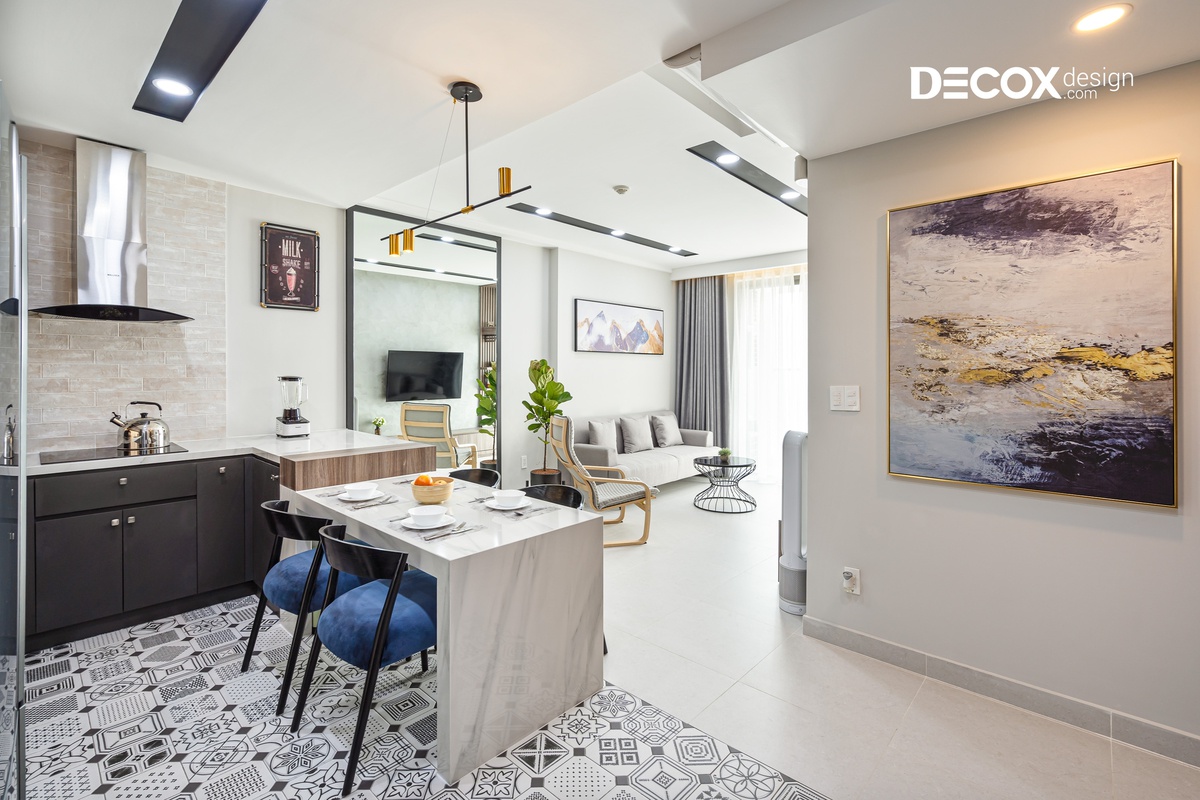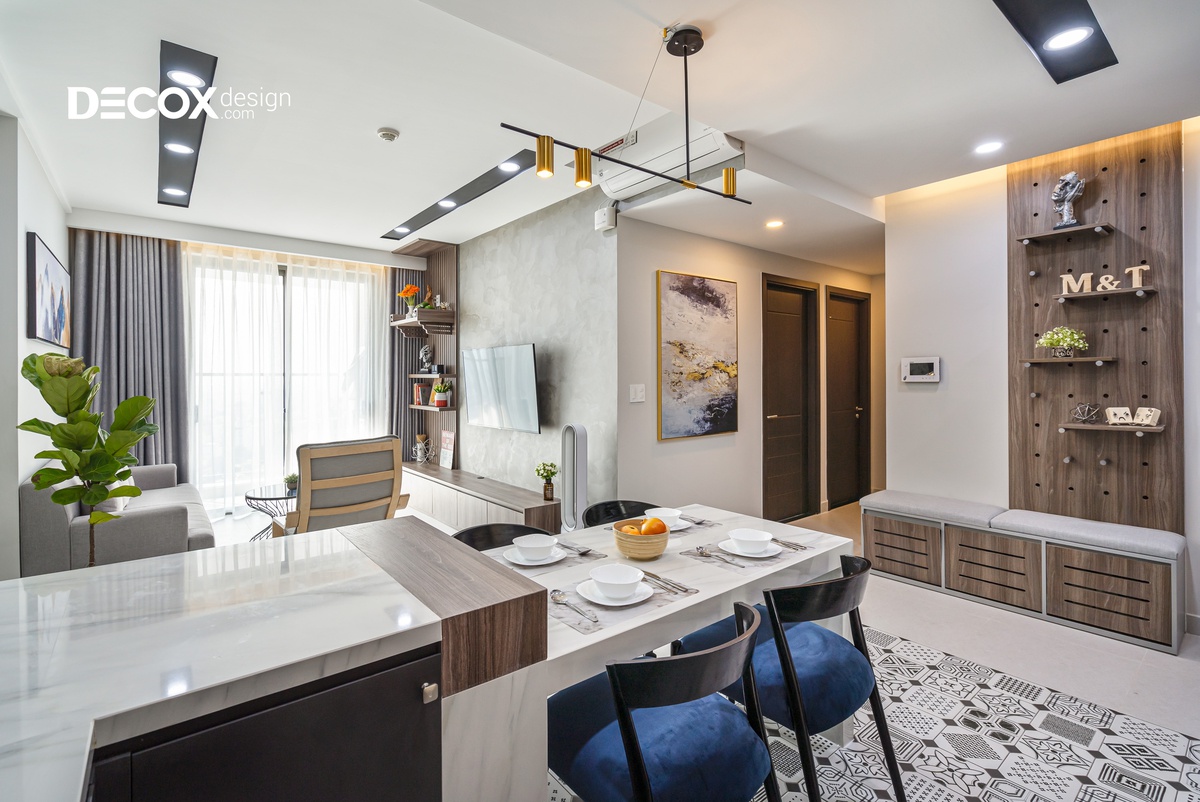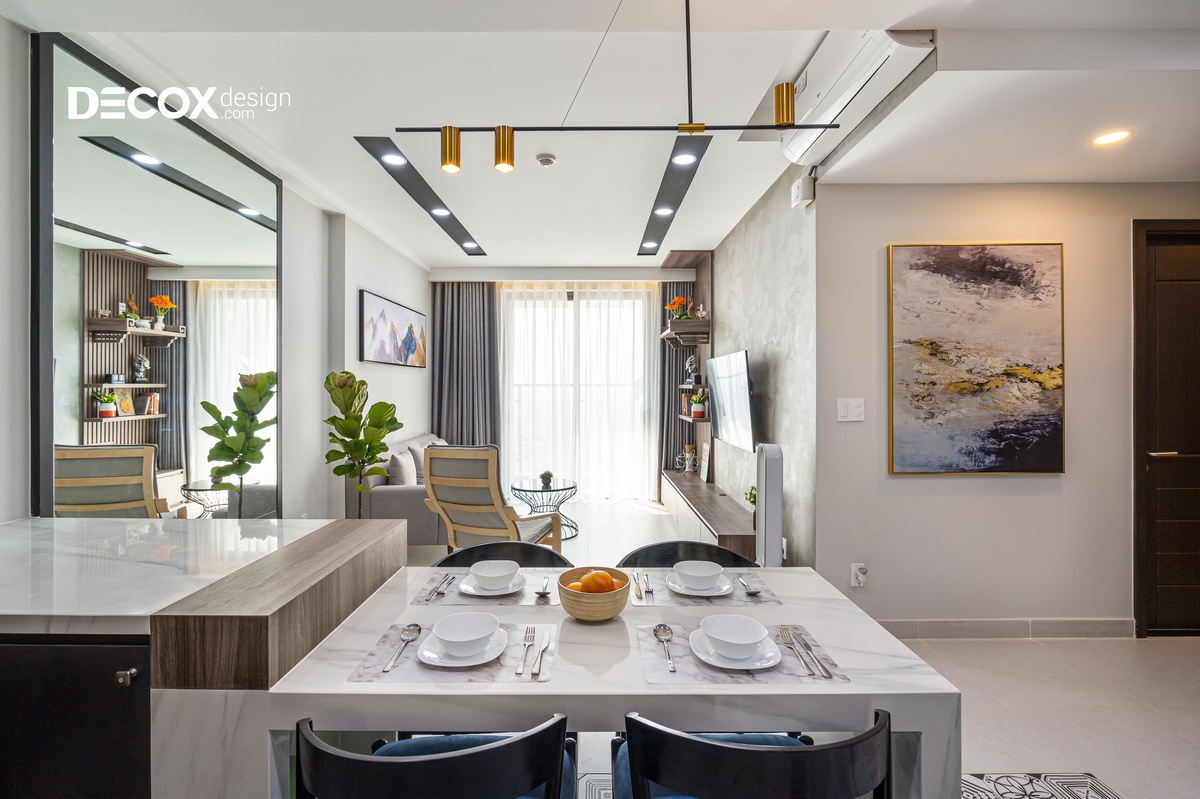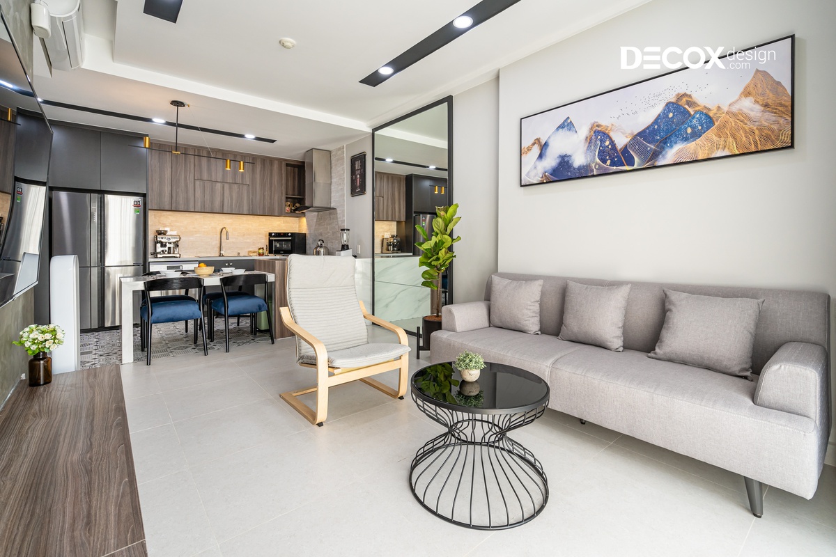 Căn hộ được thiết kế theo phong cách nội thất hiện đại, các đường nét dứt khoát, giản lược đi những thứ rườm rà và chú trọng hơn về công năng. Gia chủ thể hiện được cá tính của riêng mình và căn hộ được thiết kế theo không gian mở, luôn hướng đến sự thoải mái và thoáng đãng để thư giãn tâm trí sau những giờ làm mệt mỏi.