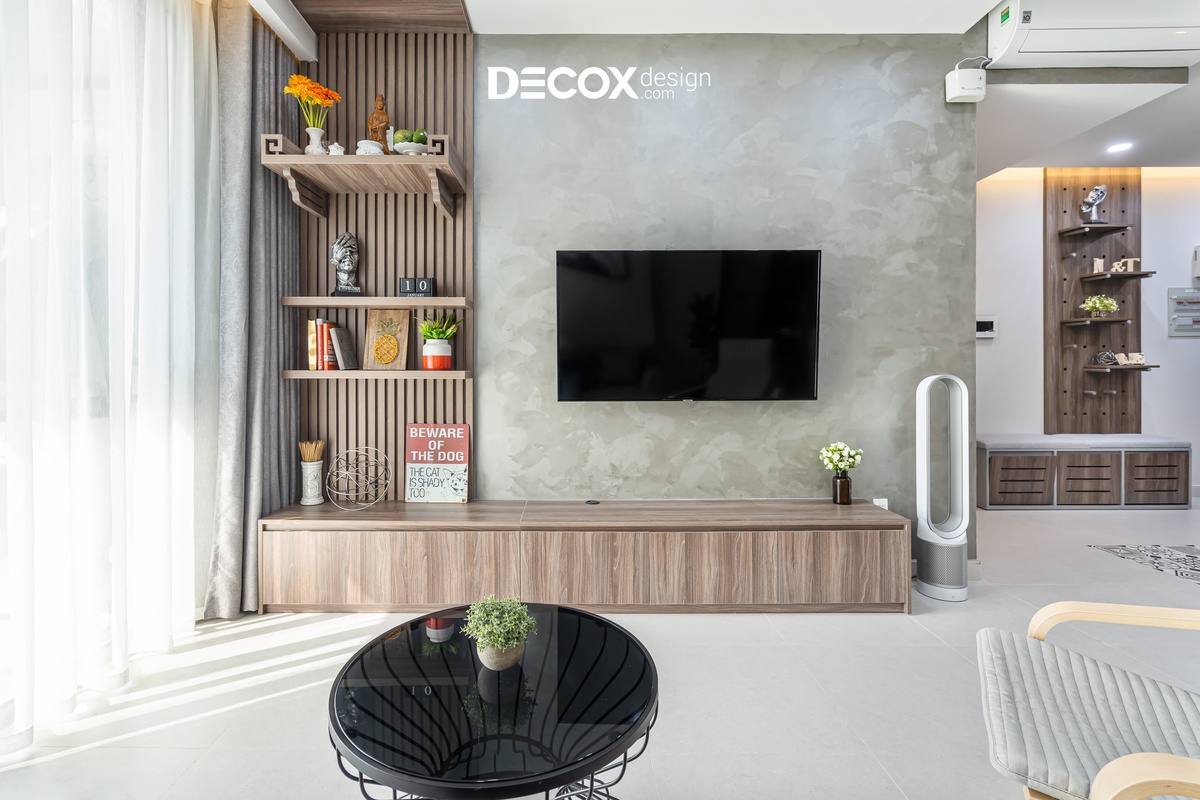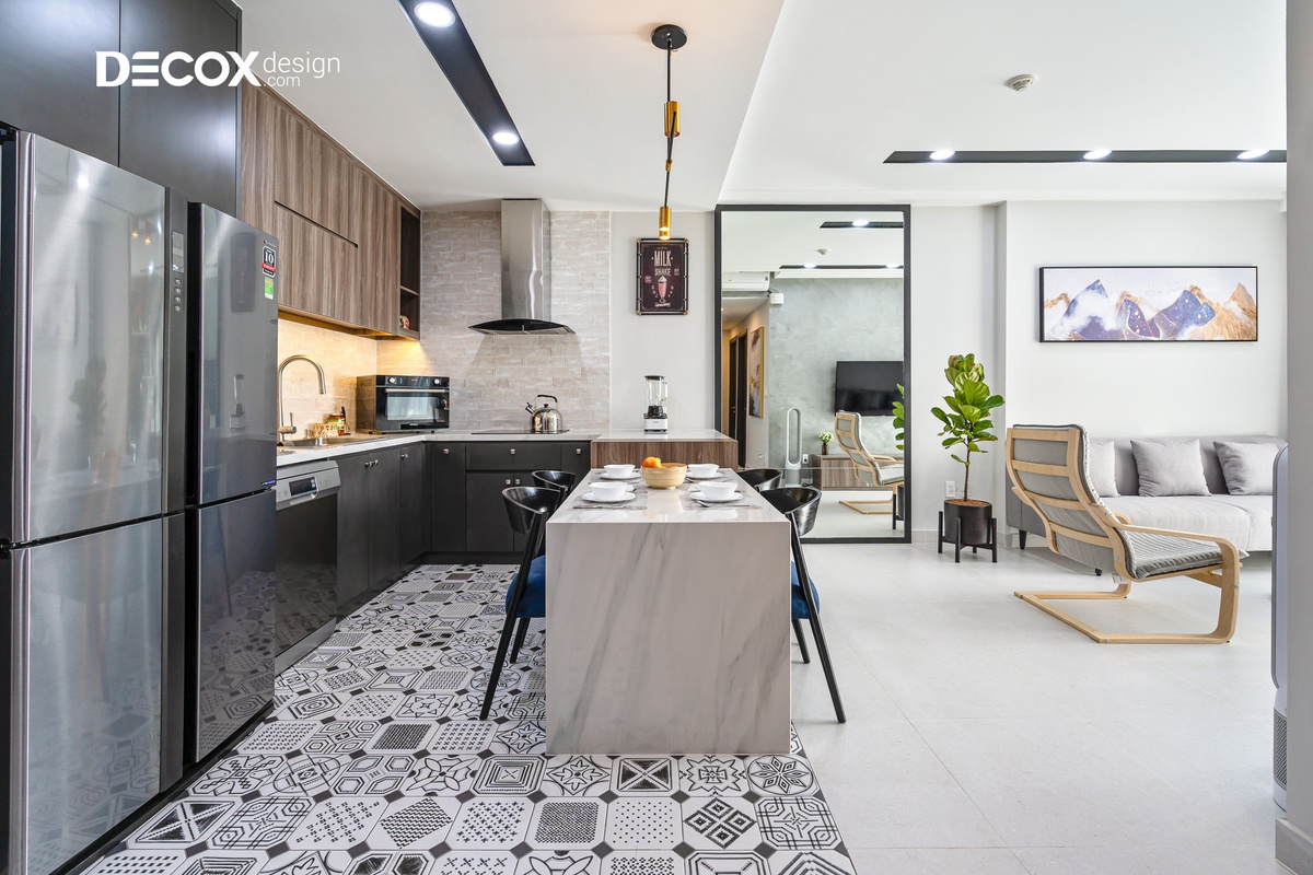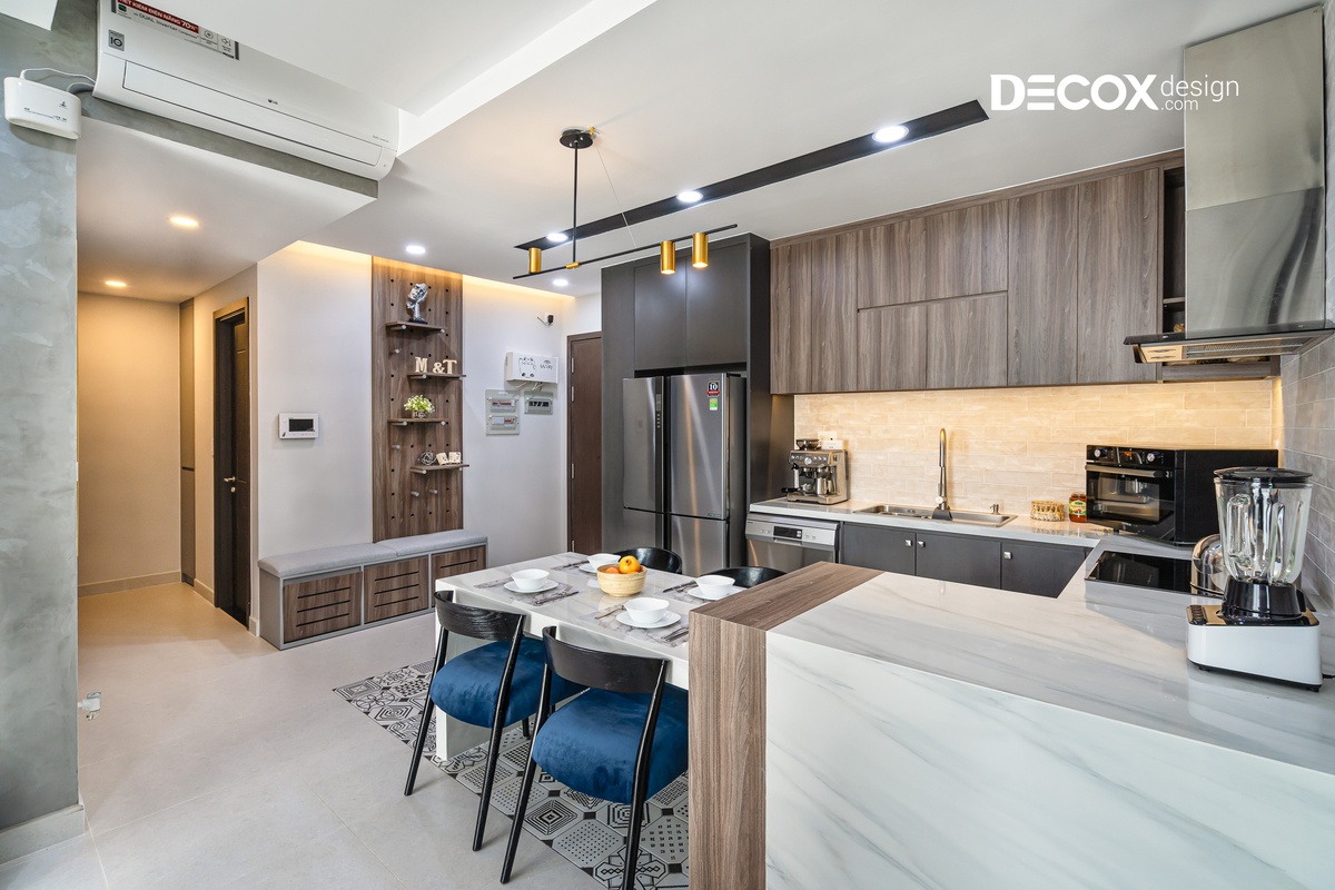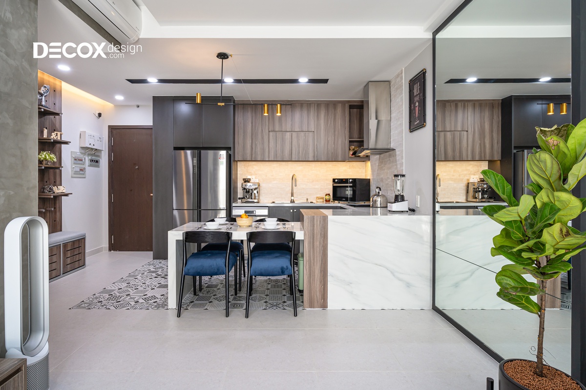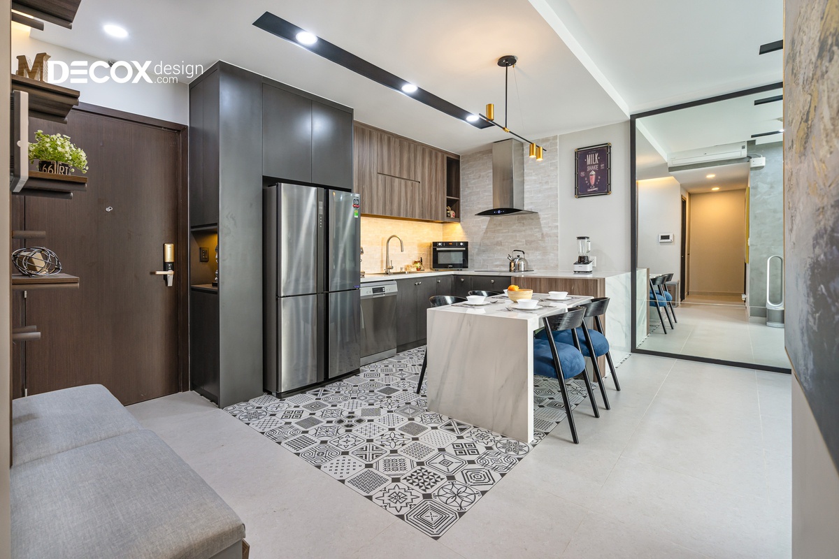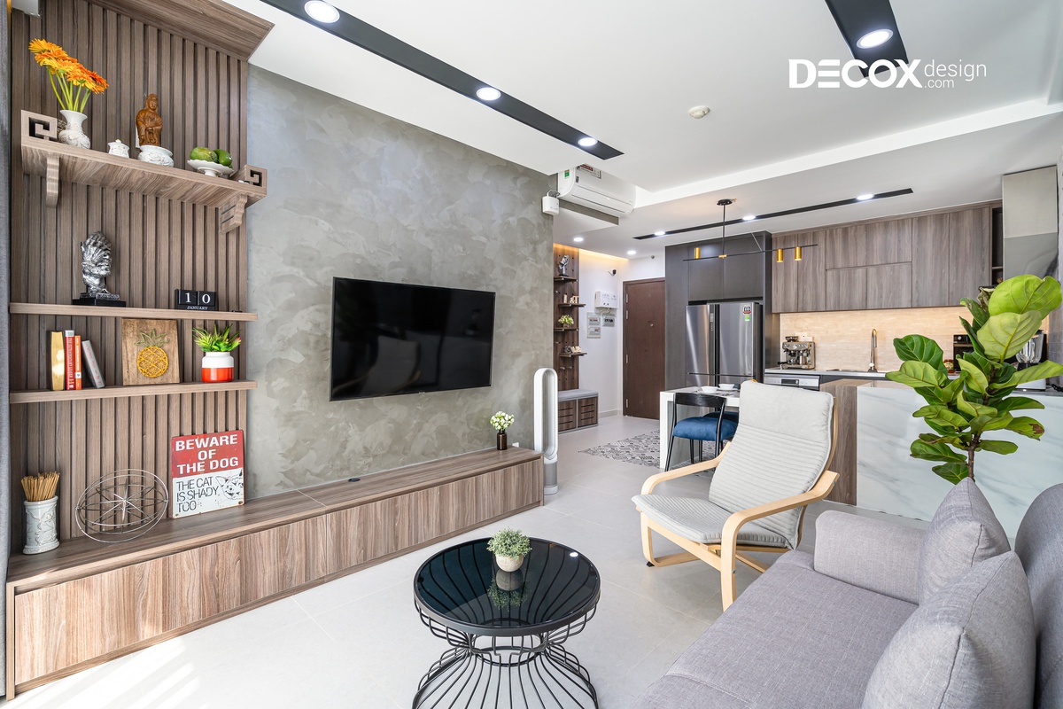 Căn hộ được thiết kế theo phong cách nội thất hiện đại, các đường nét dứt khoát, giản lược đi những thứ rườm rà và chú trọng hơn về công năng. Gia chủ thể hiện được cá tính của riêng mình và căn hộ được thiết kế theo không gian mở, luôn hướng đến sự thoải mái và thoáng đãng để thư giãn tâm trí sau những giờ làm mệt mỏi.