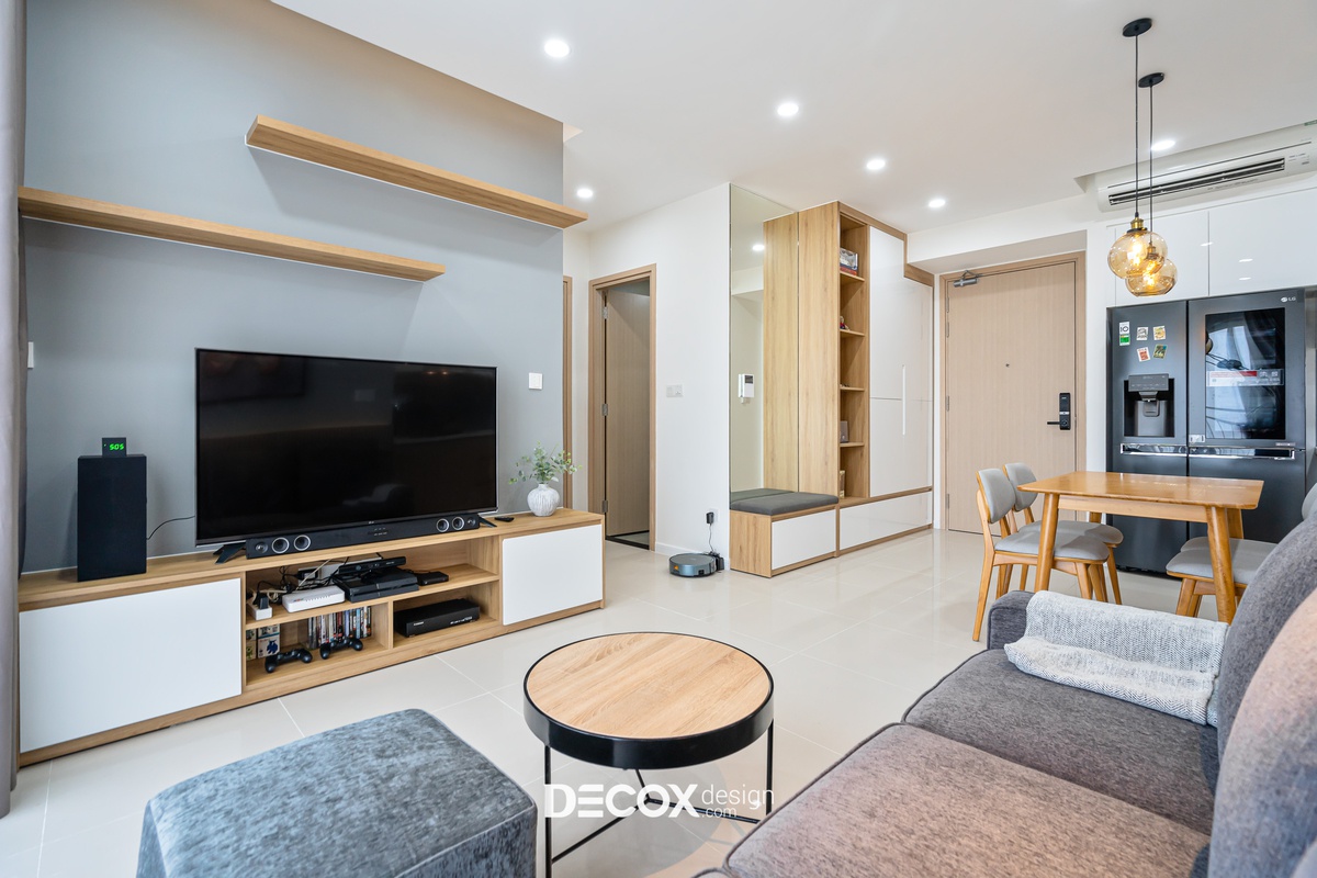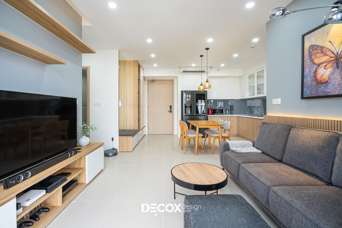 Thi công và thiết kế nội thất chung cư Palm Heights 79m2 phong cách hiện đại đơn giản nhưng tinh tế với gam màu trang nhã. Sự ưu ái nội thất gỗ ấm áp và hài hòa với các chi tiết nội thất. Decox Design hân hành cùng gia chủ chia sẻ niềm vui xây dựng tổ ấm!