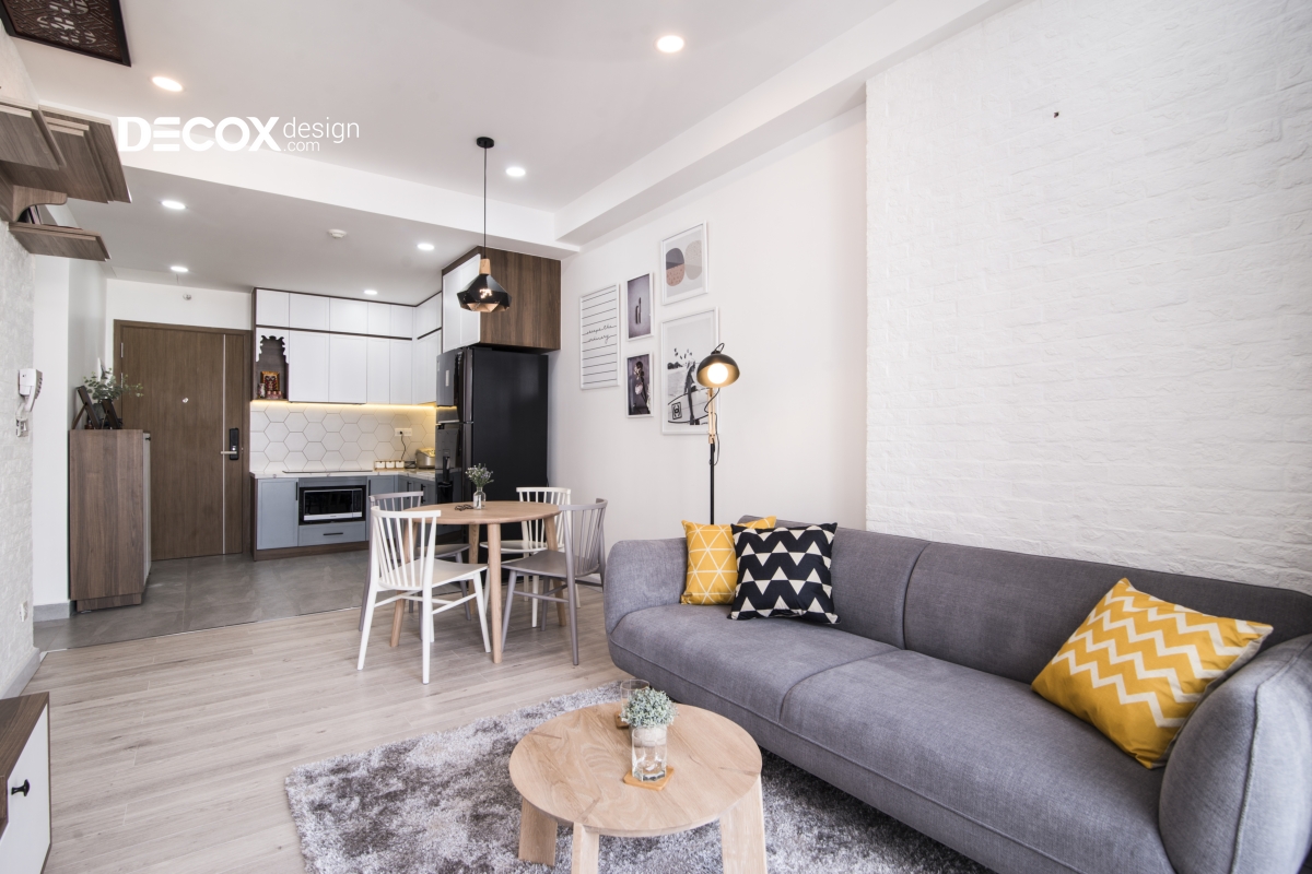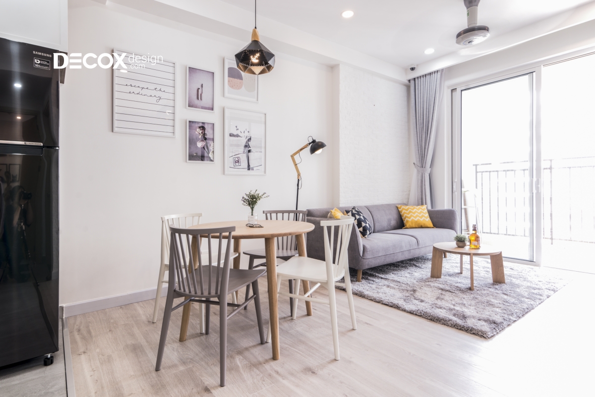 Vào những tháng cuối năm của 2018, đội ngũ thi công của Decox Design đã xuất sắc hoàn thành nội thất cho mẫu thiết kế căn hộ căn hộ Richstar 65m² giao thô trong 18 ngày. Phong cách mà chủ nhà chọn lần này cho ngôi nhà có điểm khác so với những công trình mà Decox Design đã thực hiện trước đây. Thay vì phong cách Hiện đại tuy sang trọng nhưng dần đi vào lối mòn nhàm chán, gia chủ chọn cho mình phong cách Scandinavian nhẹ nhàng, nữ tính với gam màu trắng làm chủ đạo. Trên nền màu sáng này, những chi tiết, điểm nhấn và màu sắc khác được tôn lên, tạo nên sự độc đáo cho không gian căn hộ.