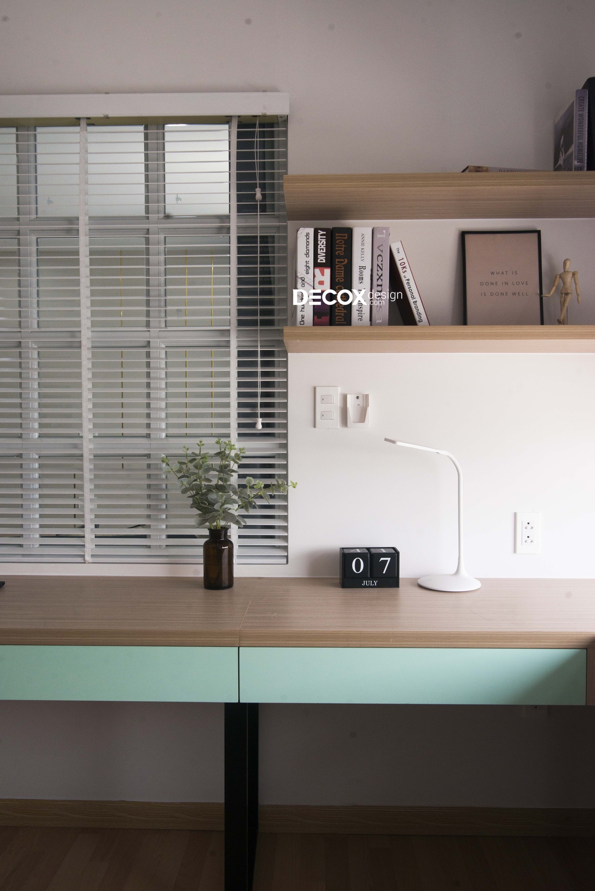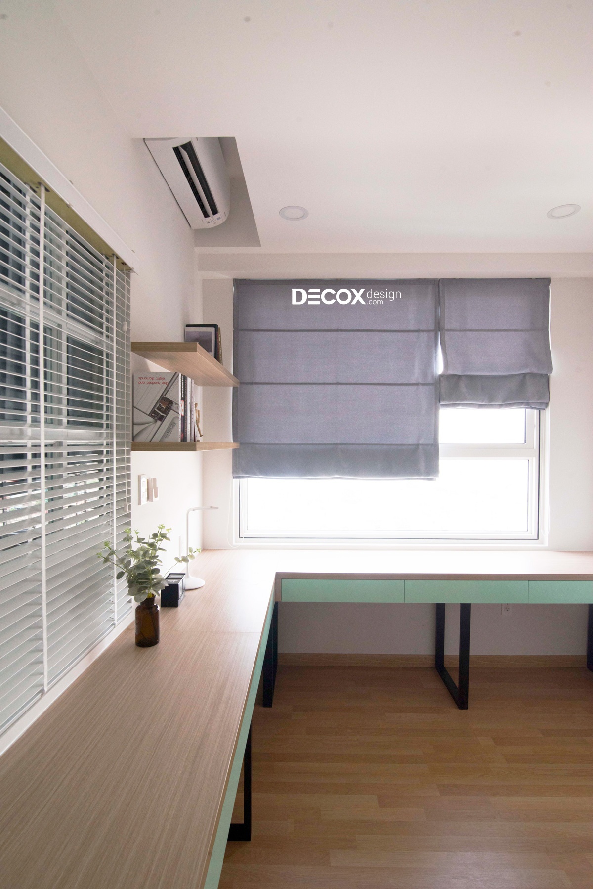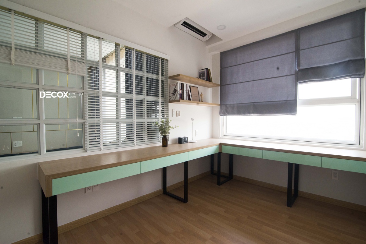 Góc làm việc rộng rãi, hệ thống cửa lùa nhầm tiết kiệm được diện tích và tăng thêm phần hiện đại.