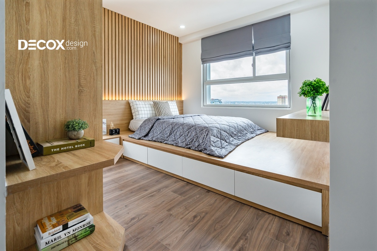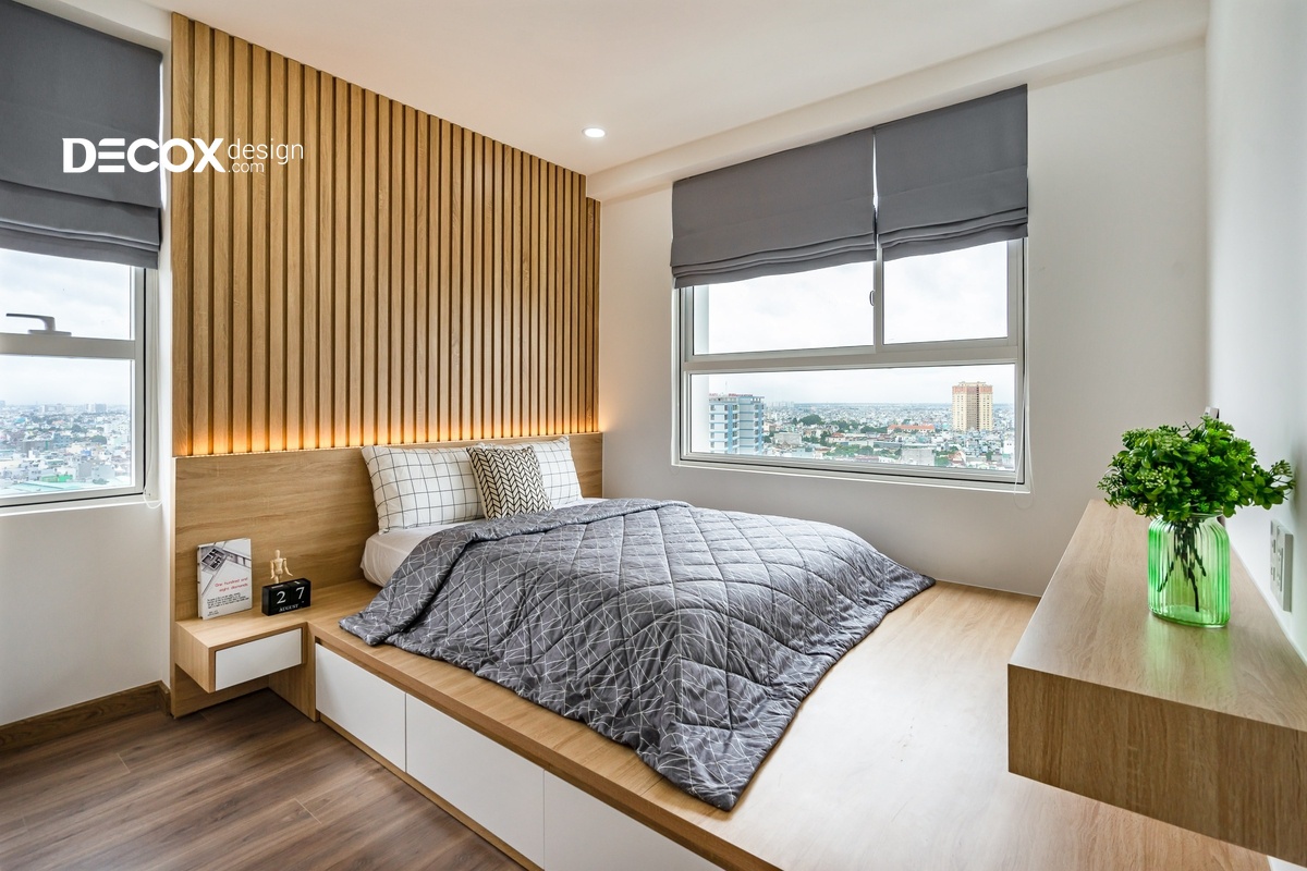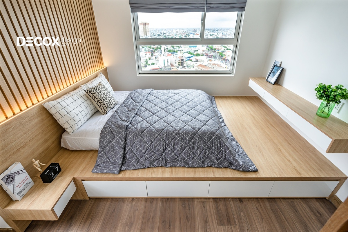 Sử dụng chủ yếu là gỗ nên đã tạo cho không gian ngủ một nơi ấm cúng và bên hiên cửa sổ để mang đến cho bạn một buổi tối mơ mộng về thành phố nhộn nhịp hoạt một buổi sáng tràn ngập năng lượng ánh sáng.