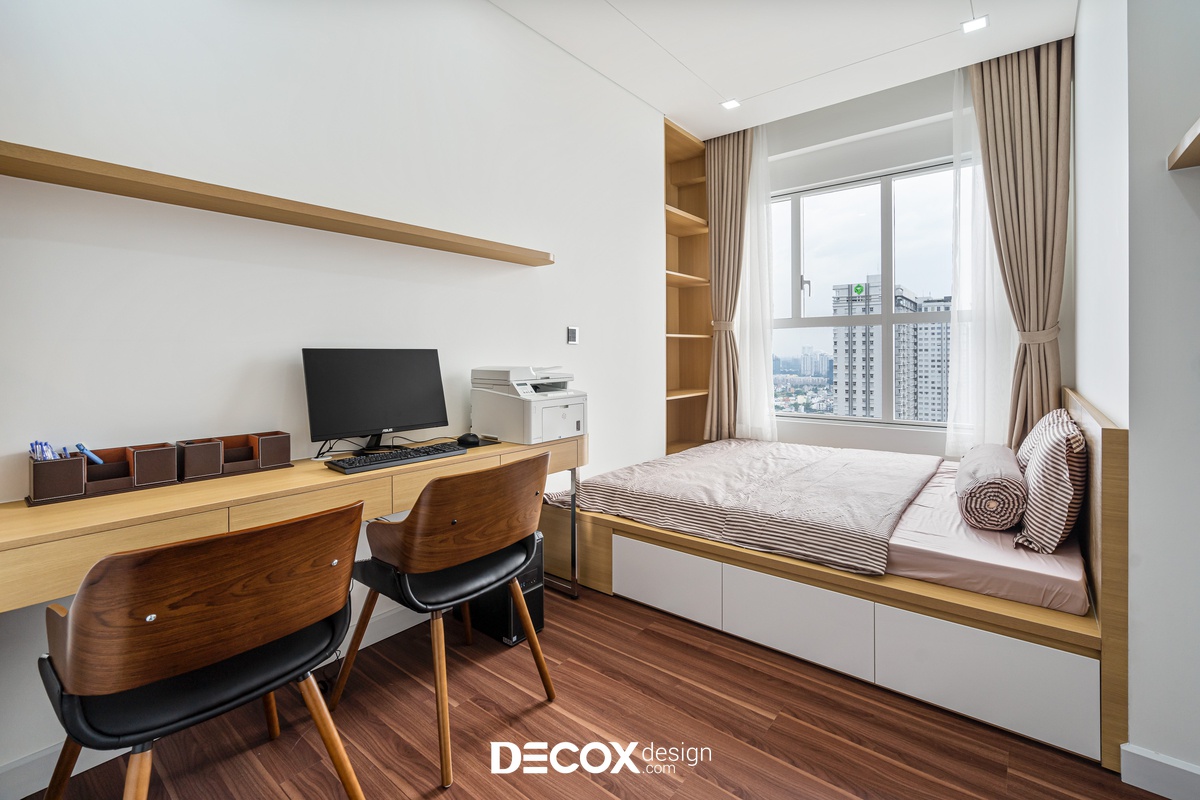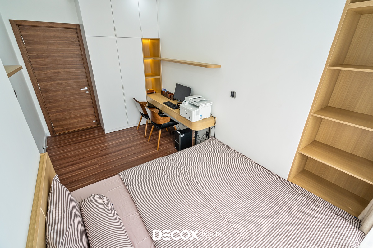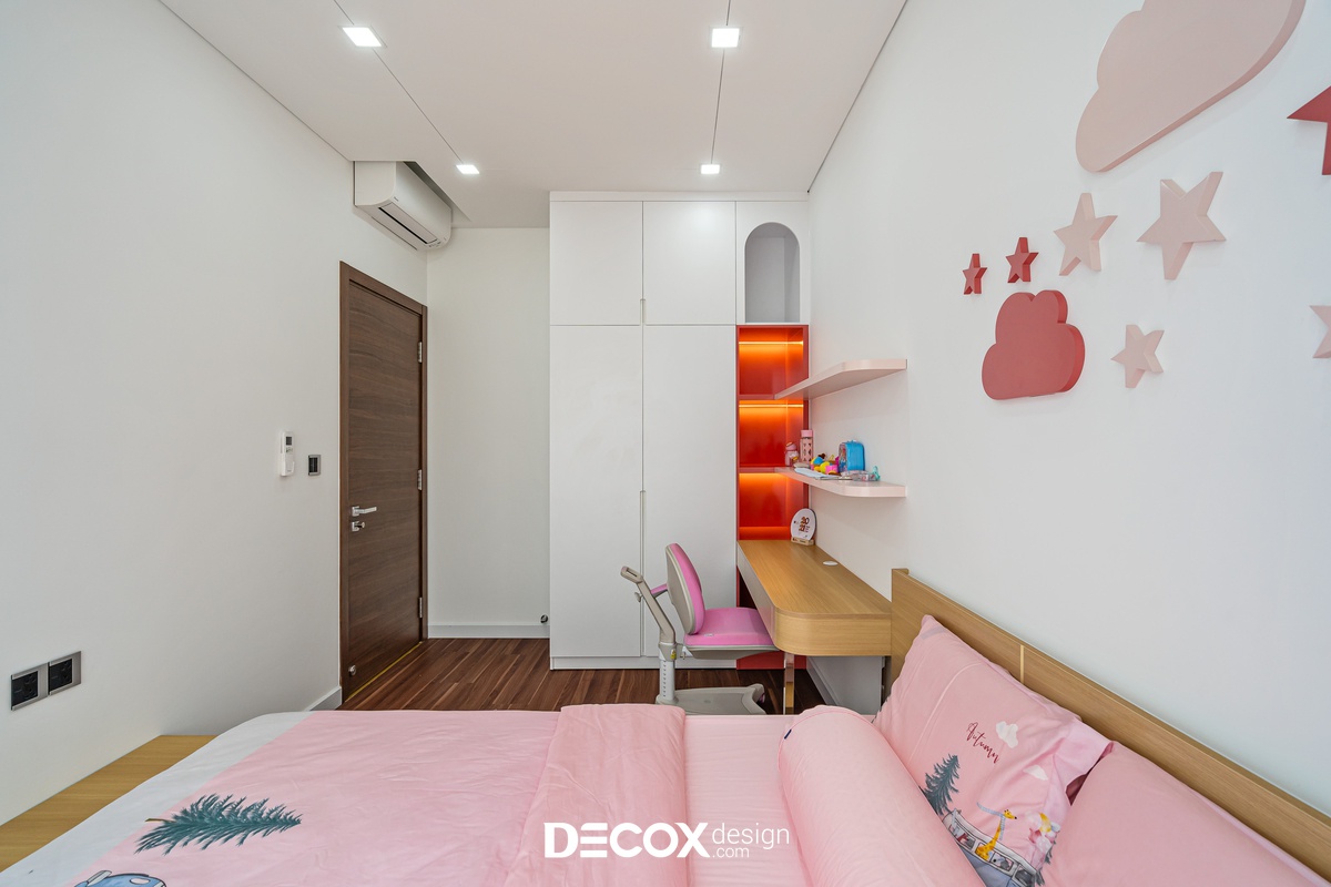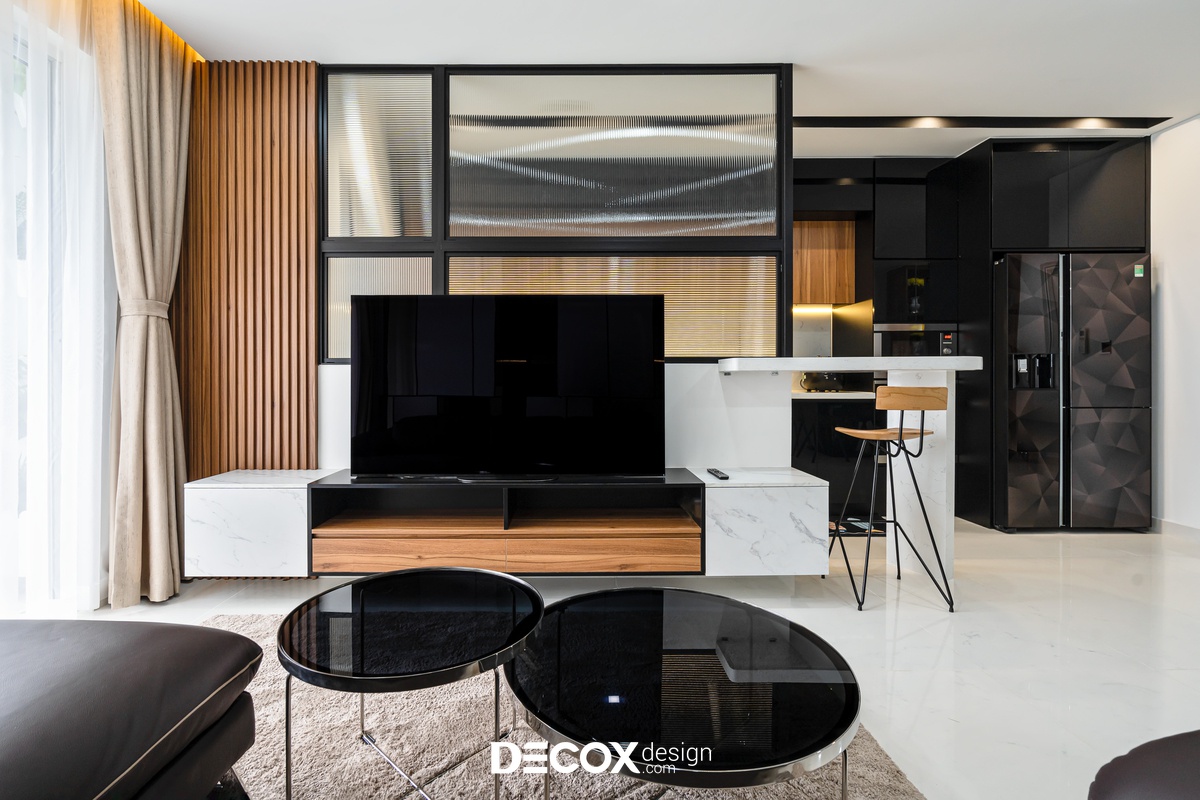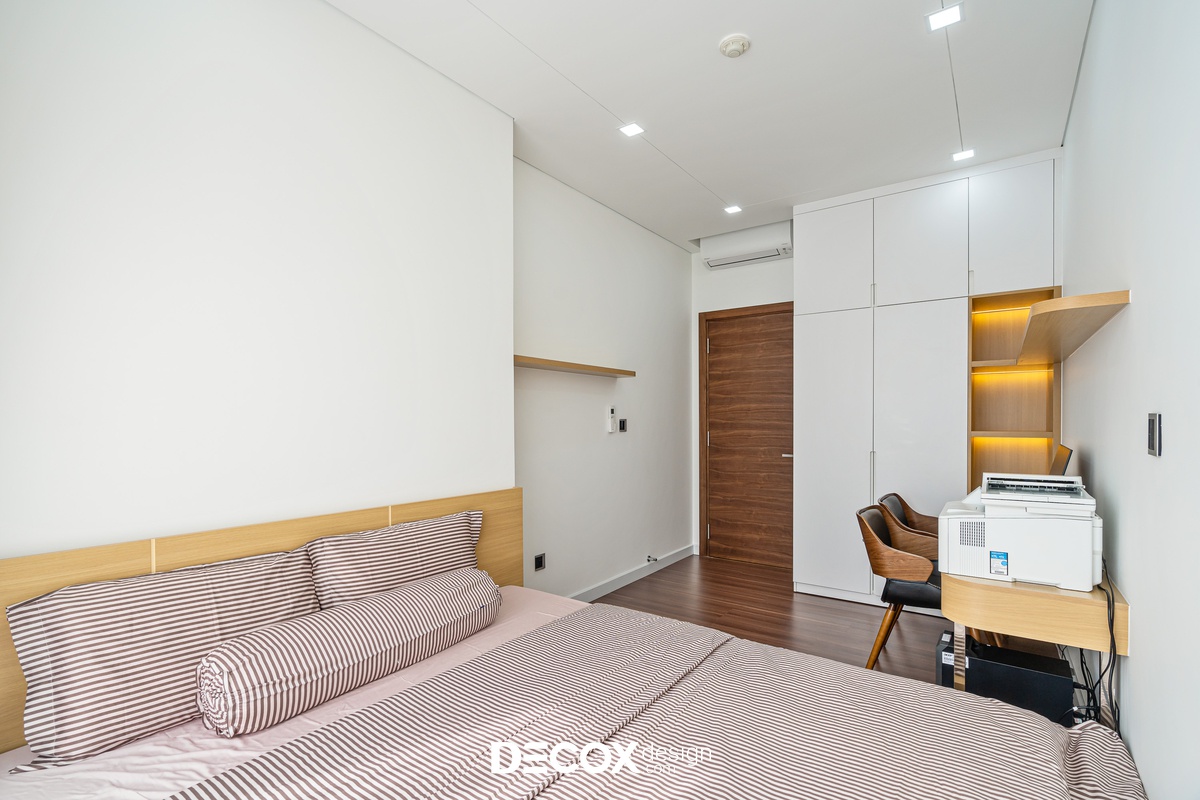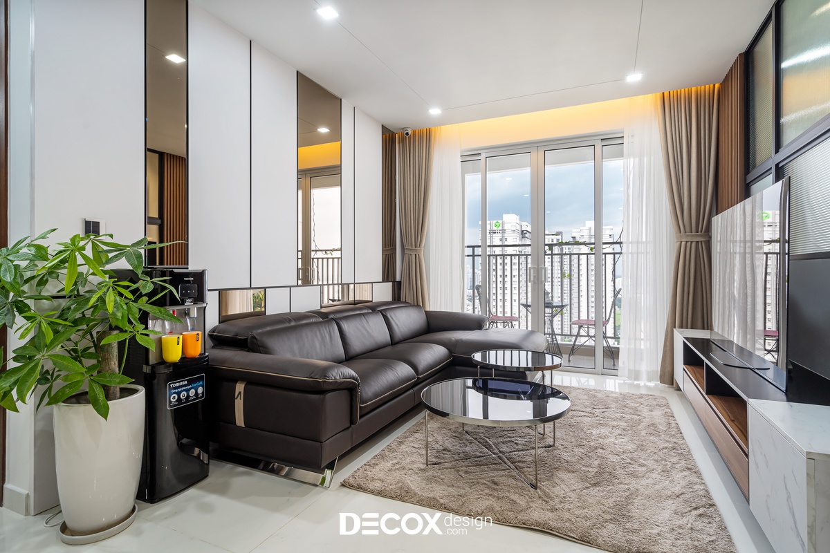 Sự sáng tạo tuyệt vời trong mẫu thiết kế nội thất chung cư Sunrise Cityview theo phong cách hiện đại đã được ứng dụng trên thực tế. Lấy ý tưởng từ gam trắng chủ đạo giúp những chi tiết nội thất trong nhà từ bộ sofa da mượt mà, bộ bàn ăn mặt đá đen, các cánh cửa gỗ tự nhiên đều trở thành điểm nhấn nổi bật. Bên cạnh đó, các KTS của Decox Design còn vận dụng sắc trắng này làm nền khiến cho căn nhà tự mình phô bày được từng đường nét tinh tế và sang trọng, bắt lấy ánh nhìn của người khác trong từng chi tiết dù là nhỏ nhất.