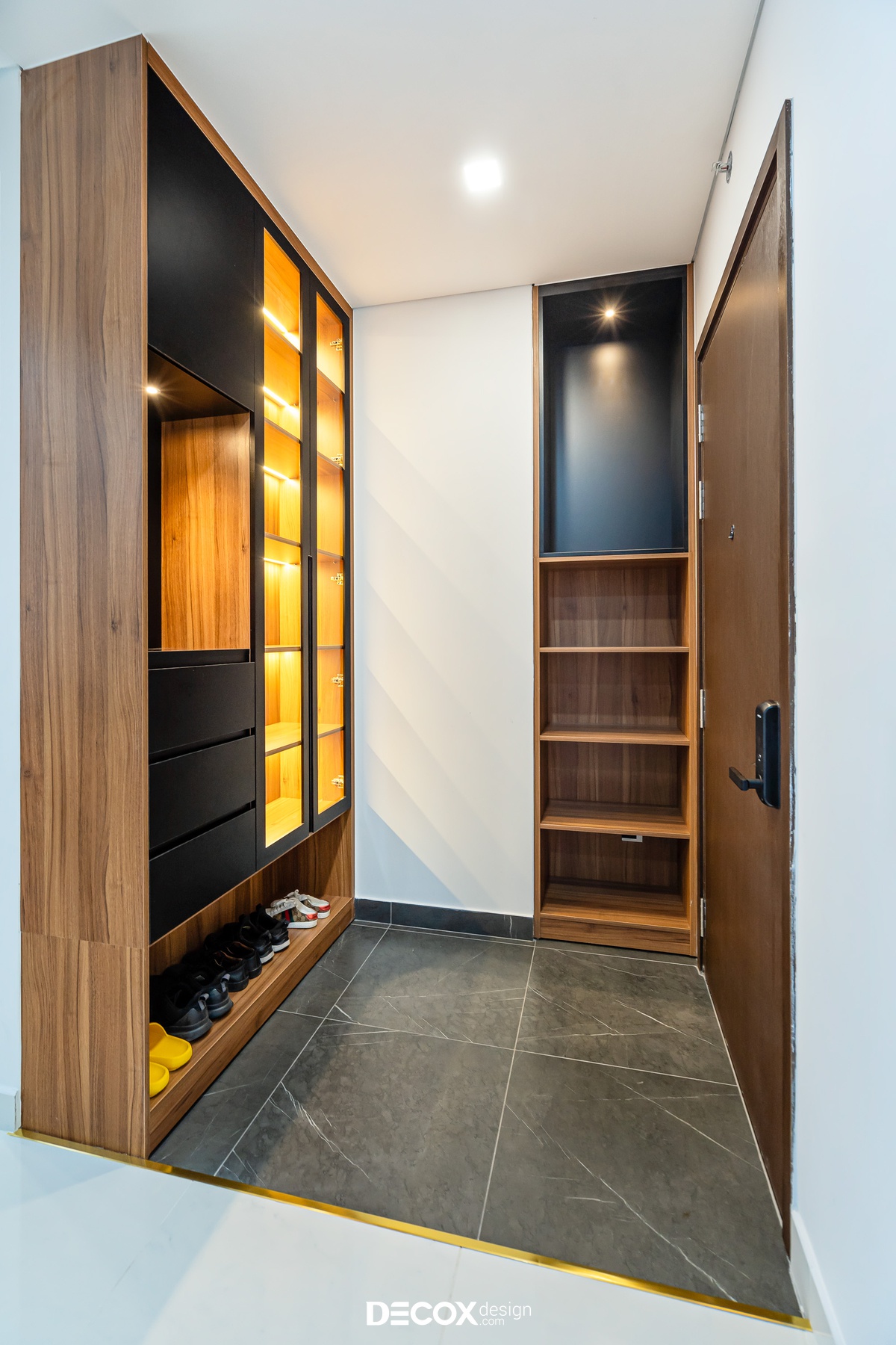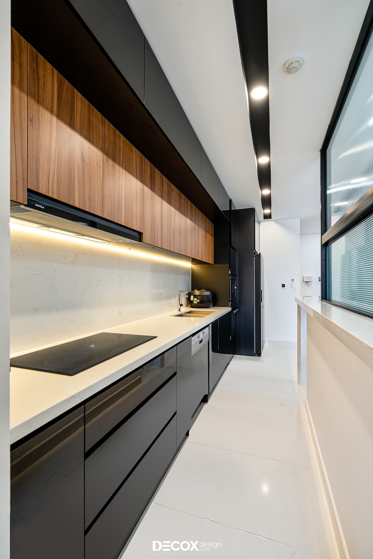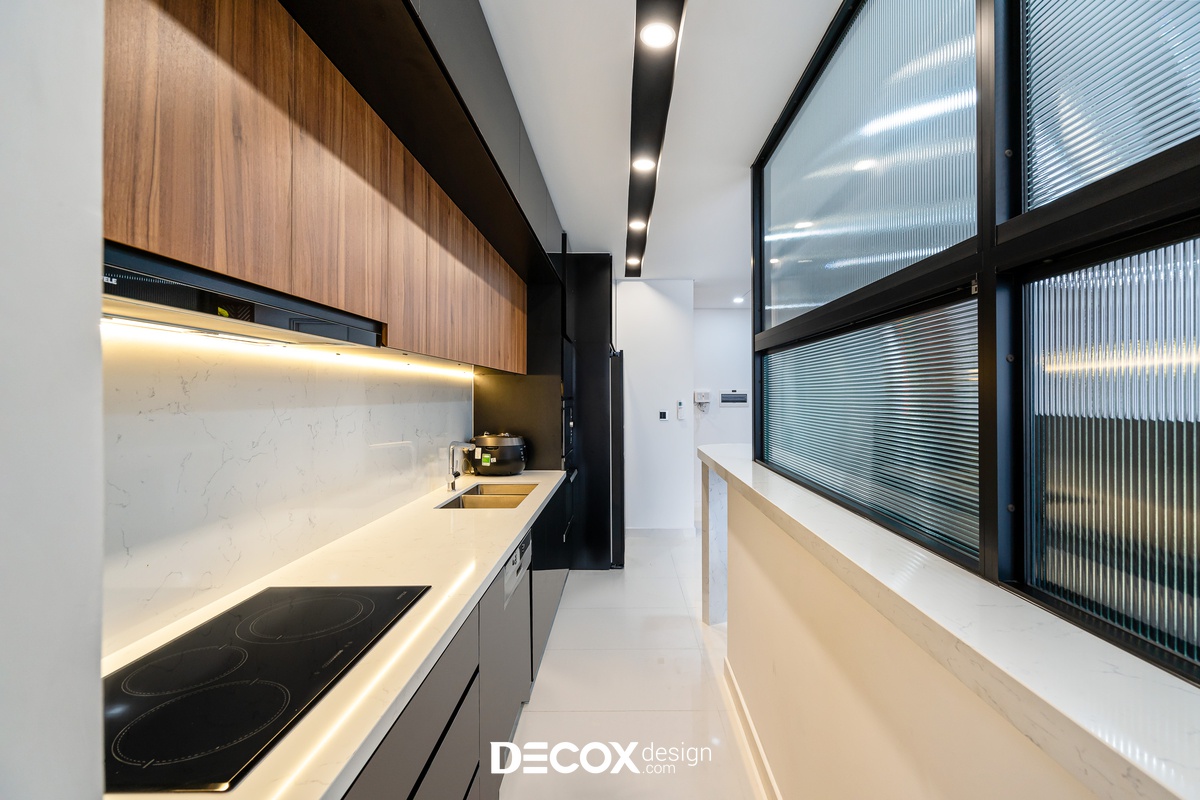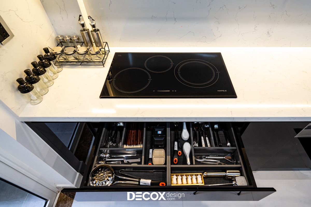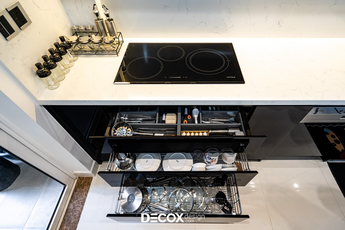 Sự sáng tạo tuyệt vời trong mẫu thiết kế nội thất chung cư Sunrise Cityview theo phong cách hiện đại đã được ứng dụng trên thực tế. Lấy ý tưởng từ gam trắng chủ đạo giúp những chi tiết nội thất trong nhà từ bộ sofa da mượt mà, bộ bàn ăn mặt đá đen, các cánh cửa gỗ tự nhiên đều trở thành điểm nhấn nổi bật. Bên cạnh đó, các KTS của Decox Design còn vận dụng sắc trắng này làm nền khiến cho căn nhà tự mình phô bày được từng đường nét tinh tế và sang trọng, bắt lấy ánh nhìn của người khác trong từng chi tiết dù là nhỏ nhất.
