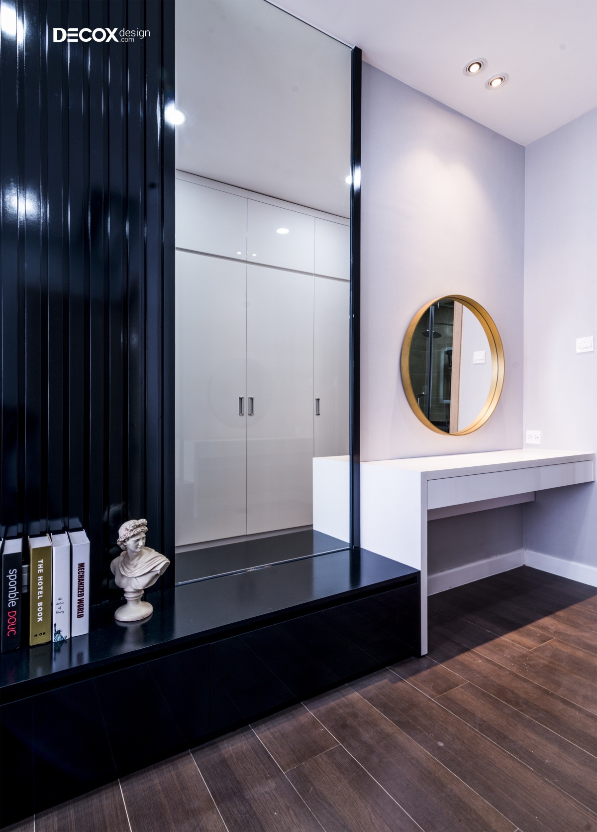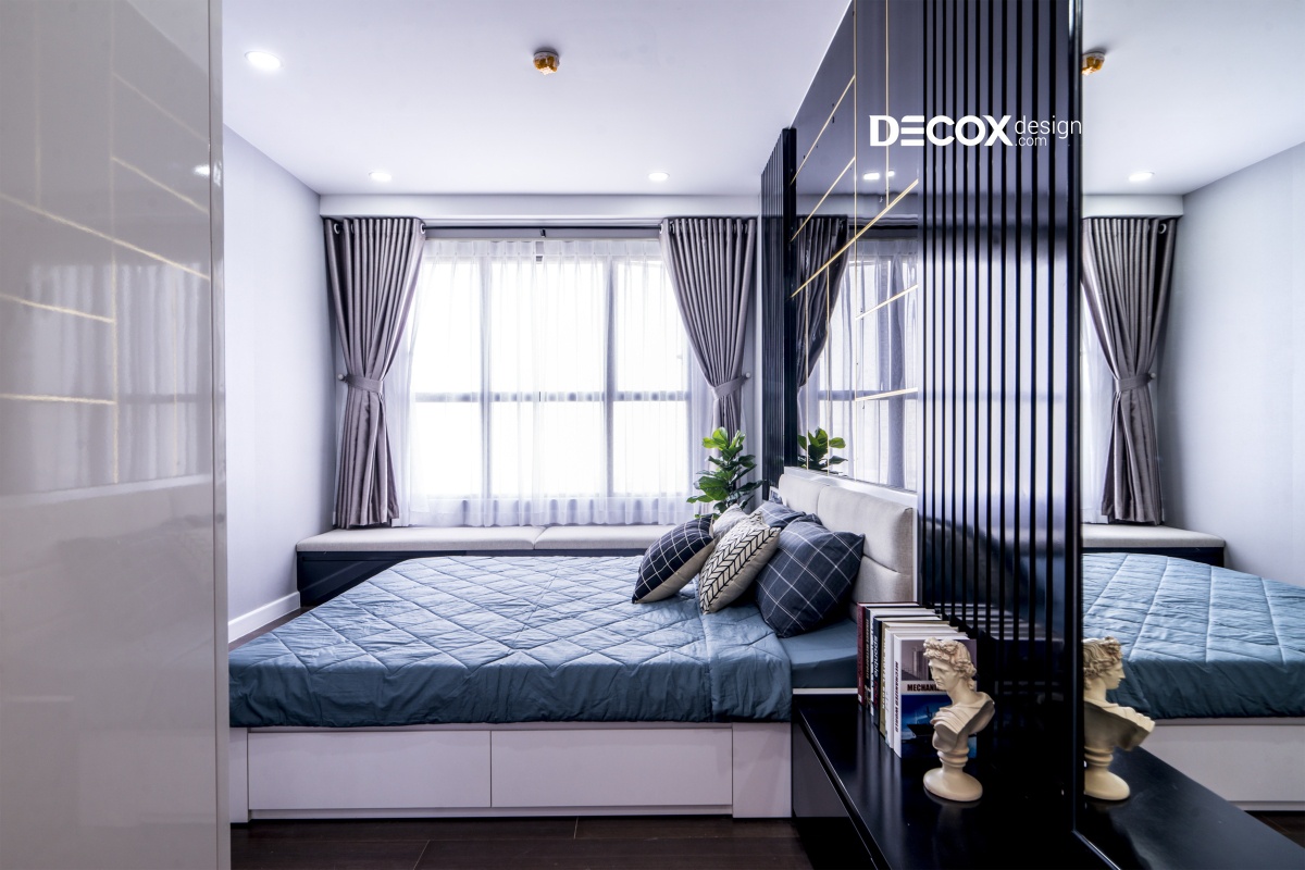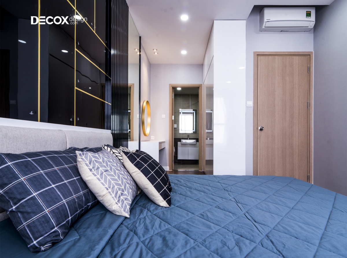 Phong cách thiết kế nội thất chung cư hiện đại luôn được lòng nhiều gia chủ và lần này cũng không ngoại lệ. Với căn hộ 75m² của mình, sau khi được designer tại Decox Design tư vấn đã quyết định chọn phong cách Hiện đại cho nhà mình. Tuy nhiên, do không thường sinh sống ở Việt Nam, chủ nhà không tập trung quá nhiều vào trang trí cho phòng khách và bếp mà chú trọng hơn vào phòng ngủ. Trong phòng ngủ sử dụng các màu sắc và chi tiết trang trí sao cho chất sang trọng được nêu bật lên nhiều nhất có thể.