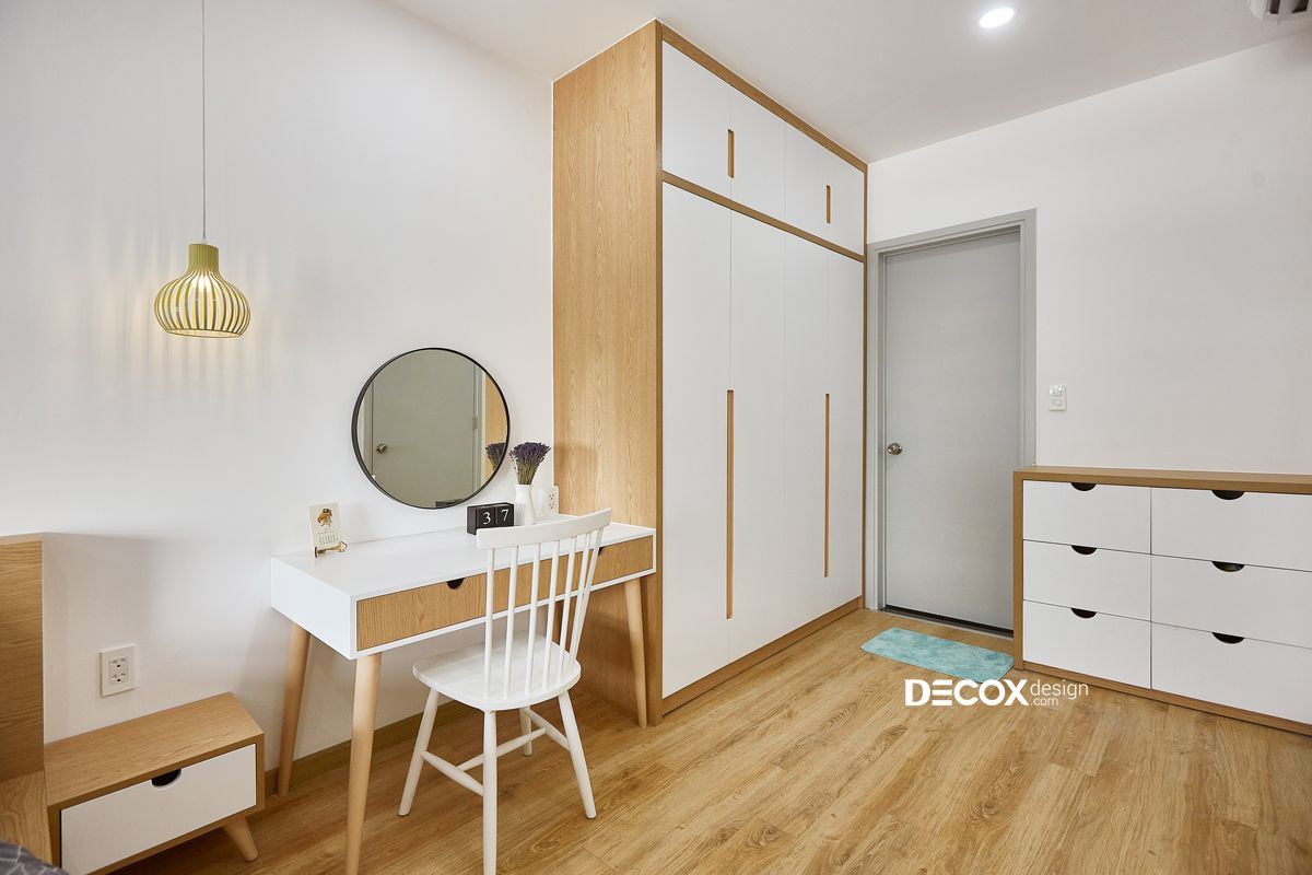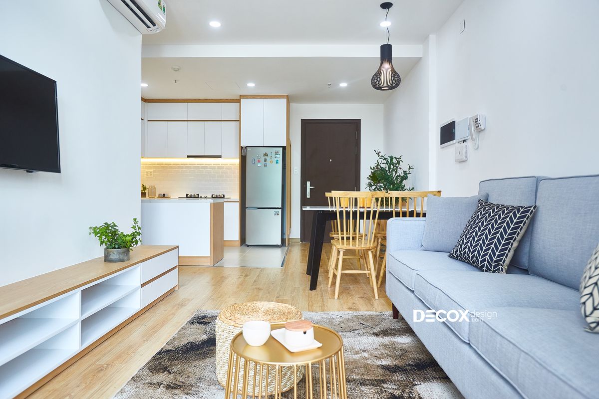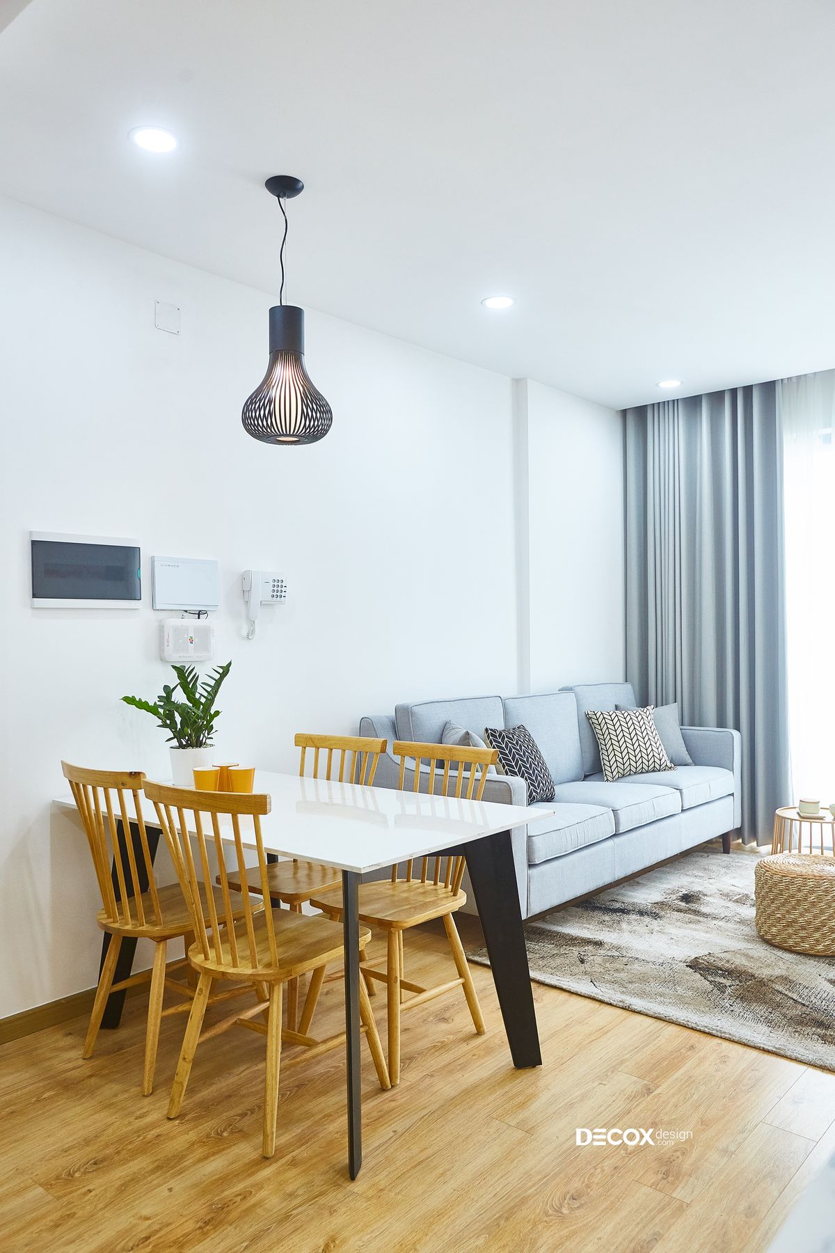 Cách thiết kế nội thất chung cư của dự án này được Decox Design thực hiện theo phong cách Scandinavian. Đây phong cách được thể hiện theo phong cách của chị và được thể hiện được nét cá tính, lôi cuốn và mang phong cách của Bắc Âu theo lối sang trọng và công năng đầy đủ. Căn hộ sử dụng trắng tinh khôi và màu gỗ đã tạo nên được nét độc đáo cho căn hộ.