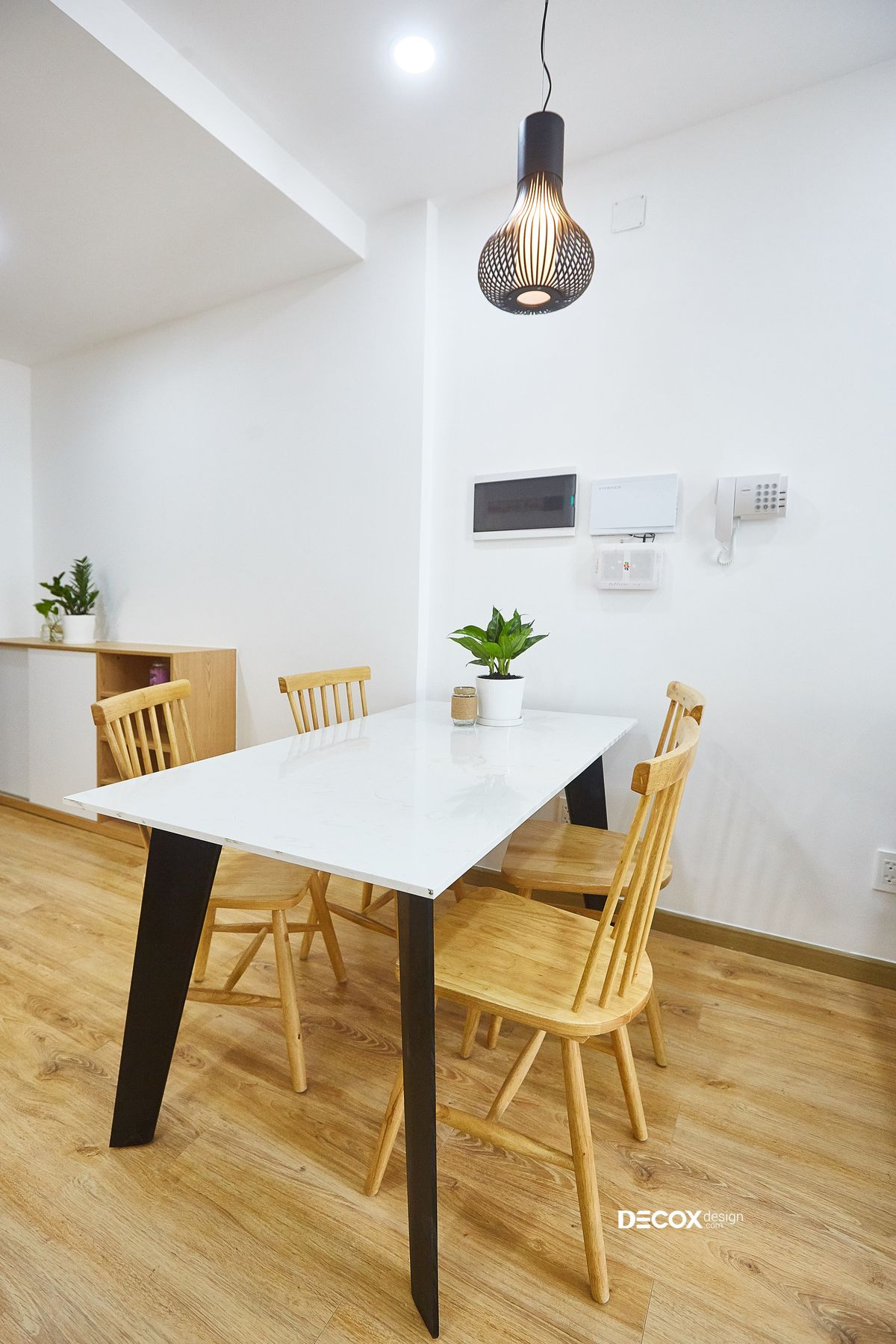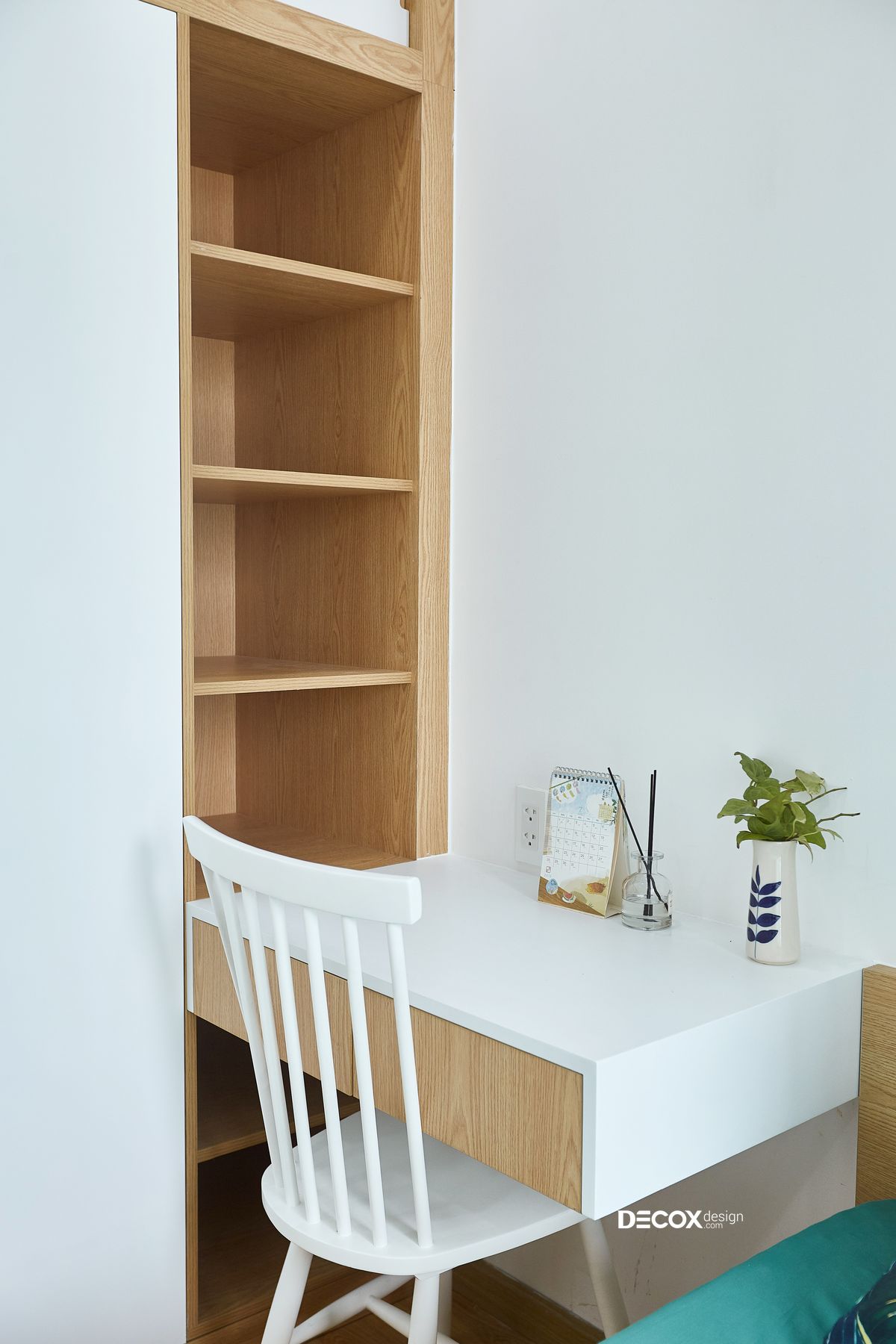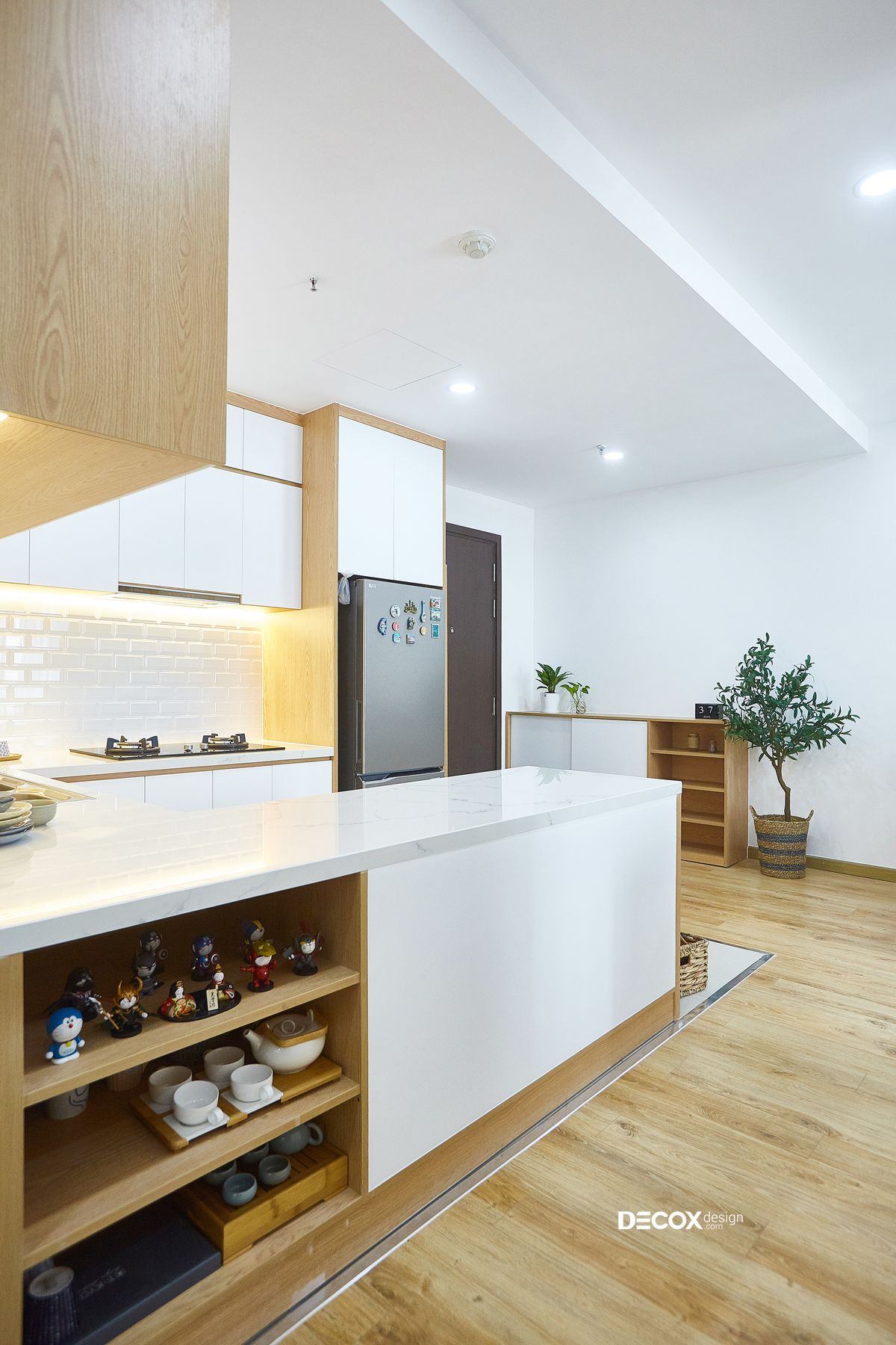 Cách thiết kế nội thất chung cư của dự án này được Decox Design thực hiện theo phong cách Scandinavian. Đây phong cách được thể hiện theo phong cách của chị và được thể hiện được nét cá tính, lôi cuốn và mang phong cách của Bắc Âu theo lối sang trọng và công năng đầy đủ. Căn hộ sử dụng trắng tinh khôi và màu gỗ đã tạo nên được nét độc đáo cho căn hộ.
