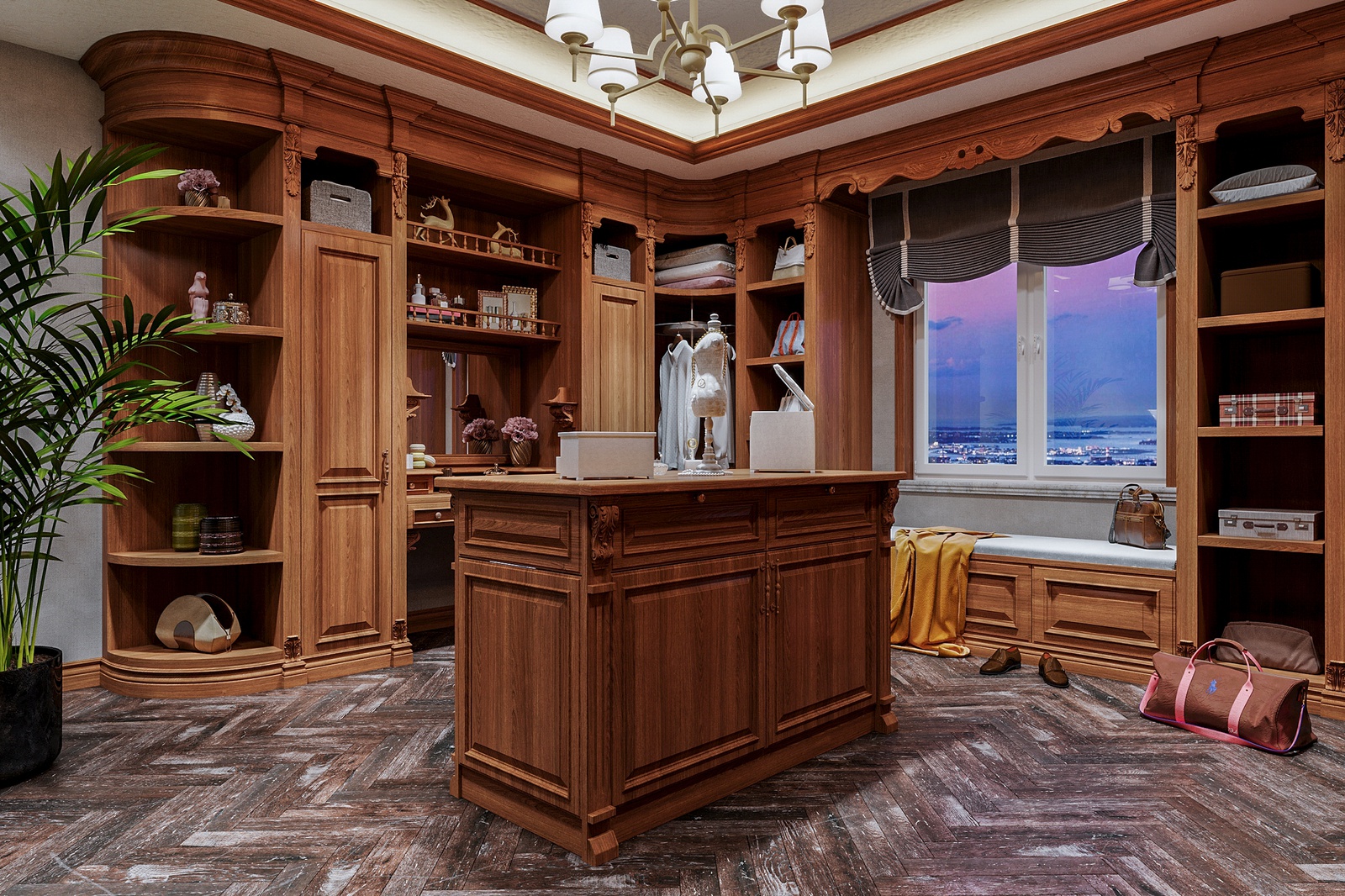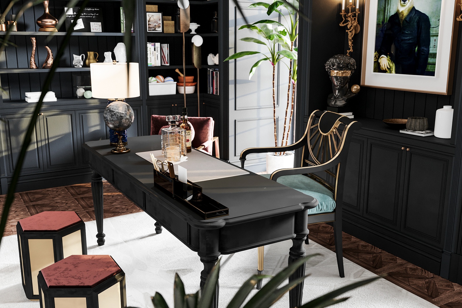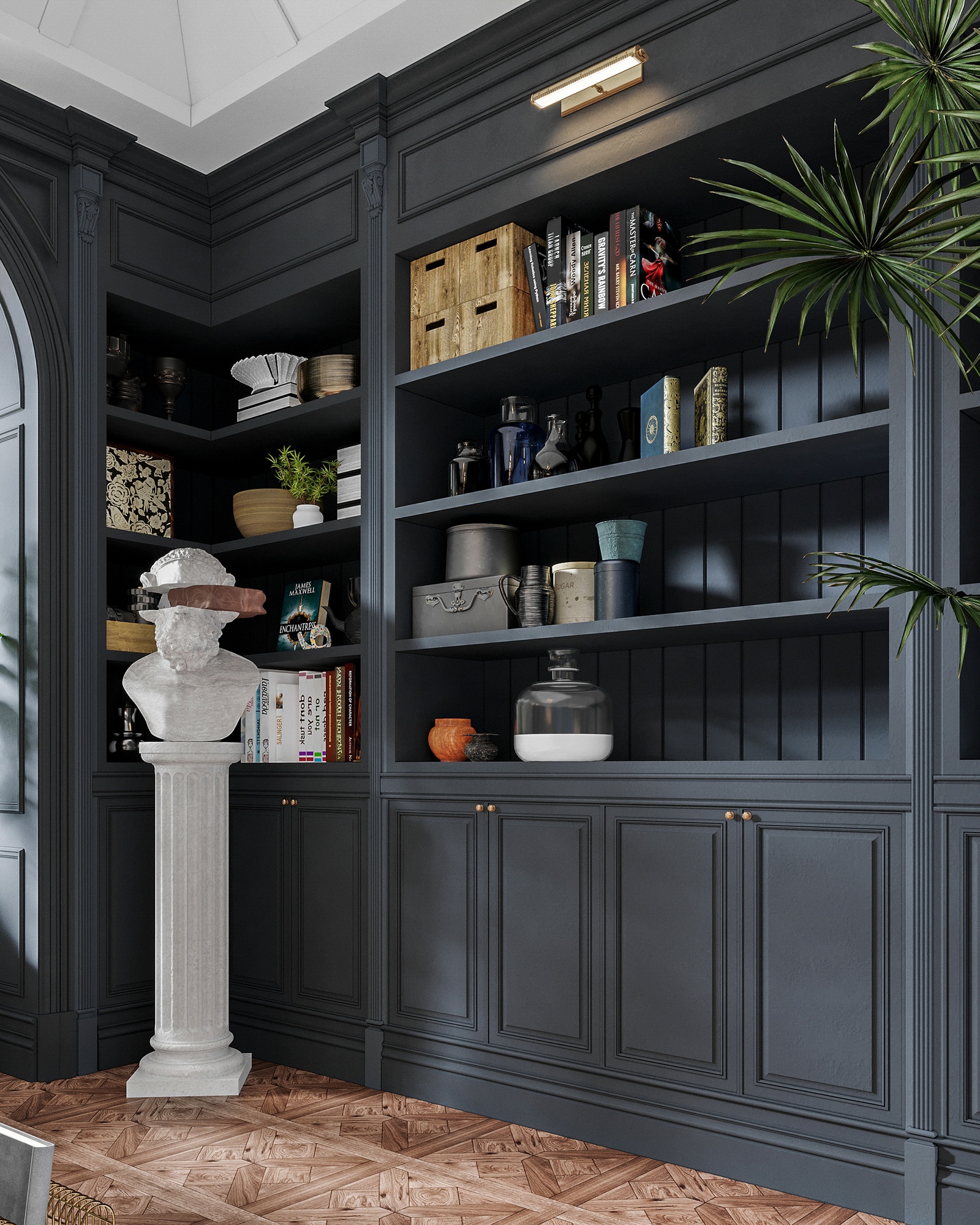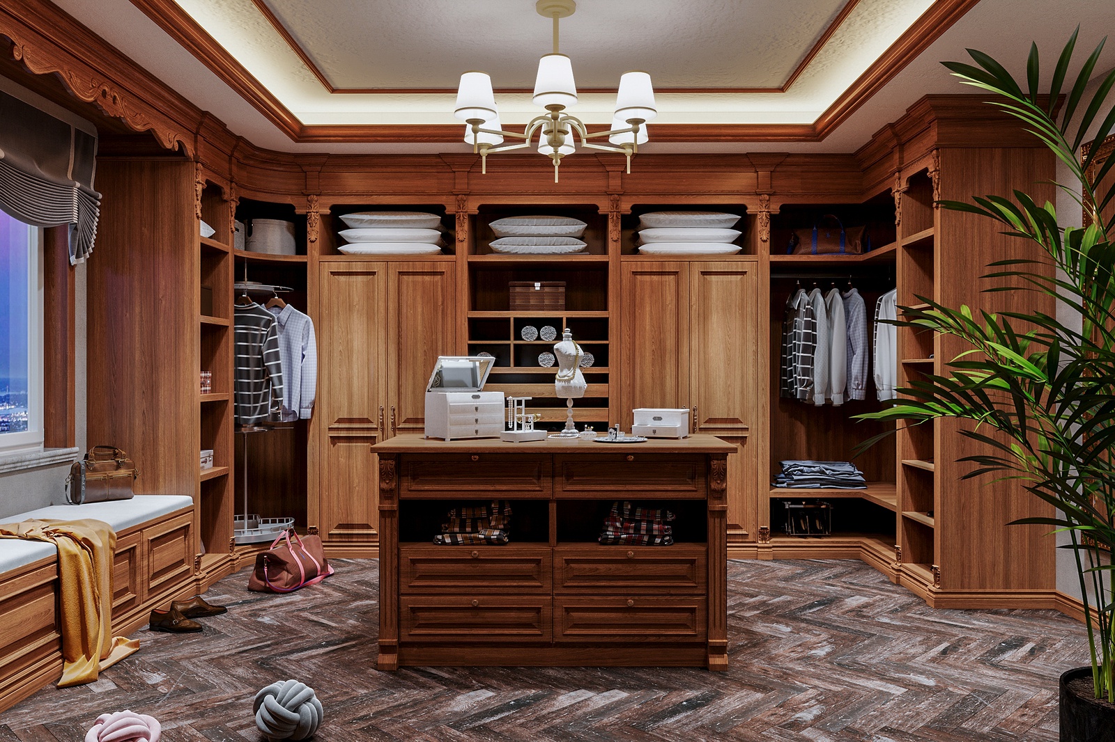Chất liệu sử dụng cũng là một điểm nhấn đáng chú ý trong concept thiết kế nội thất này. Bỏ qua những chất liệu đắt đỏ đã quá đỗi quen thuộc trong những không gian tân cổ điển Châu Âu như chi tiết mạ vàng, pha lê, da, bọc nhung, công trình còn chủ động sử dụng gỗ tự nhiên - một chất liệu cao cấp đặc trưng của tinh thần tân cổ điển Đông phương.