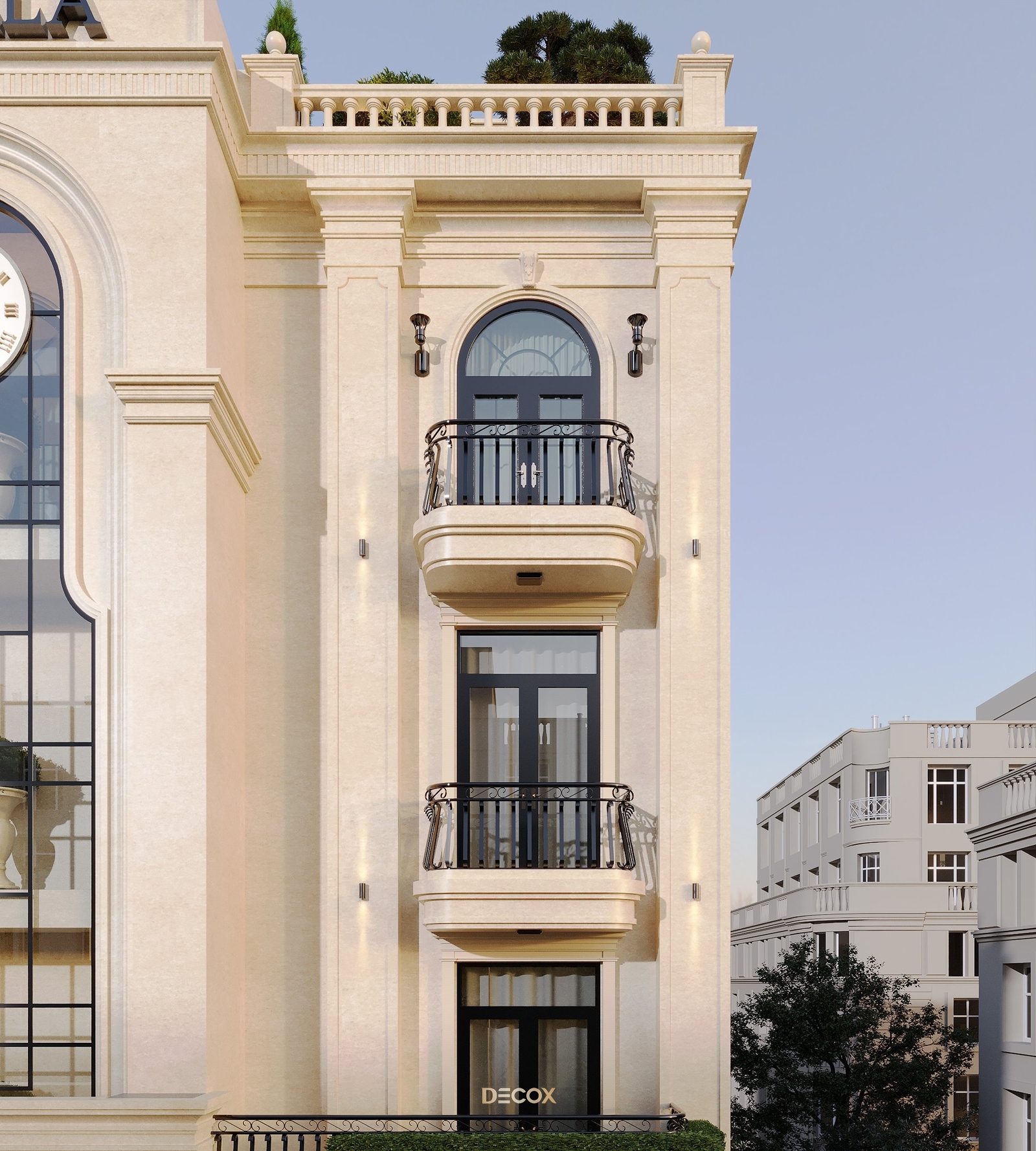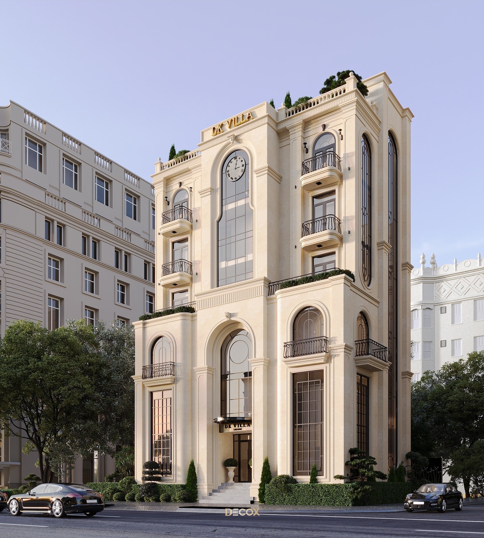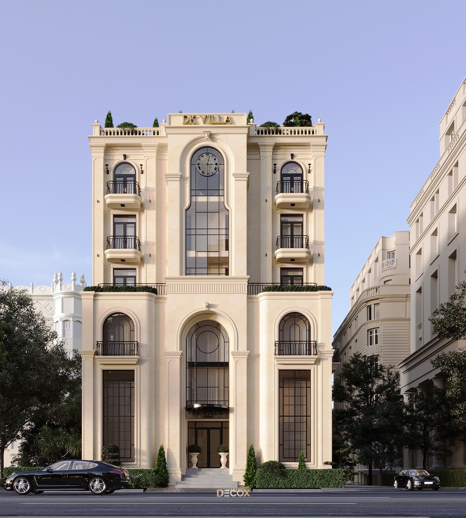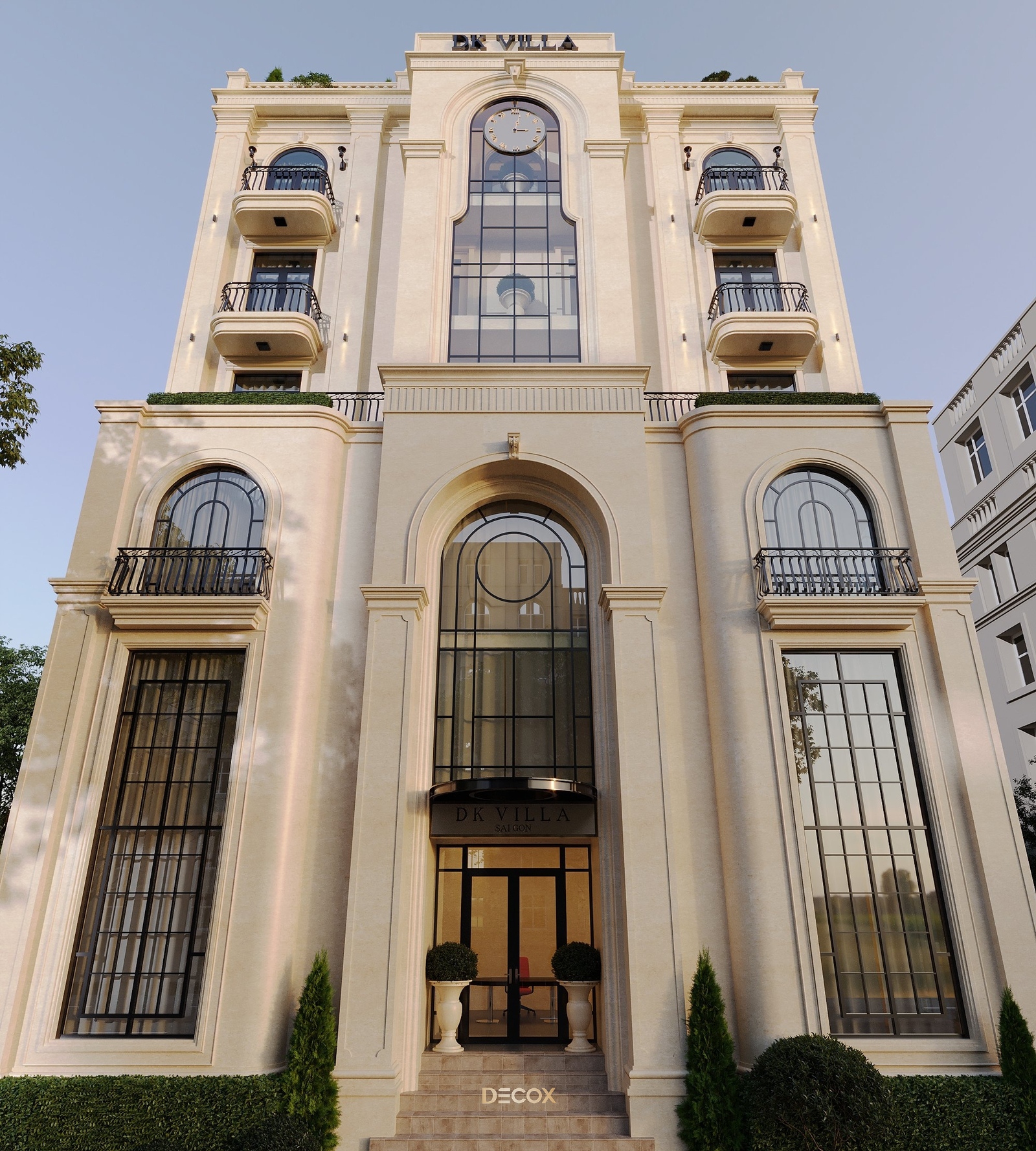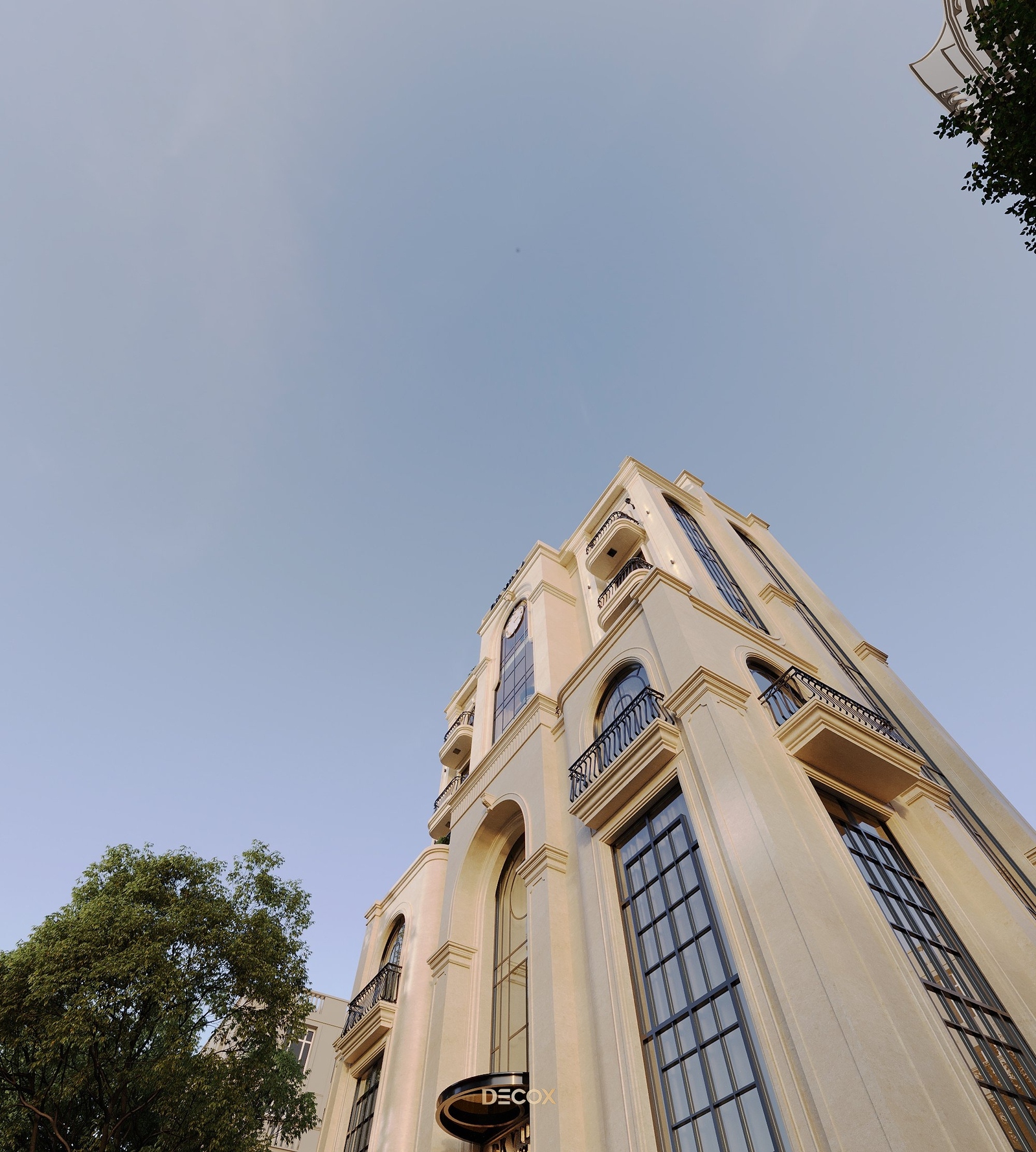 Với đề bài một tòa nhà phức hợp vừa làm văn phòng đại diện thương hiệu, vừa làm nhà ở theo phong cách Indochine chủ đạo. Decox đã mang đến một công trình giao thoa giữa yếu tố văn hóa và truyền thống, xen lẫn tinh thần đương đại lấy Indochine và Hiện đại làm ngôn ngữ thiết kế. Điểm nhấn đặc biệt của dự án nằm ở chi tiết chiếc đồng hồ nằm phía trên trung tâm tòa nhà. Đây như một lời khẳng định cho sự trường tồn theo thời gian, không chỉ là của phong cách mà còn là giá trị của một ngôi nhà đẹp.