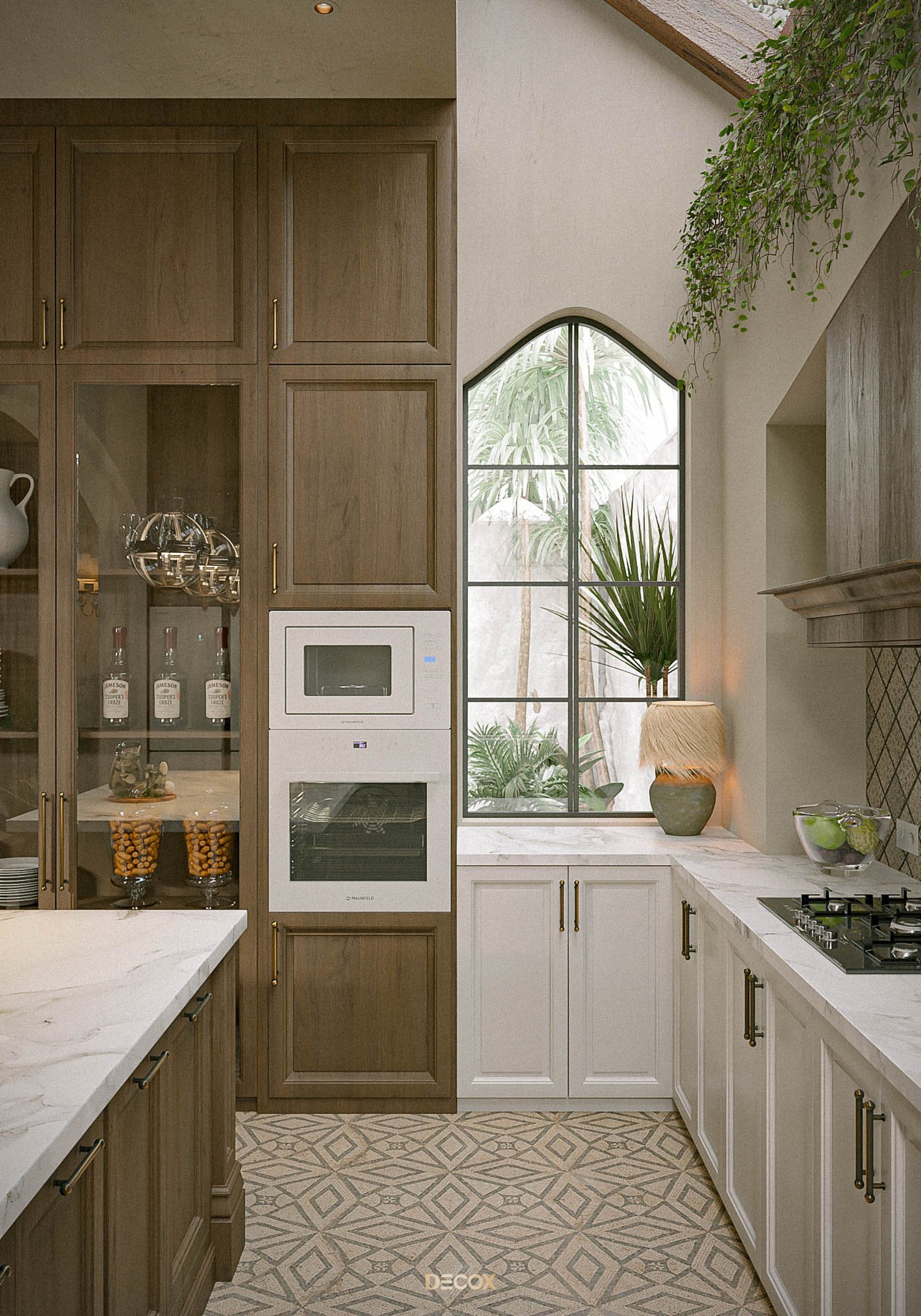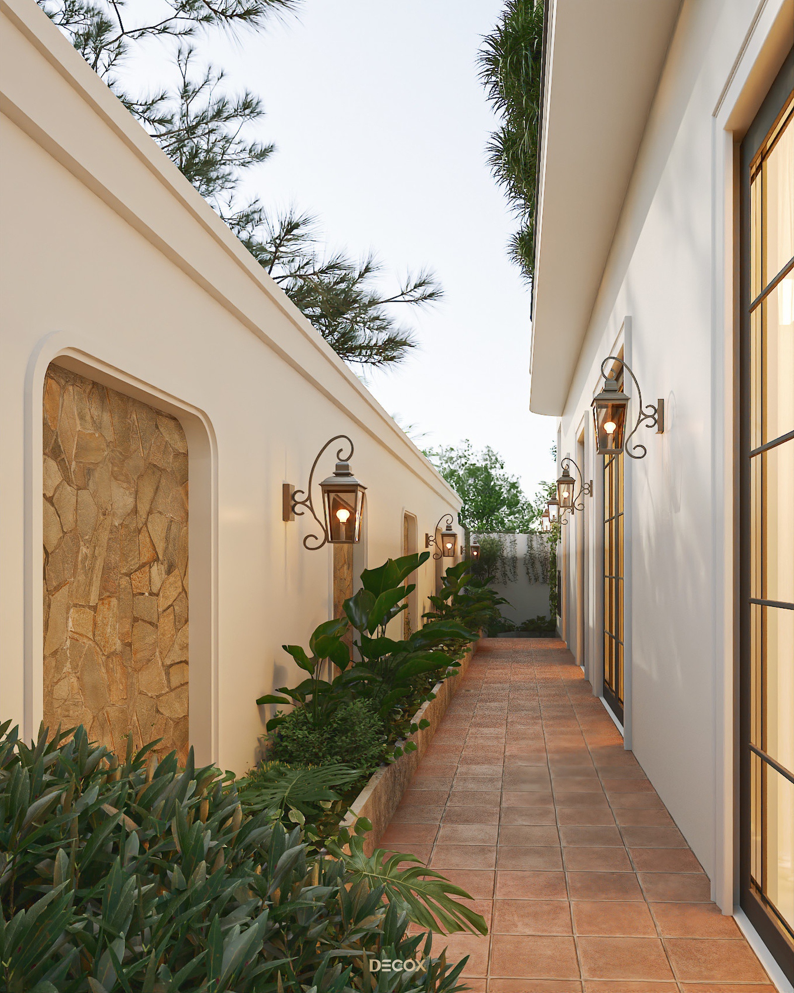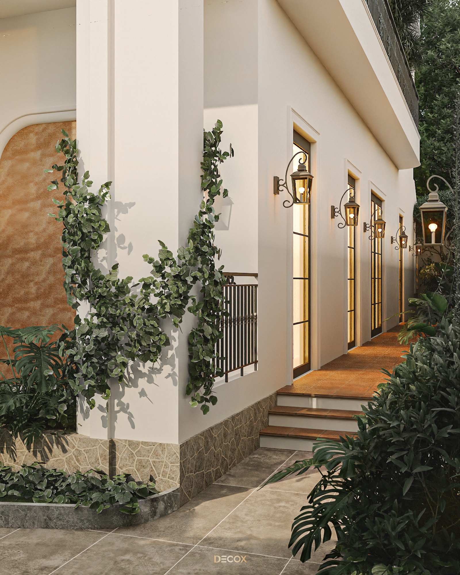 Tổng thể không gian là bản hòa ca của những tone màu ấm, của chất gỗ mộc mạc, của những khung cửa vòm mềm mại cùng nội thất kiểu dáng Châu Âu cổ điển, sang trọng mà tinh tế… Và không thể thiếu cây xanh - mảnh ghép cuối cùng để làm nên một không gian sống tuyệt vời và trọn vẹn.​