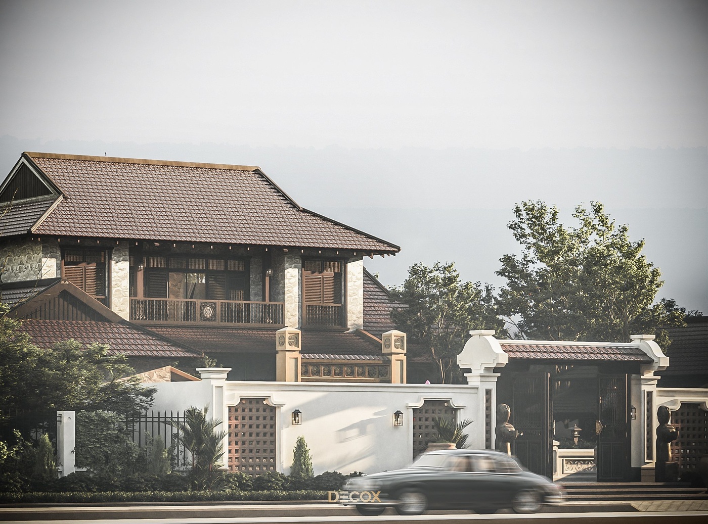 Thiết kế nội thất biệt thự là sự phô diễn khéo léo những chi tiết, đặc trưng của những ngôi nhà truyền thống xưa như chất liệu gốm, gạch bông, gỗ hay cửa lá sách, mái ngói dân dã, bình dị và đã khắc sâu vào trong tiềm thức. Không đơn thuần là một thiết kế, hơn hết LANG là sự tôn trọng và duy trì giá trị văn hóa dân tộc, là tâm huyết của KTS Decox với mong muốn tạo nên không gian sống gắn kết với bản sắc dân tộc.