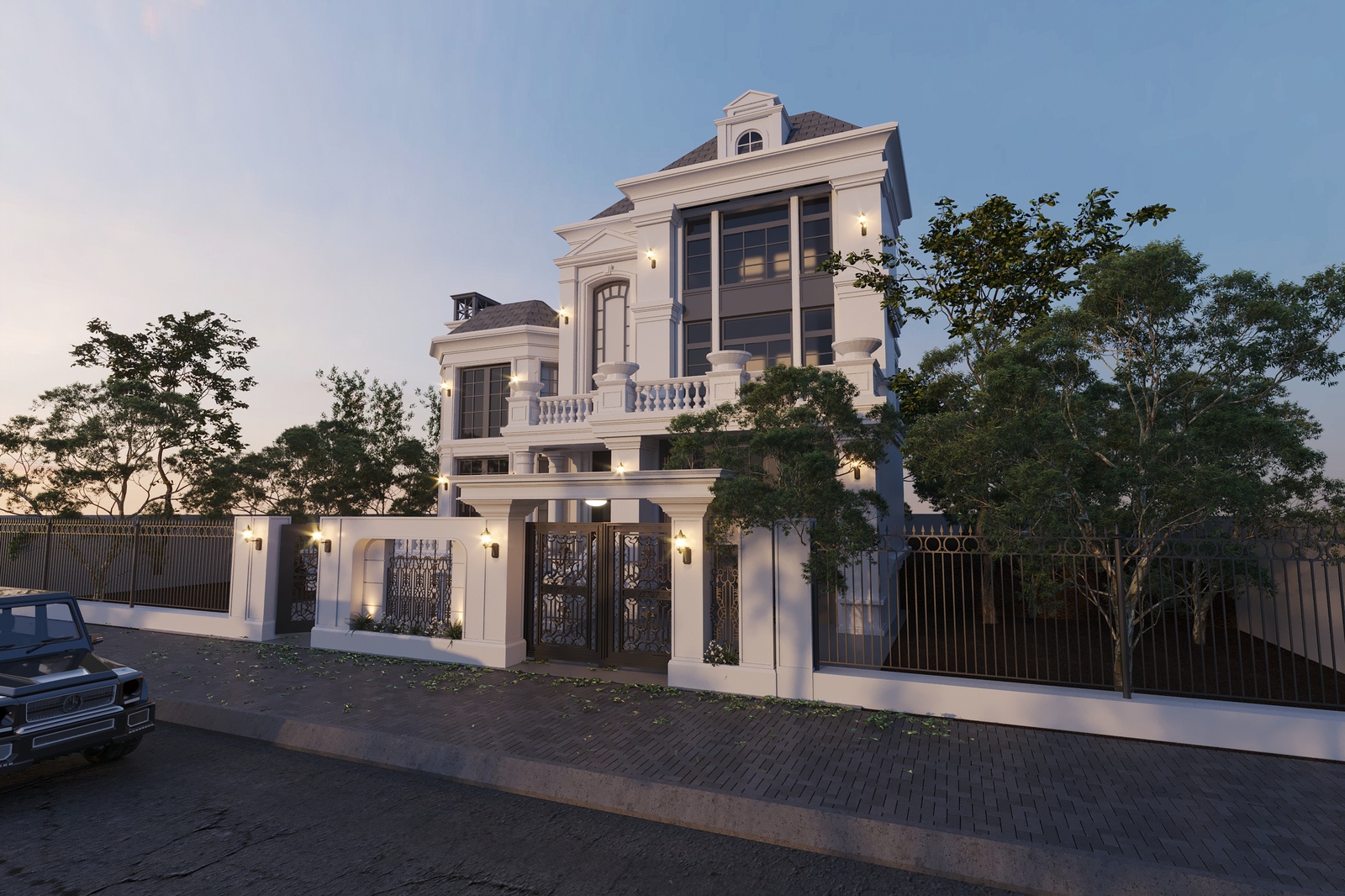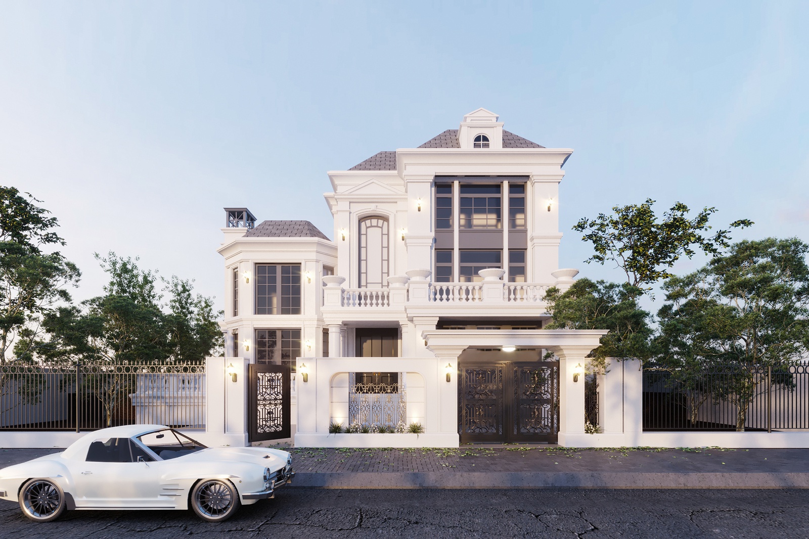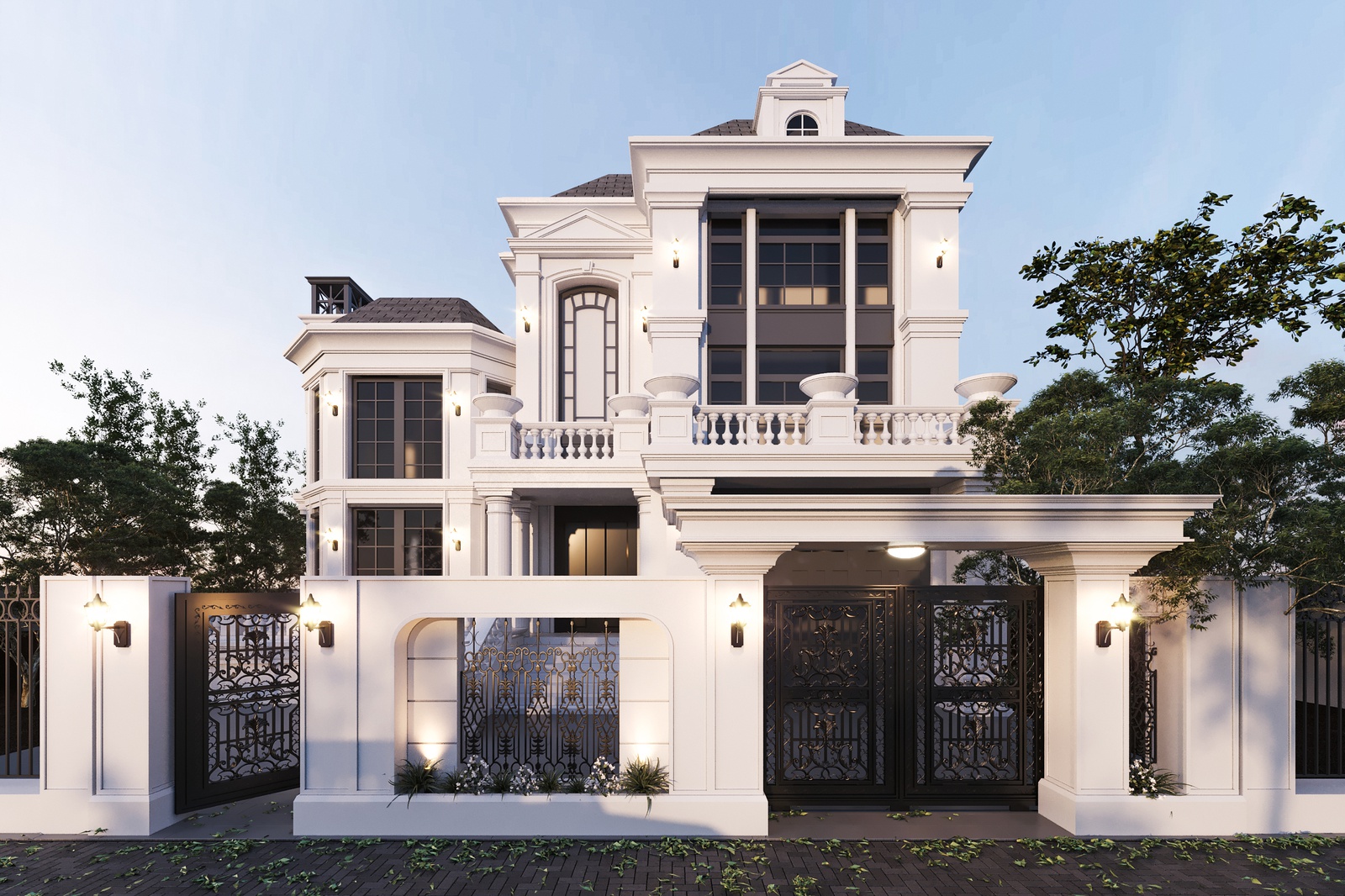 Thiết kế biệt thự bán cổ điển đã không còn xa lạ với những ai yêu thích nét đẹp nhẹ nhàng, tinh tế nhưng cũng không kém phần sang trọng và cổ kính. Khác với phong cách tân cổ điển, bán cổ điển không quá yêu cầu khắt khe vào bố cục hình khối đối xứng cân bằng, đây cũng là lợi thế giúp những căn biệt thự bán cổ điển tạo được sự phá cách mới lạ. Và mẫu thiết kế biệt thự bán cổ điển mà Decox Design giới thiệu sau đây cũng là một căn nhà điển hình như thế. Thiết kế biệt thự 2 tầng với hệ mái ngói tone nâu nền nã nổi bật trên nền tường trắng chủ đạo tạo nên một tổng thể hút mắt, quyến rũ. Bên cạnh đó, những chi tiết như ống khói đậm chất châu Âu, thức cột, lan can và họa tiết khung cửa đã góp phần khắc họa rõ nét những đặc trưng của phong cách neoclassical.
