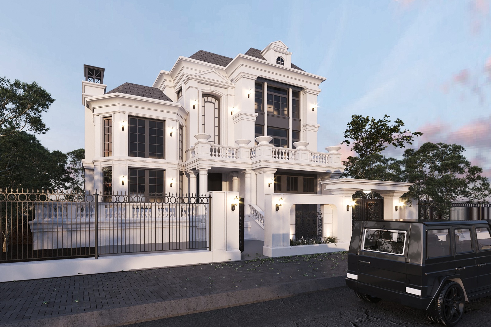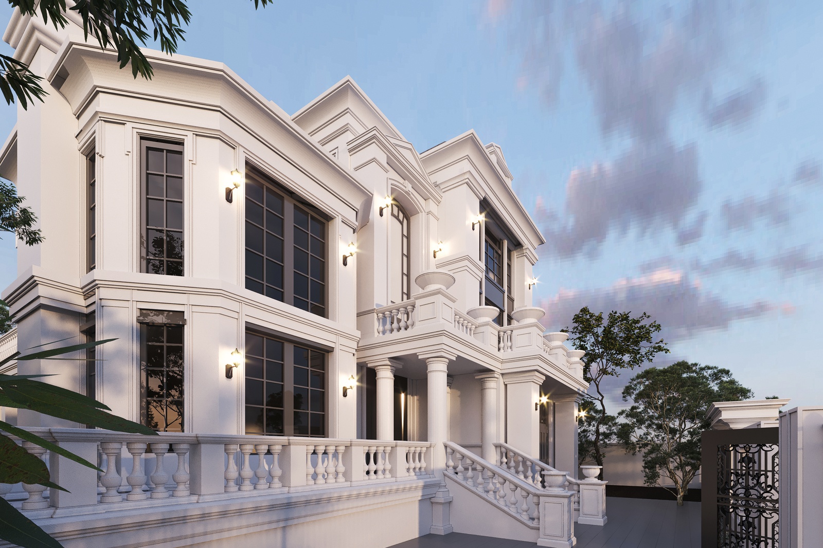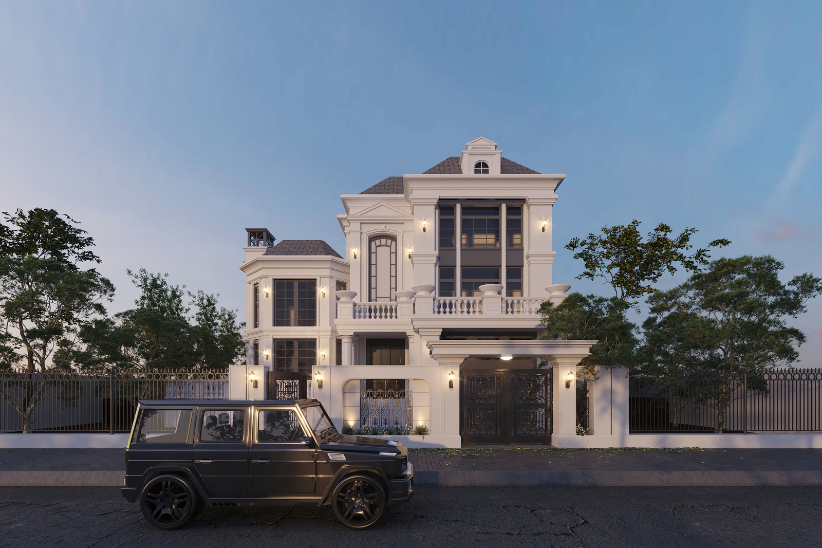 Thiết kế biệt thự bán cổ điển đã không còn xa lạ với những ai yêu thích nét đẹp nhẹ nhàng, tinh tế nhưng cũng không kém phần sang trọng và cổ kính. Khác với phong cách tân cổ điển, bán cổ điển không quá yêu cầu khắt khe vào bố cục hình khối đối xứng cân bằng, đây cũng là lợi thế giúp những căn biệt thự bán cổ điển tạo được sự phá cách mới lạ. Và mẫu thiết kế biệt thự bán cổ điển mà Decox Design giới thiệu sau đây cũng là một căn nhà điển hình như thế. Thiết kế biệt thự 2 tầng với hệ mái ngói tone nâu nền nã nổi bật trên nền tường trắng chủ đạo tạo nên một tổng thể hút mắt, quyến rũ. Bên cạnh đó, những chi tiết như ống khói đậm chất châu Âu, thức cột, lan can và họa tiết khung cửa đã góp phần khắc họa rõ nét những đặc trưng của phong cách neoclassical.
