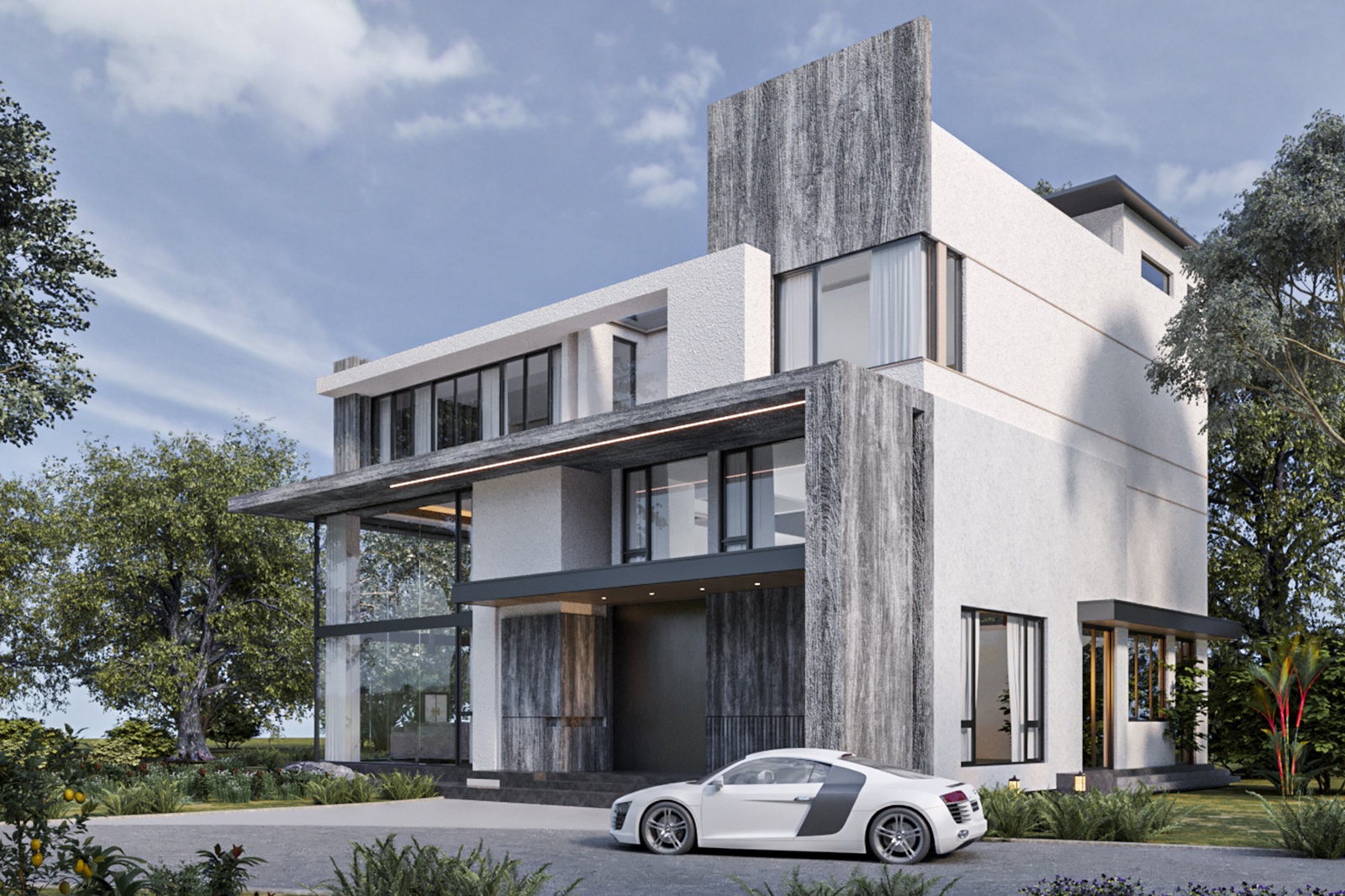 Dự án biệt thự diện tích 165m2 mà Decox Design muốn giới thiệu đến bạn trong bài viết hôm nay sở hữu cấu trúc 3 tầng lấy tone màu trung tính chủ đạo. Về tổng thể, kiến trúc của Sardin tựa như những khối container được xếp chồng lên nhau. Ý tưởng này một mặt khơi gợi sự mới lạ, mặt khác lại góp phần bộc lộ cá tính của phong cách Hiện đại thông qua các khối vuông khiến cho ngoại thất ngôi nhà trông thật gọn gàng và vững chãi.