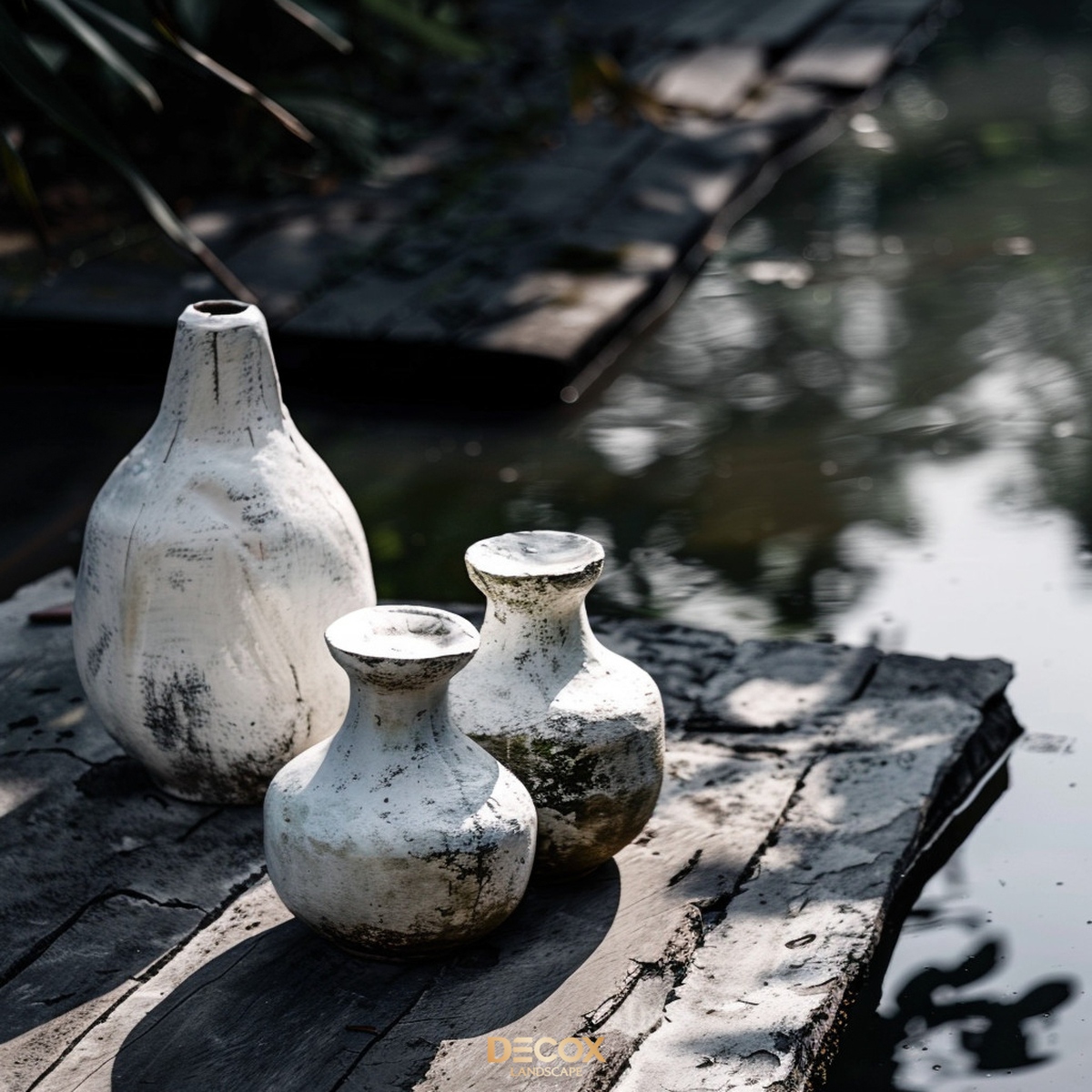 Decox mời bạn cùng chiêm ngưỡng không gian sân vườn giàu chiều sâu theo triết lý Wabi Sabi - vẻ đẹp của sự tự nhiên, đơn giản và những điều không hoàn hảo mang đến cảm giác thanh tịnh và bình yên mỗi khi ngắm nhìn. Những món đồ đã nhuốm vết tích thời gian và sự tôn trọng với tự nhiên chính là chìa khóa để tạo nên một không gian sân vườn sâu lắng và nhiều cảm xúc như thế này. Tác phẩm được chúng tôi thực hiện thông qua công cụ Mid Journey.