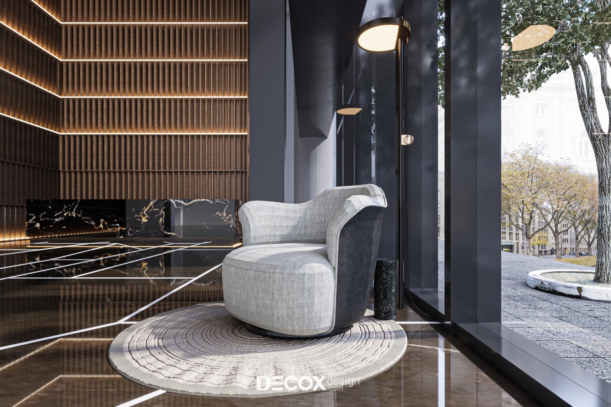 Thiết kế nội thất khách sạn theo phong cách hiện đại, sang trọng với những chất liệu cao cấp nhất nhằm đem đến chất lượng dịch vụ và tiện nghi tương xứng điều khách hàng kỳ vọng. Tuy phối trộn khá nhiều chất liệu "luxury" thế nhưng không gian không khiến người nhìn cảm thấy ngột ngạt, ngược lại còn tạo cảm giác ấm cúng nhờ sự kết hợp đan xen thêm những chất liệu khác như gỗ, kính và đèn.