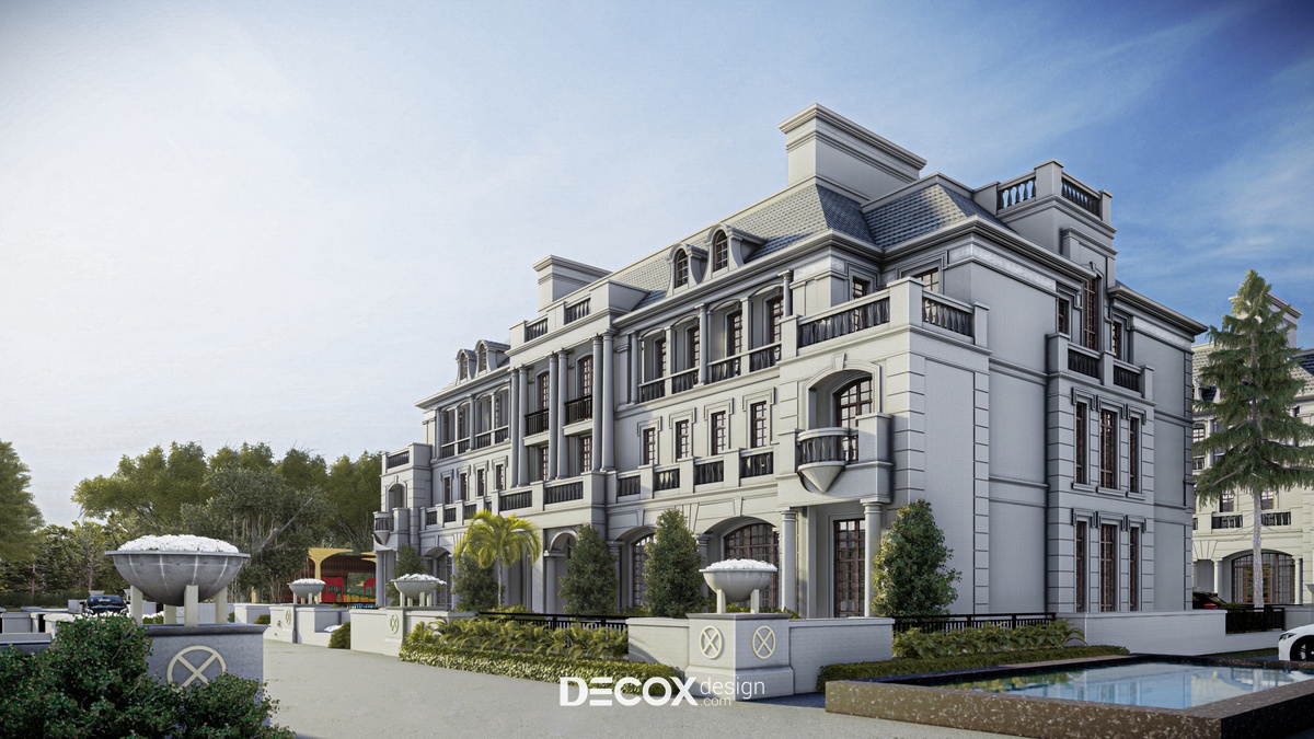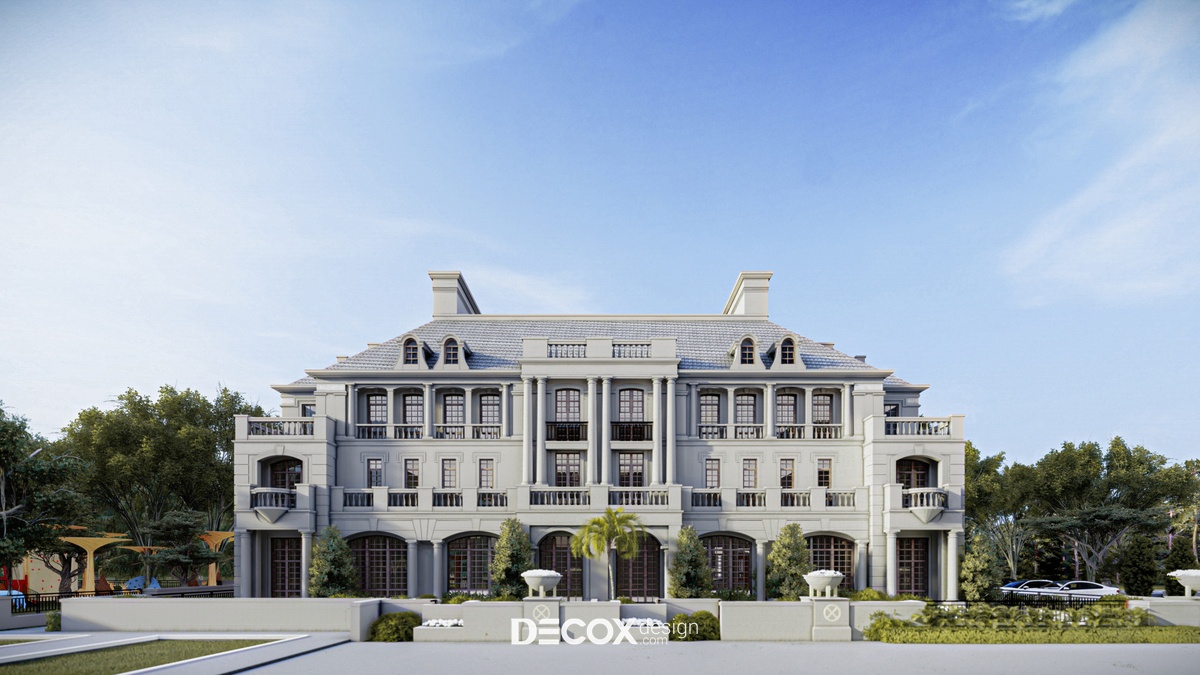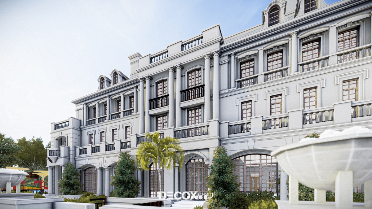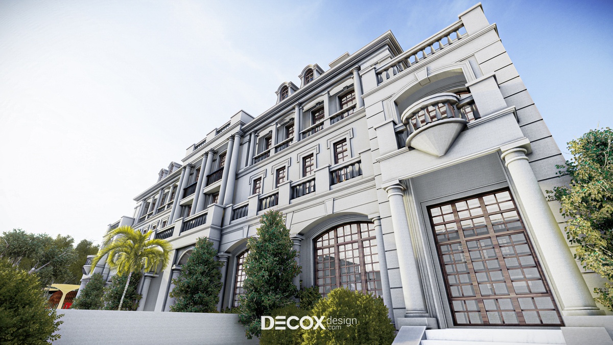 Dự án khách sạn mà Decox Design muốn giới thiệu đến bạn lần này sở hữu vẻ đẹp cổ kính đặc trưng của nền kiến trúc phương Tây. Ở đây KTS đã lược bỏ khá nhiều chi tiết trang trí cầu kỳ, rườm rà nhằm mang đến một tổng thể tinh tế, hợp xu hướng thời đại cũng như thị hiếu người dùng. Ngoài tone màu trung tính thanh lịch đóng vai trò chủ đạo, chúng tôi còn kết hợp thêm những yếu tố như thiết kế theo tính đối xứng cân bằng, mái ngói, ống khói, thức cột, vòm cửa hay lan can đậm chất tân cổ điển - đơn giản mà hoa lệ. Với kiến trúc chỉ vỏn vẹn 1 trệt 2 lầu, thoạt nhìn khách sạn chỉ như một căn nhà biệt thự rộng lớn, cách thiết kế này nhằm mục đích mang đến sự gần gũi cho các vị khách hàng để họ có thể cảm thấy thoải mái, thư giãn như đang sống trong chính ngôi nhà của mình.