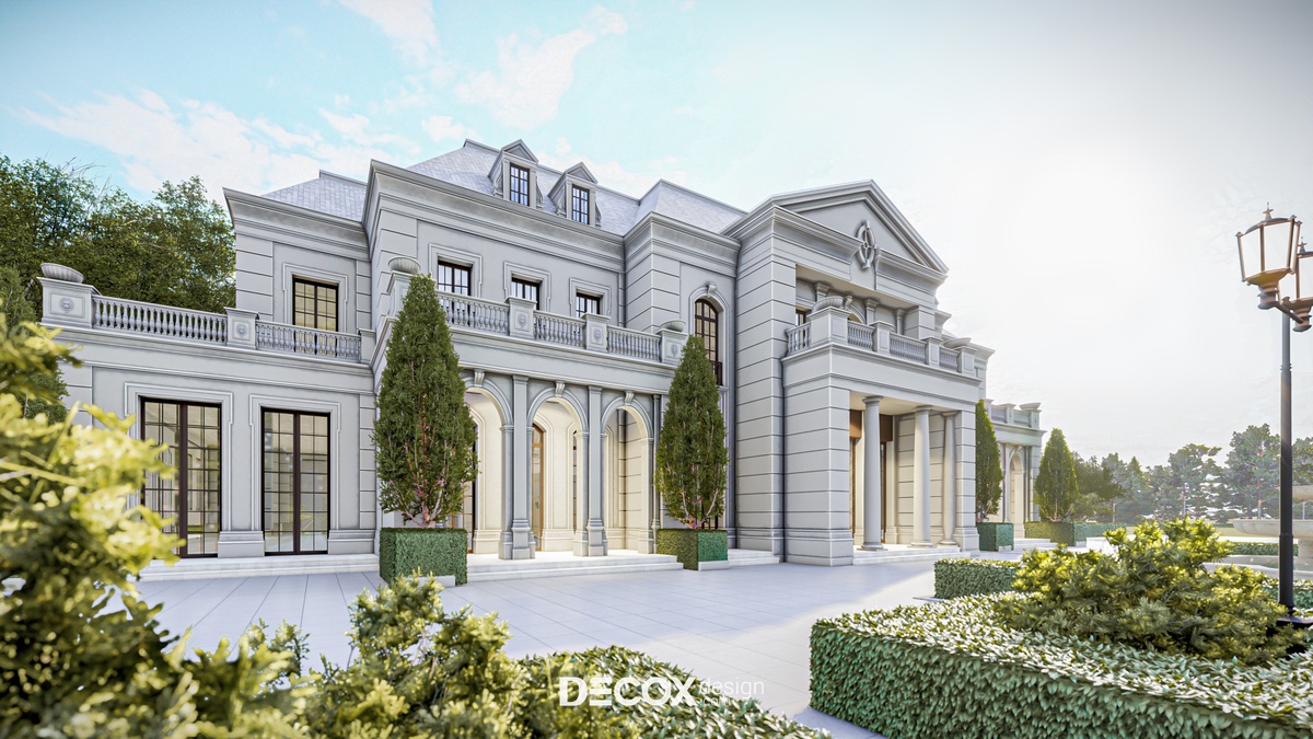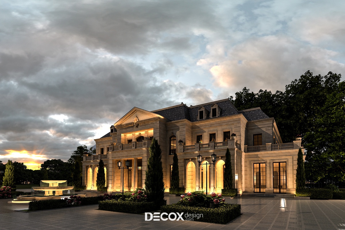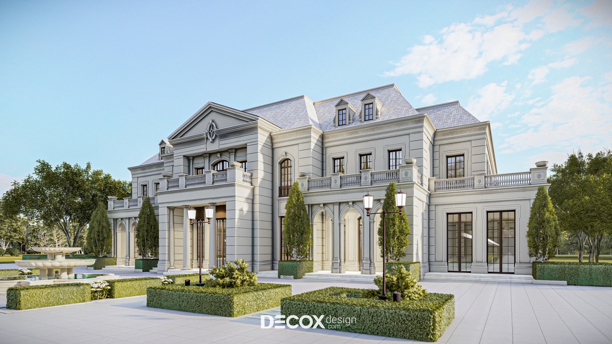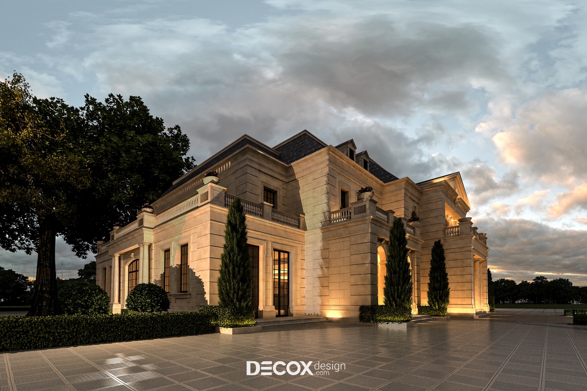 Thiết kế kiến trúc và nội thất khách sạn đều đóng vai trò quan trọng ngang nhau, nếu nội thất phản ánh được sự đầu tư, chất lượng đến từ dịch vụ cùng thái độ chăm sóc khách hàng chuyên nghiệp thì ngoại thất lại là tổng thể đầu tiên lọt vào thị giác của du khách. Thế nên, việc kiến tạo một không gian ngoại thất bắt mắt, thể hiện được phong cách mà khách sạn hướng đến luôn được chủ đầu tư chú trọng. Đến với dự án khách sạn lần này, Decox Design đã chọn lựa thiết kế khách sạn theo lối kiến trúc tân cổ điển nhẹ nhàng, tinh tế nhưng cũng không kém phần hoa lệ, cổ kính. Với hình khối kiến trúc cân đối và hướng đến sự đơn giản, sang trọng chúng tôi đã sử dụng tone màu xám thanh lịch làm gam màu chủ đạo kết hợp cùng những chi tiết trang trí đặc trưng của phong cách này như hoa văn chạm nổi trên những khuôn gạch, cửa dạng hình vòm hay lan can đậm chất tân cổ điển.