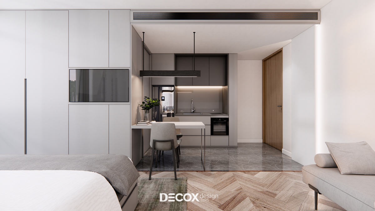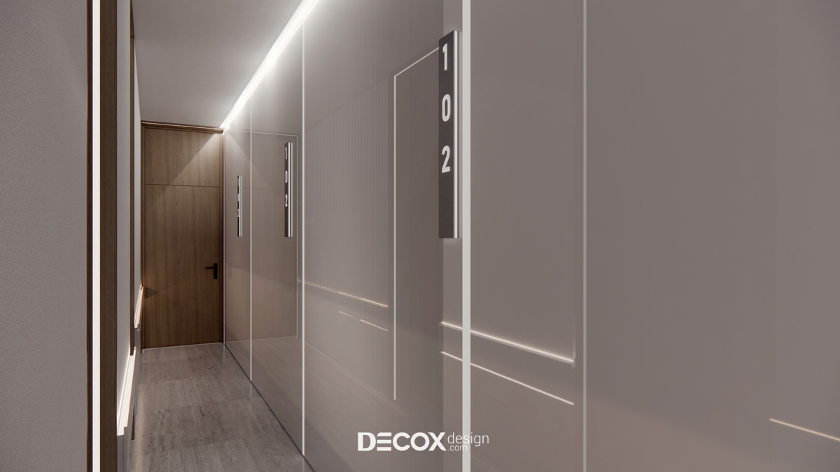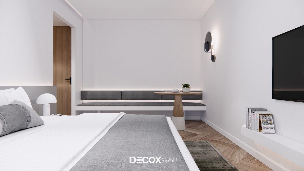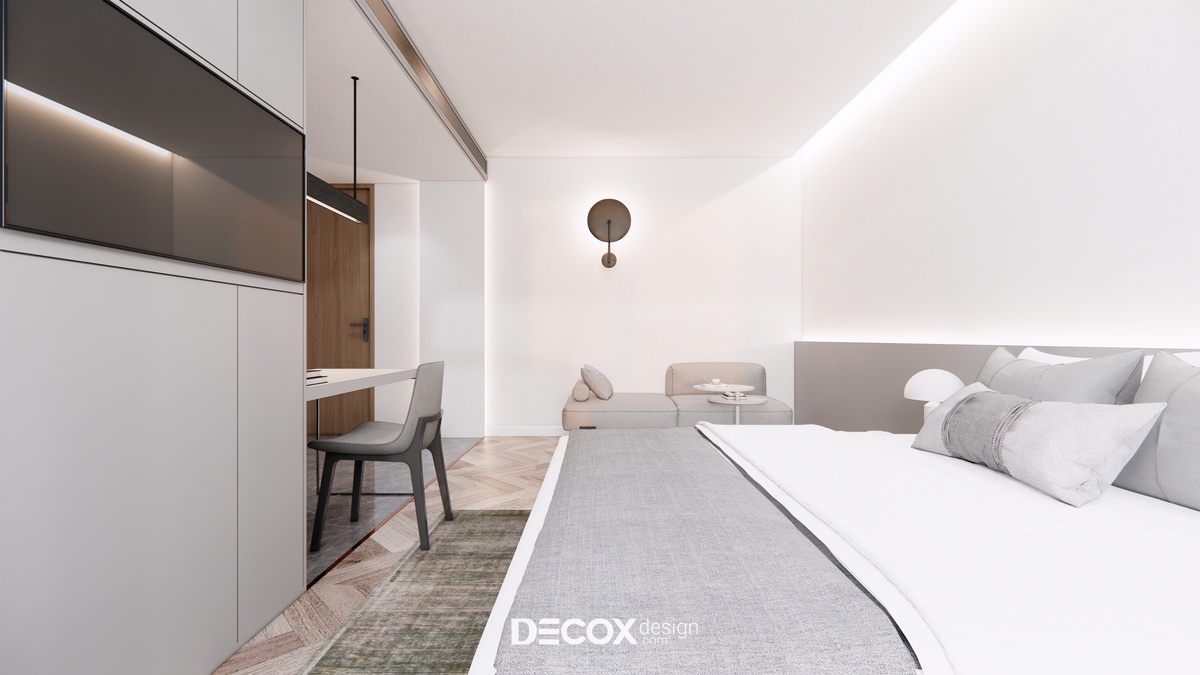 Thiết kế nội thất lấy ý tưởng từ việc tạo dựng khách sạn lưu trú dựa trên mô hình nhà ở service apartment với nhiều loại hình cho khách hàng chọn lựa. Mỗi phòng ngoài khu vực nghỉ ngơi - chức năng chính của khách sạn còn cung cấp thêm những không gian khác như phòng khách, phòng bếp, phòng thay đồ... nhằm mang đến cho quý khách hàng sự tiện lợi, thoải mái như đang ở trong chính căn nhà của mình.